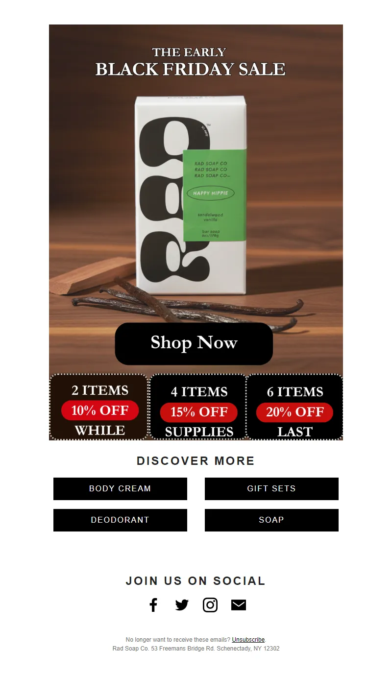 Seasonal campaigns align messaging with holidays, weather changes, and shopping seasons. These emails keep communication timely and relevant while reflecting current trends and customer needs.