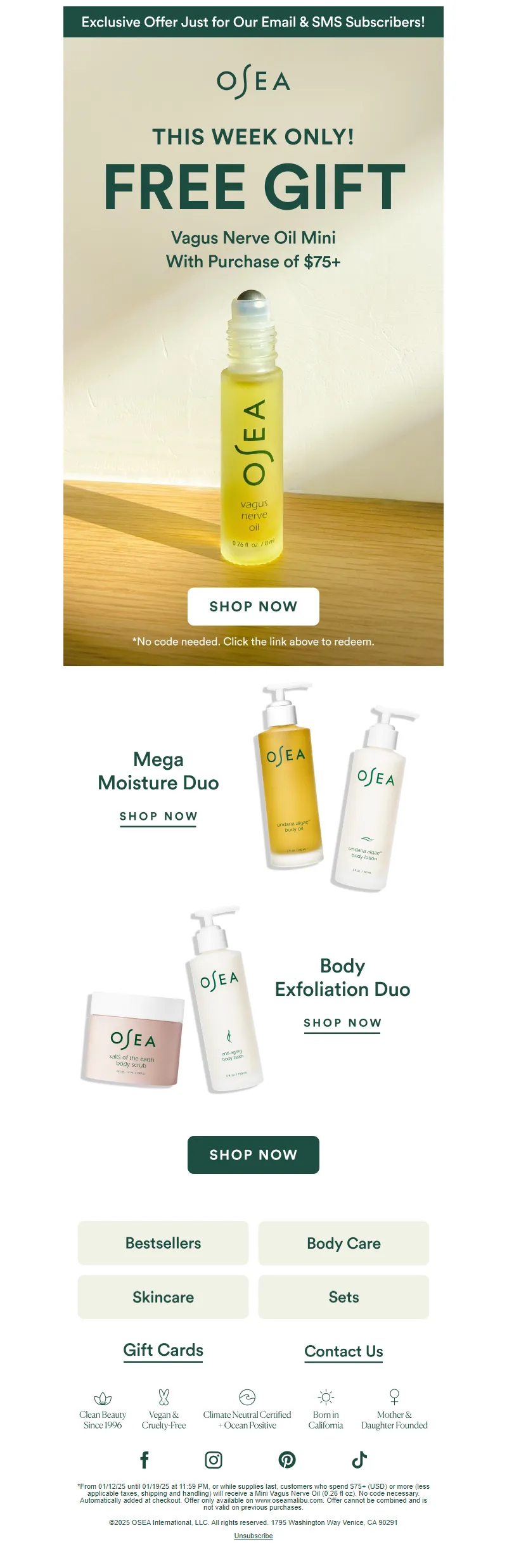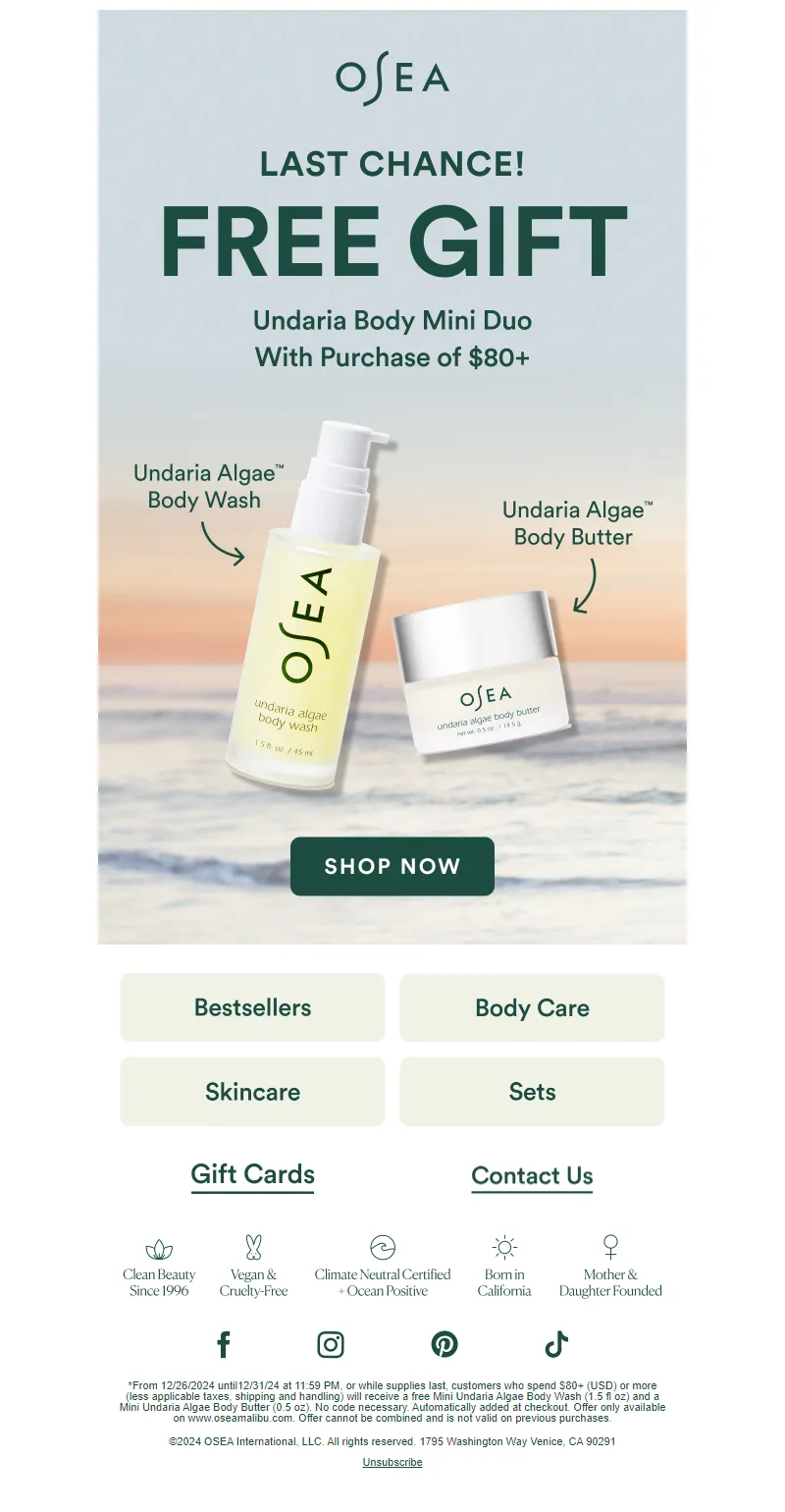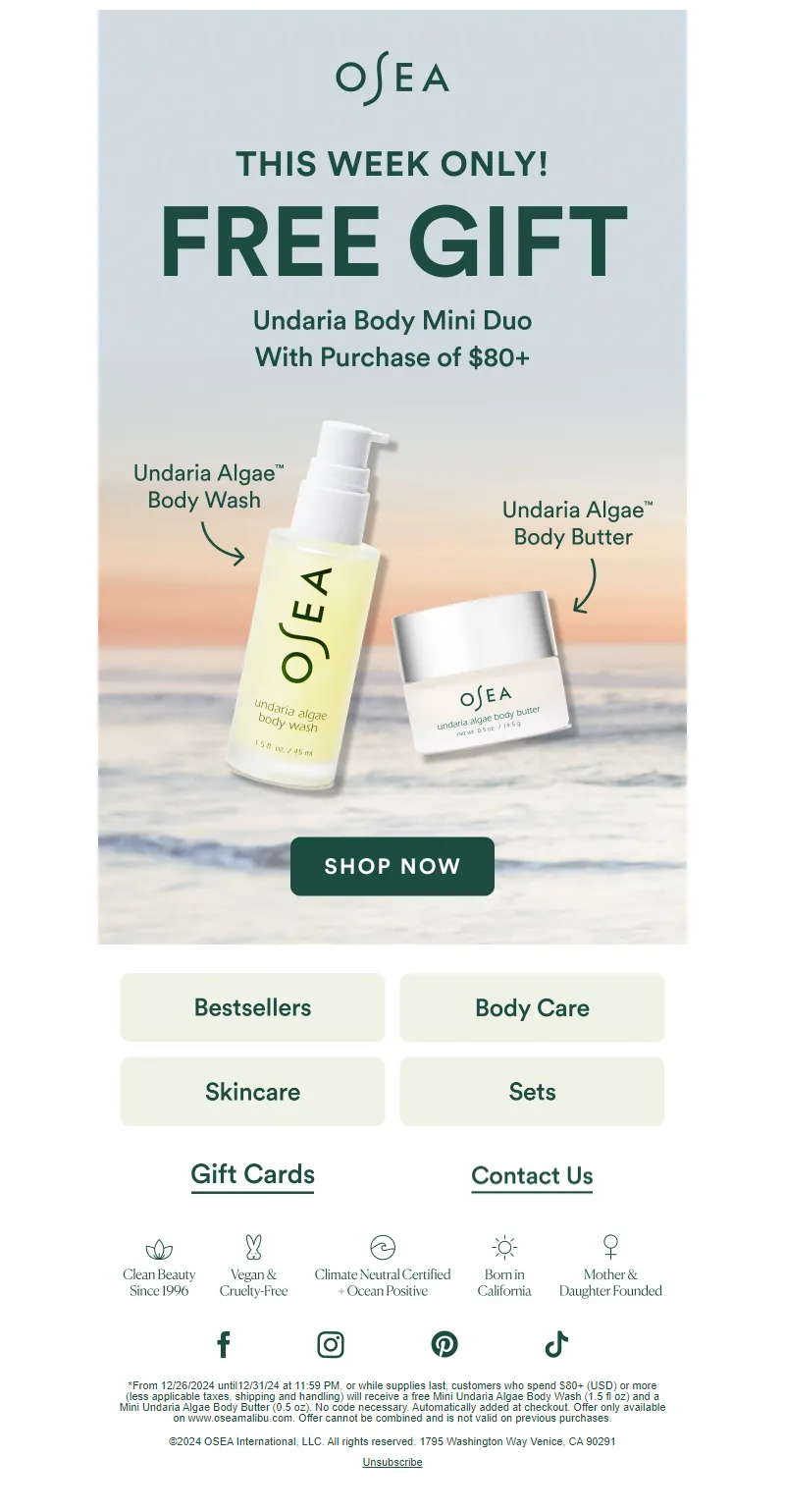 Explore campaign email examples from OSEA Malibu, including promotions, newsletters, and product announcements. Built as a reference library for studying real ecommerce email execution.
