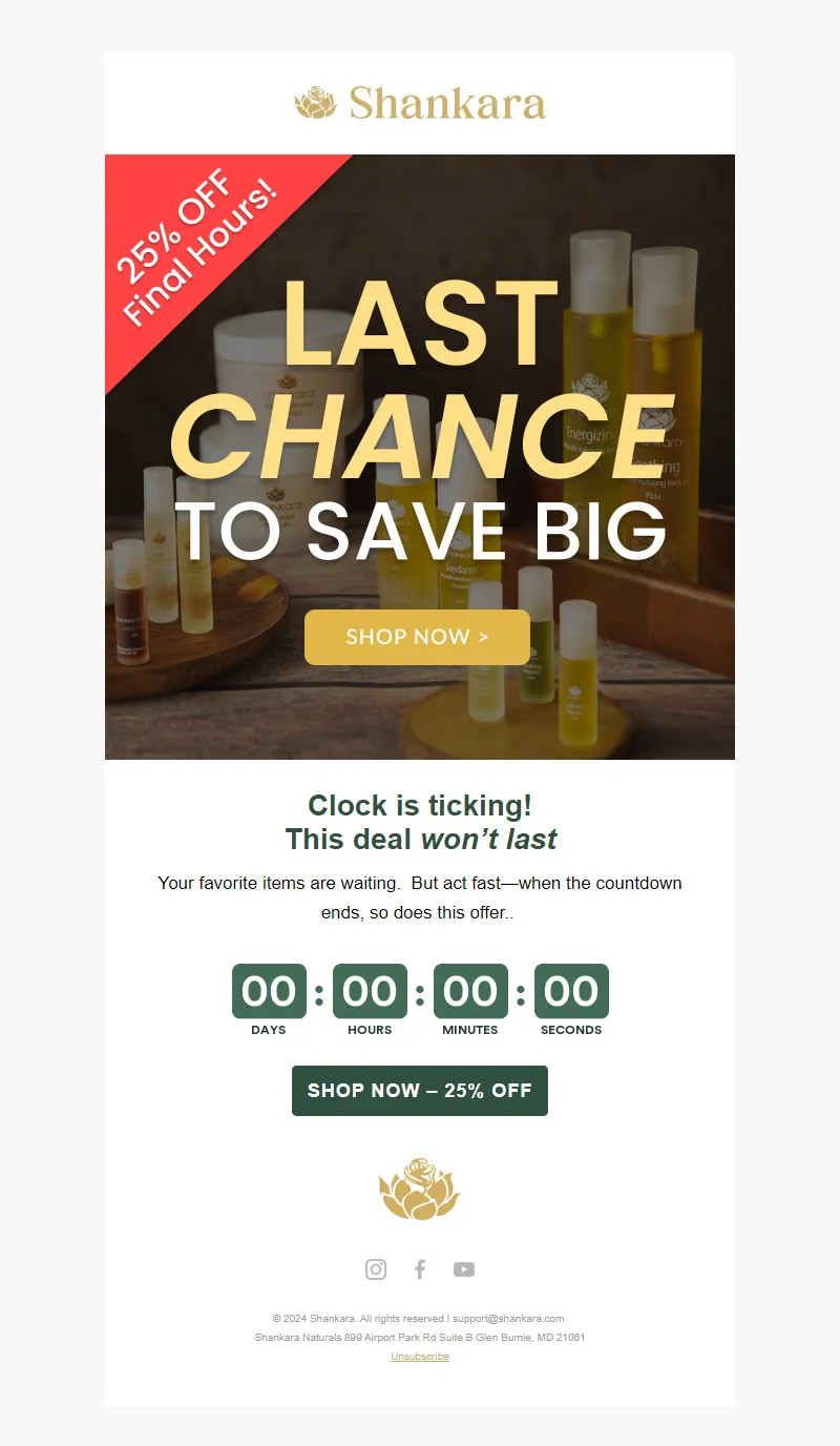 Explore campaign email examples from Shankara Inc., including promotions, newsletters, and product announcements. Built as a reference library for studying real ecommerce email execution.