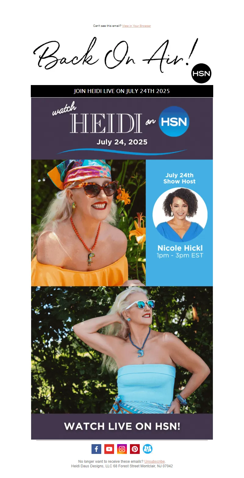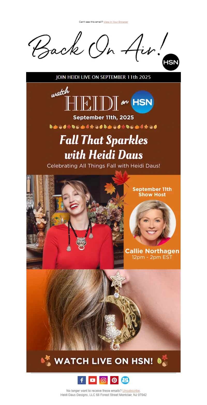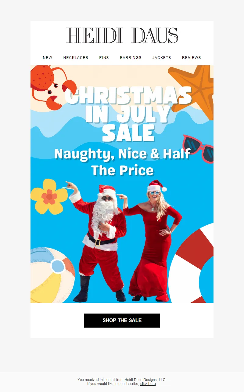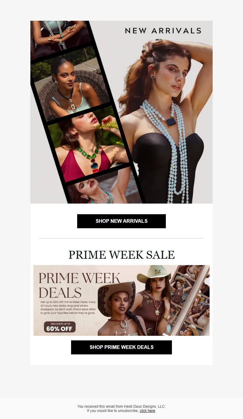 Explore campaign email examples from Heidi Daus, including promotions, newsletters, and product announcements. Built as a reference library for studying real ecommerce email execution.