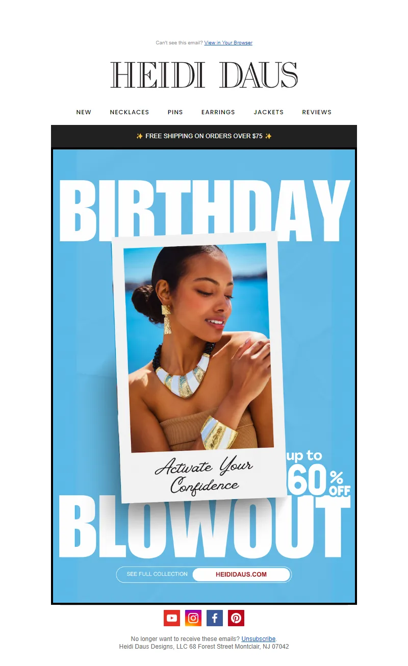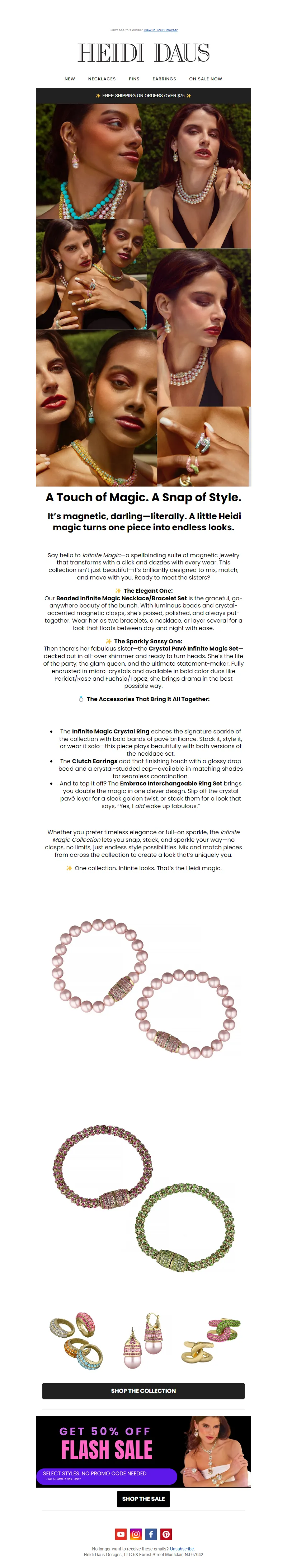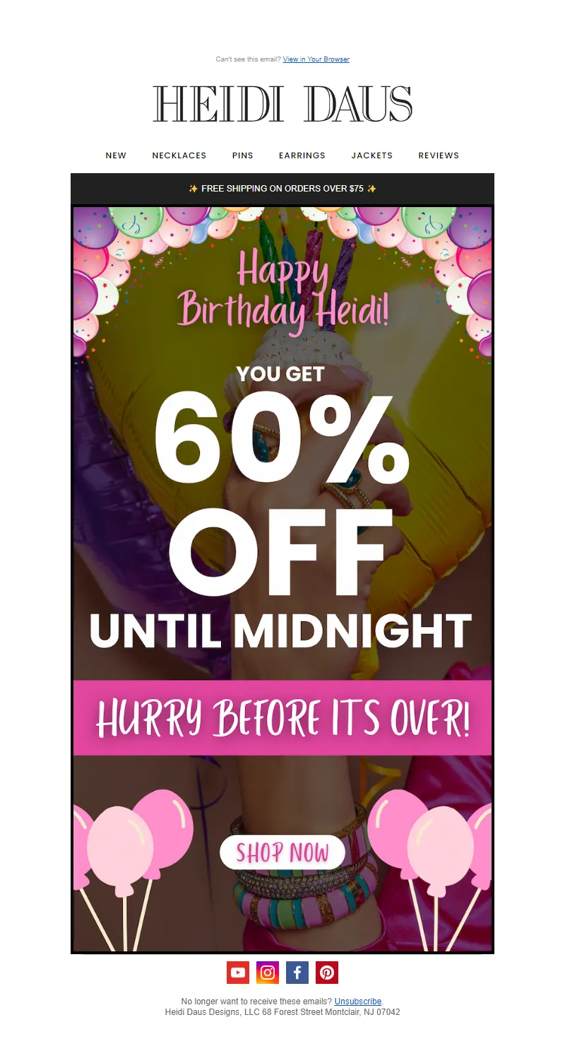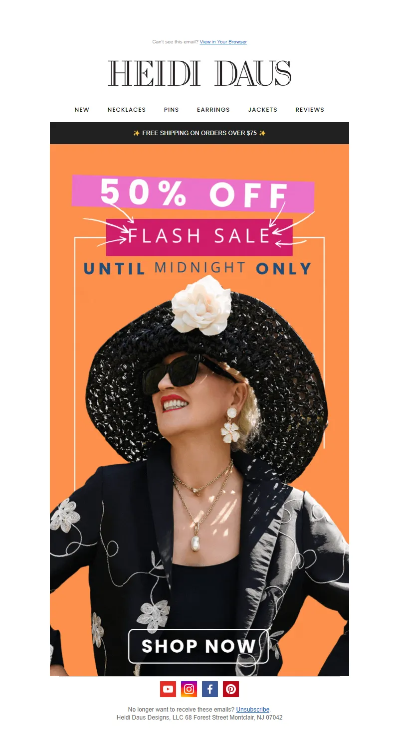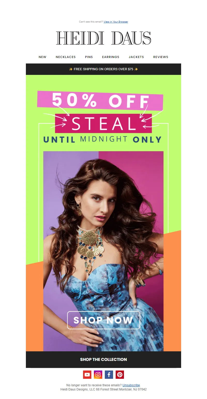 Explore campaign email examples from Heidi Daus, including promotions, newsletters, and product announcements. Built as a reference library for studying real ecommerce email execution.