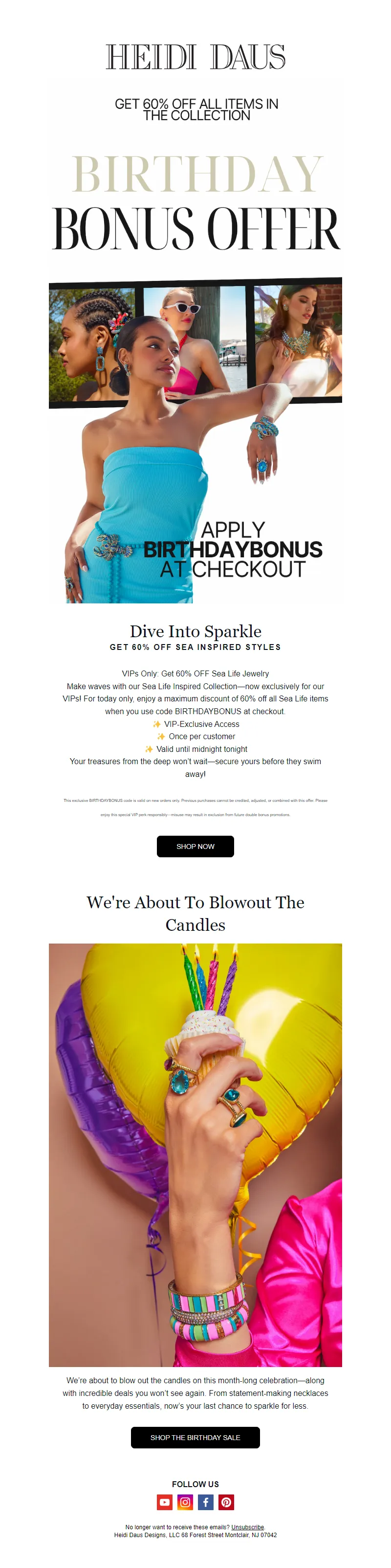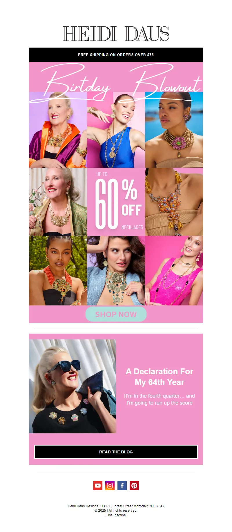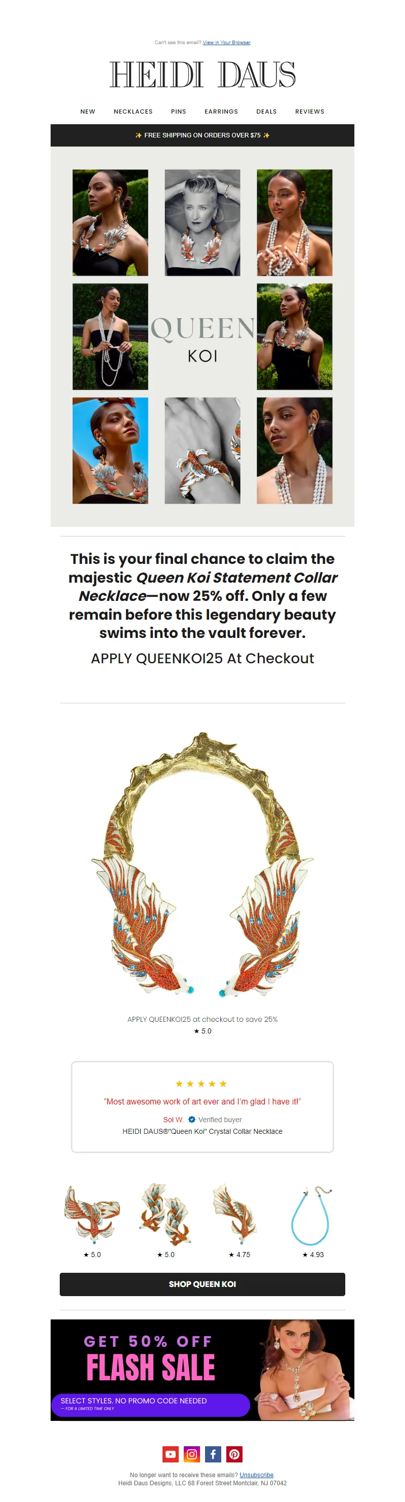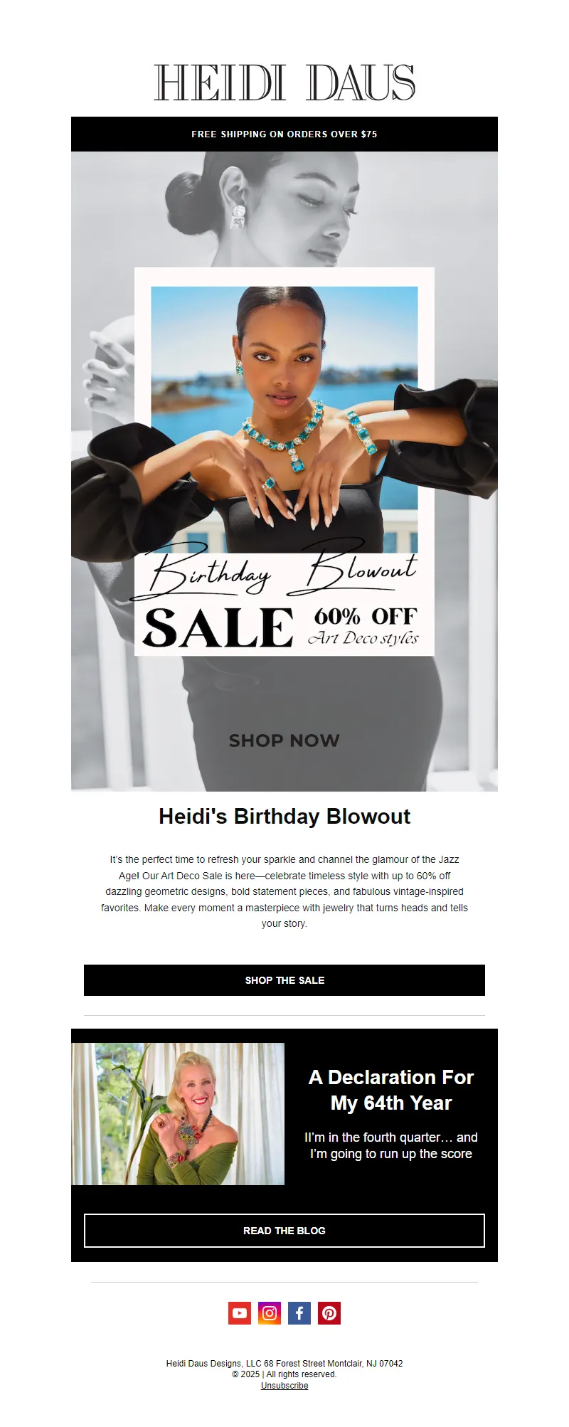 Explore campaign email examples from Heidi Daus, including promotions, newsletters, and product announcements. Built as a reference library for studying real ecommerce email execution.