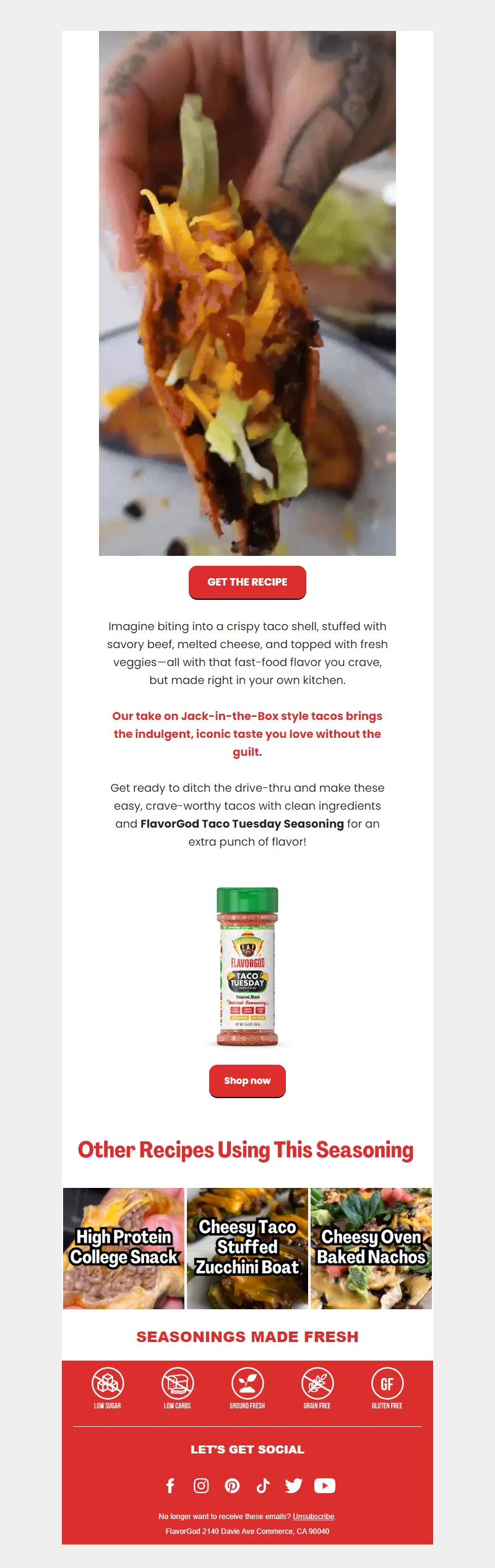 Explore campaign email examples from FlavorGod, including promotions, newsletters, and product announcements. Built as a reference library for studying real ecommerce email execution.