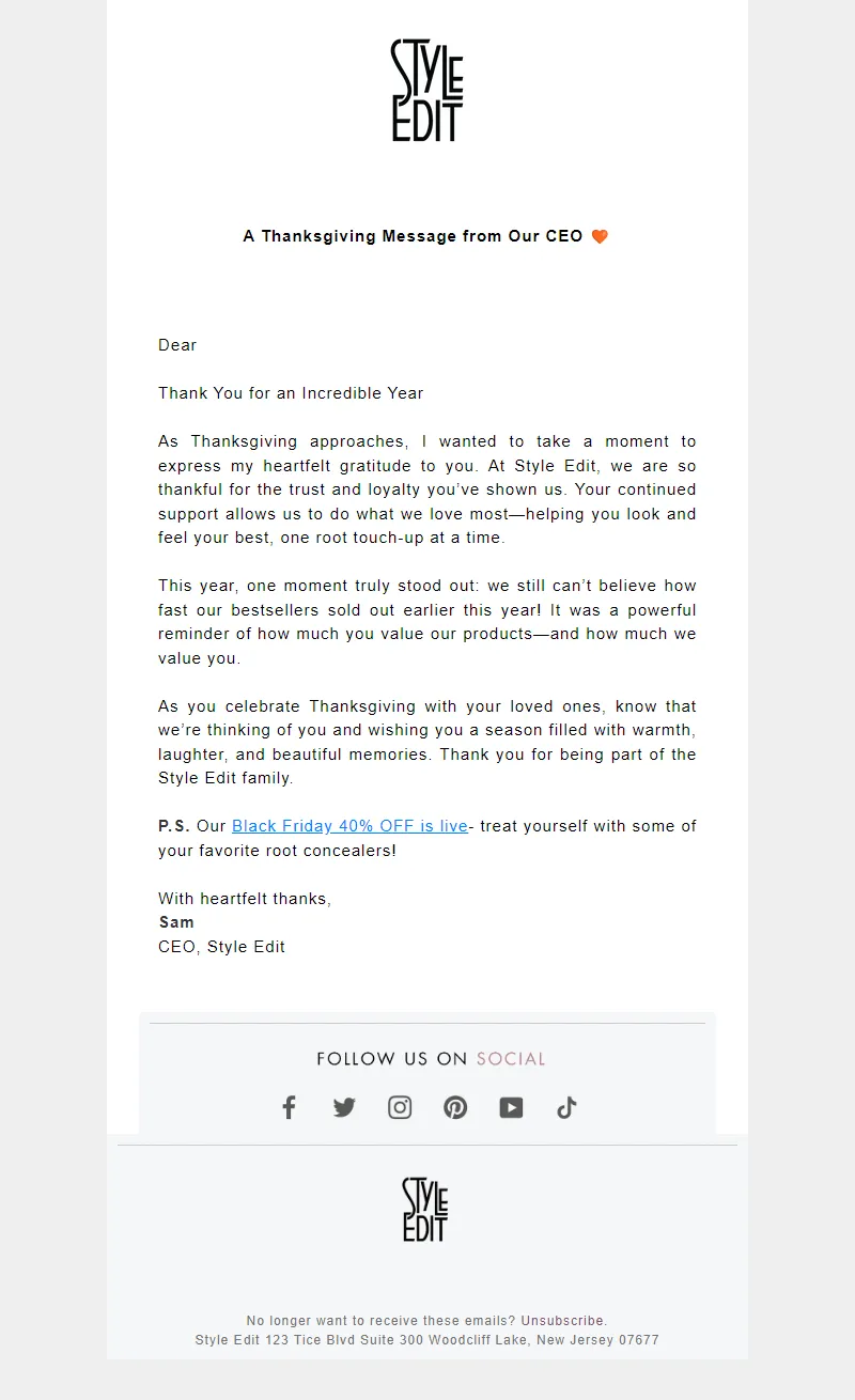 Explore campaign email examples from Style Edit, including promotions, newsletters, and product announcements. Built as a reference library for studying real ecommerce email execution.