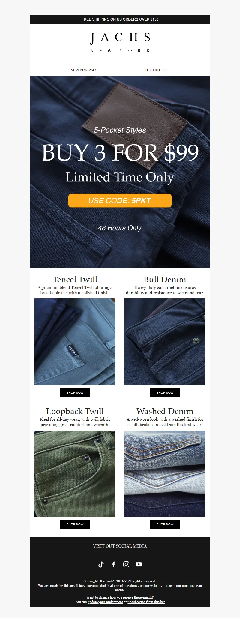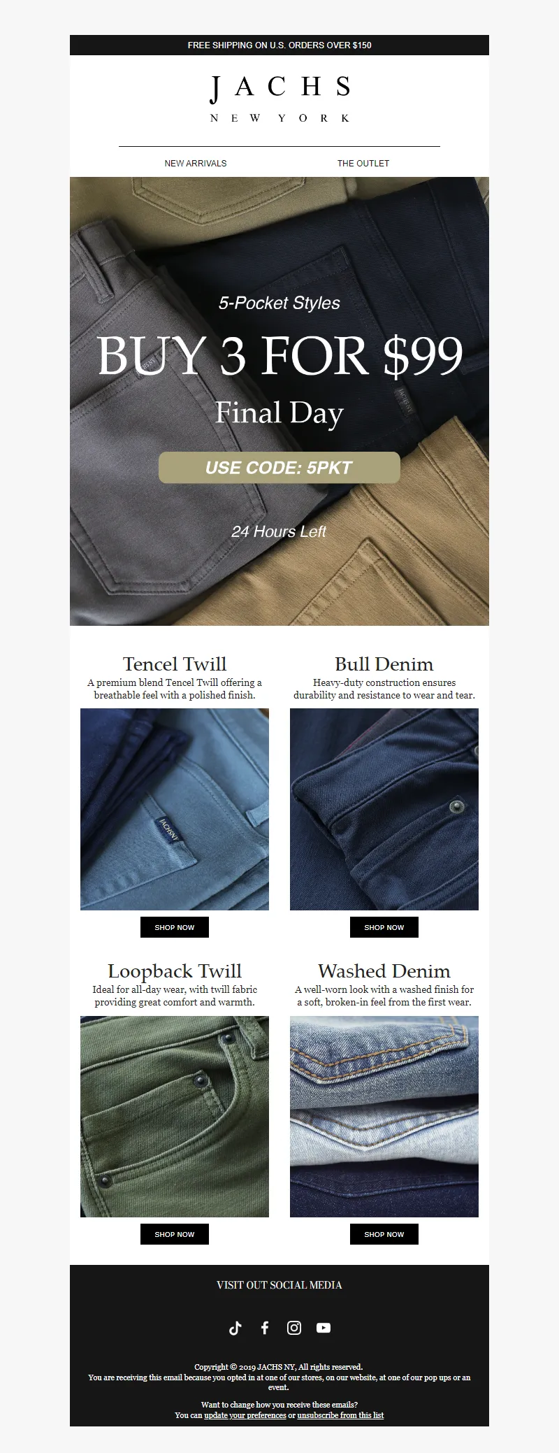 Explore campaign email examples from JACHS, including promotions, newsletters, and product announcements. Built as a reference library for studying real ecommerce email execution.