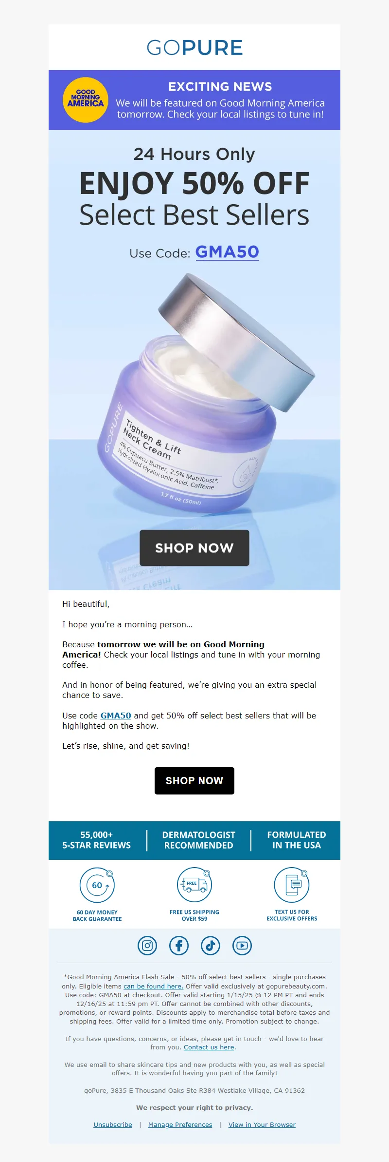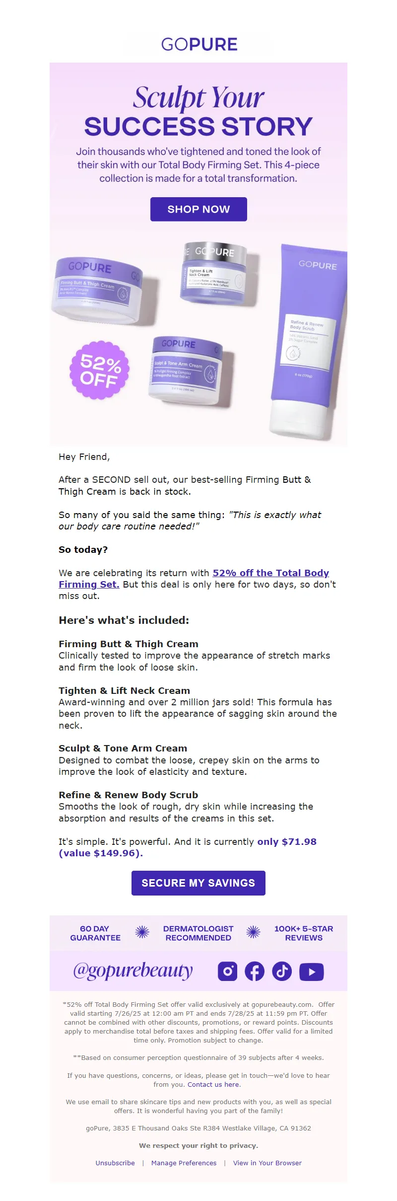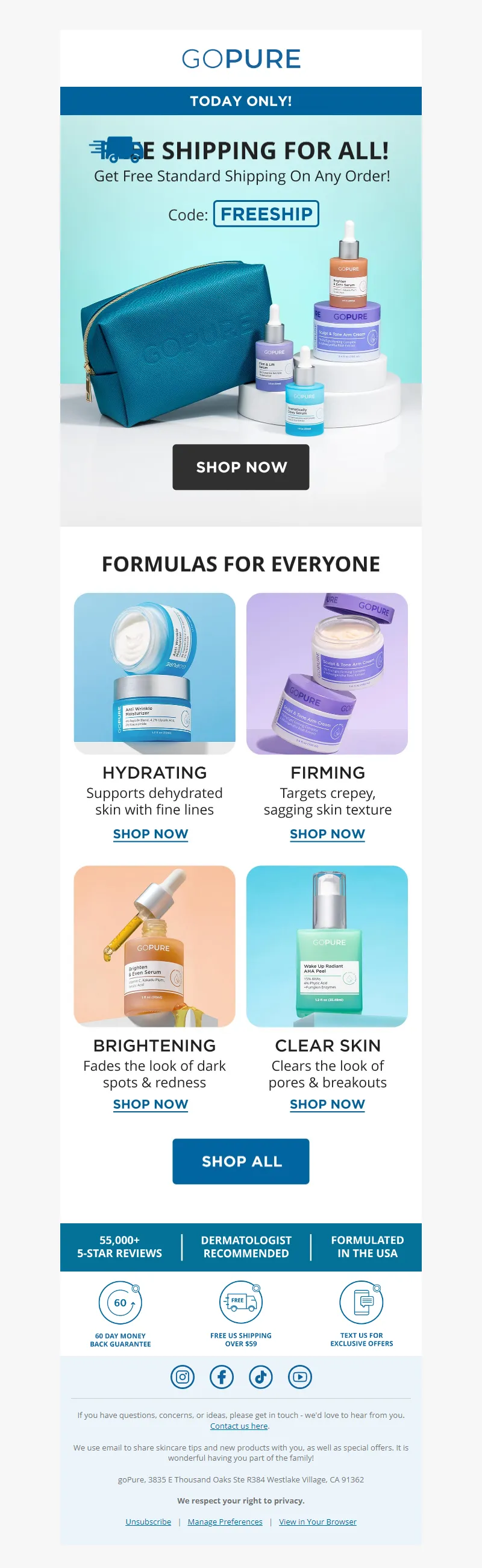 Explore campaign email examples from goPure, including promotions, newsletters, and product announcements. Built as a reference library for studying real ecommerce email execution.