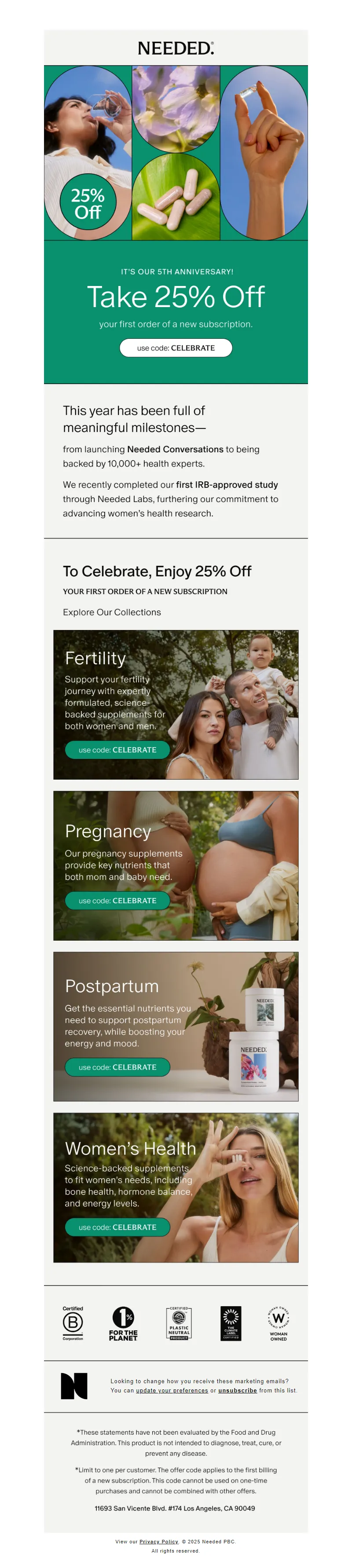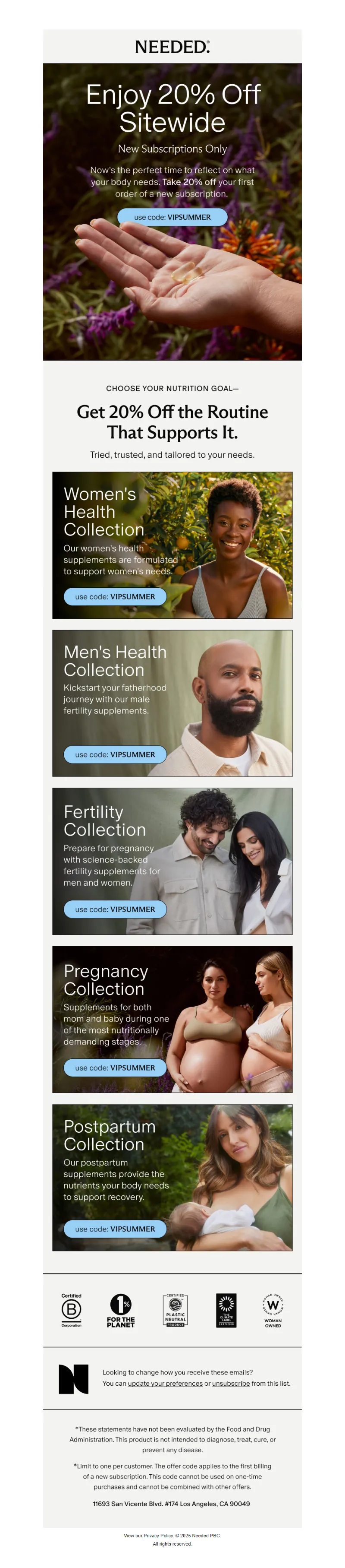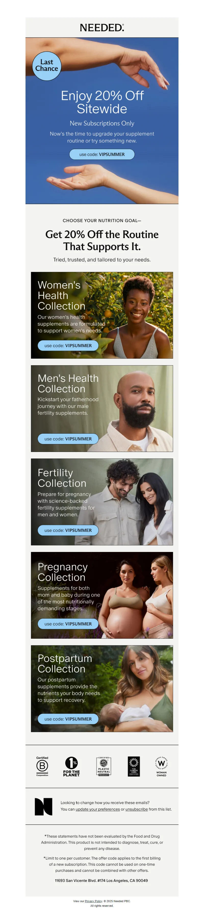 Explore campaign email examples from Needed, including promotions, newsletters, and product announcements. Built as a reference library for studying real ecommerce email execution.
