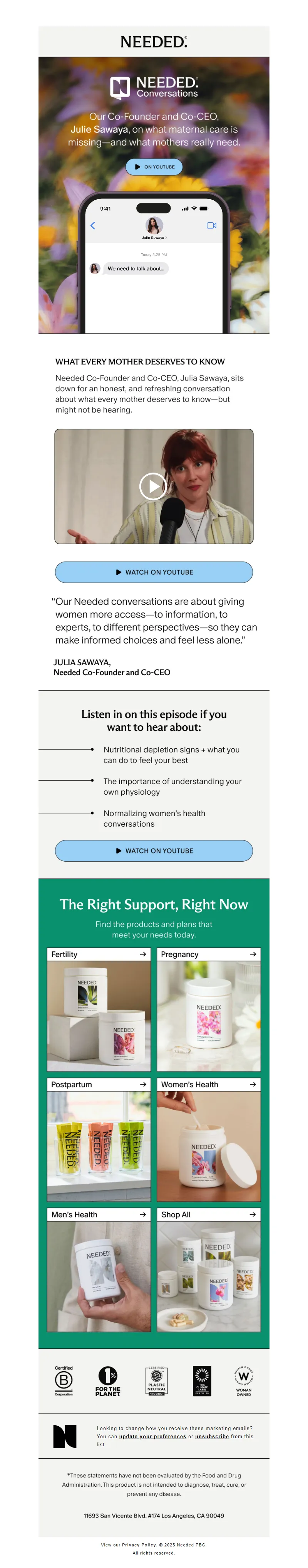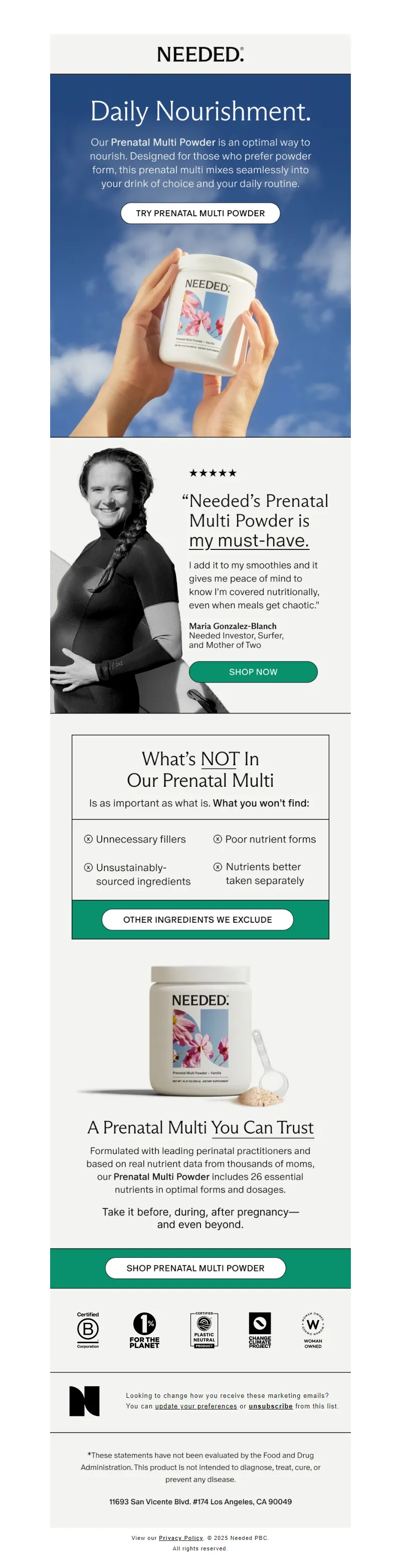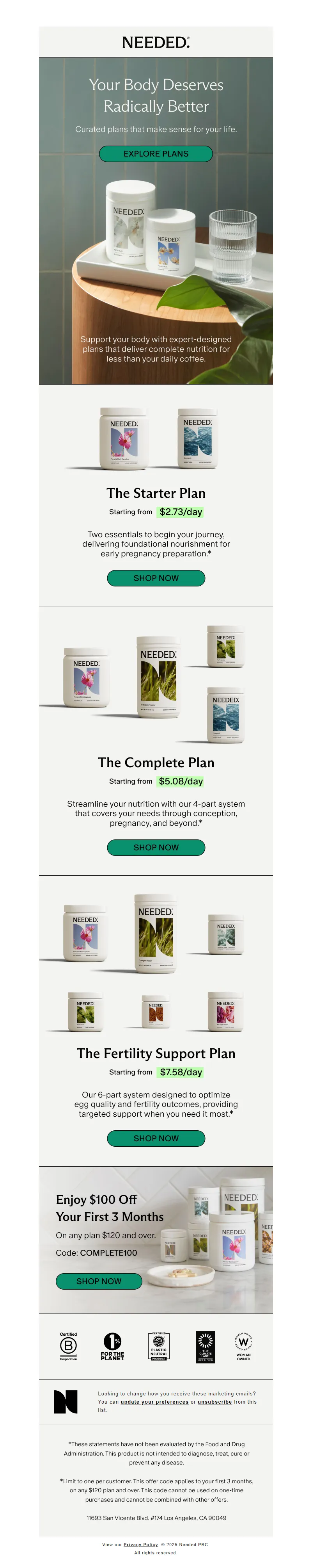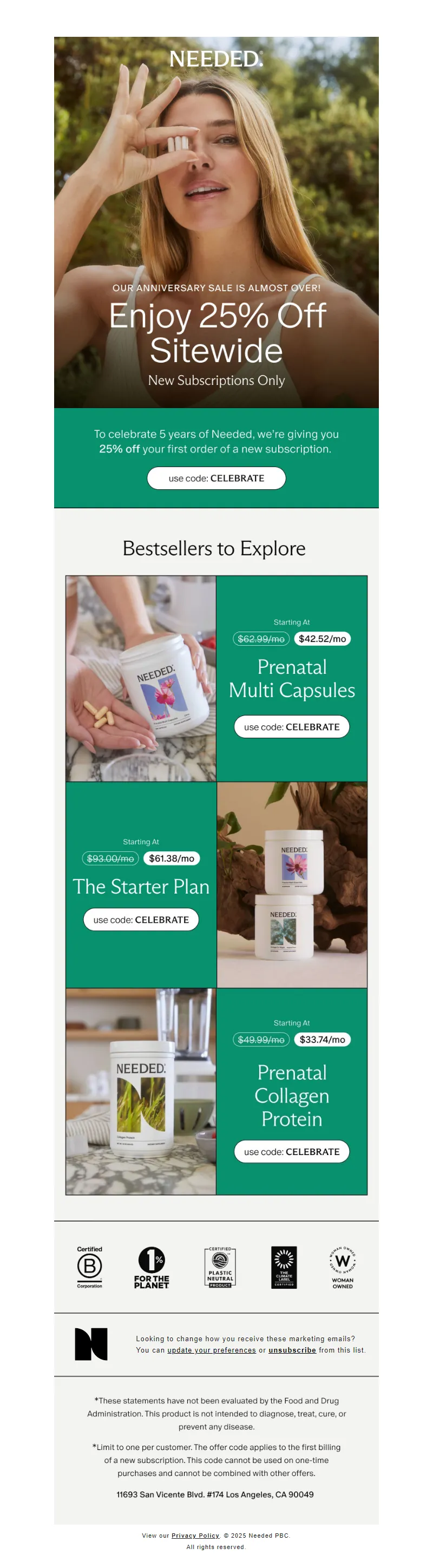 Explore campaign email examples from Needed, including promotions, newsletters, and product announcements. Built as a reference library for studying real ecommerce email execution.