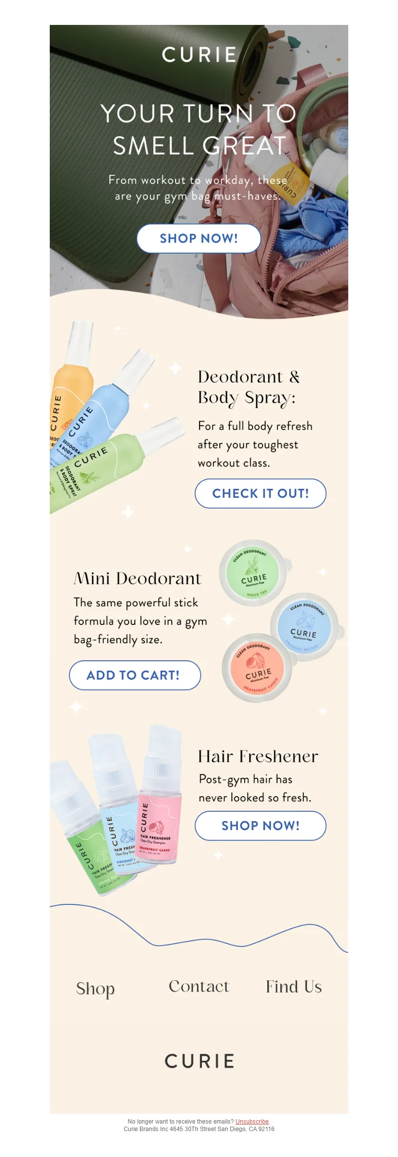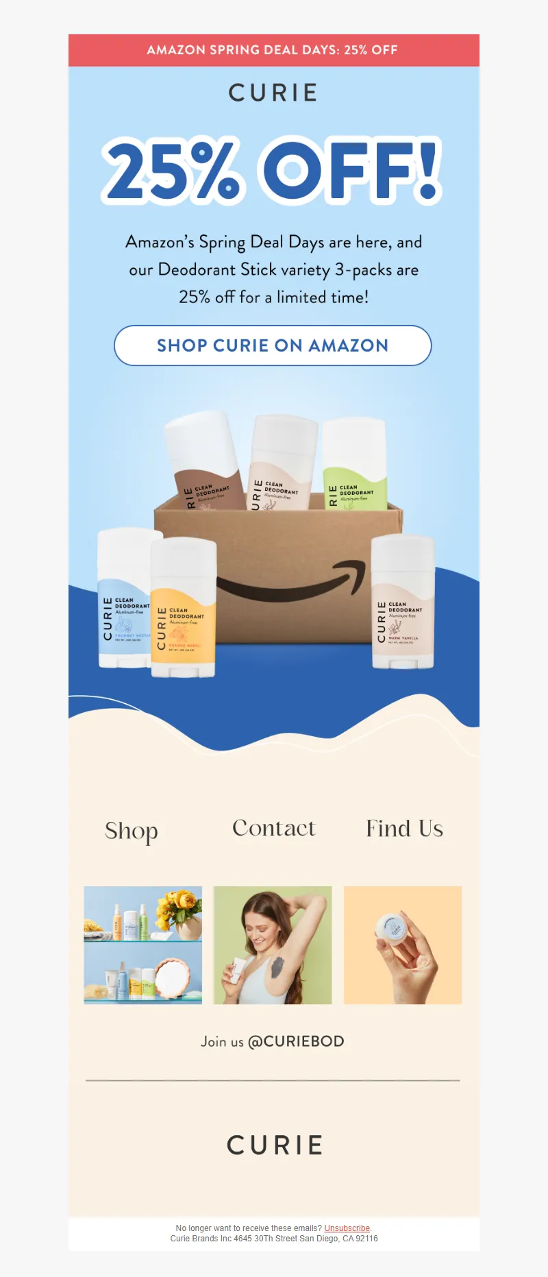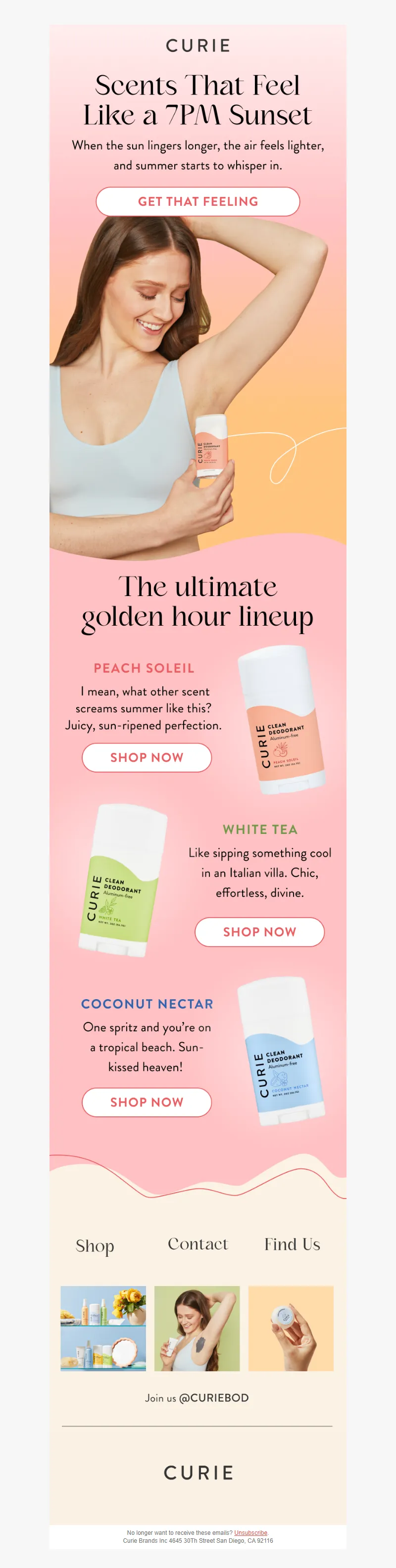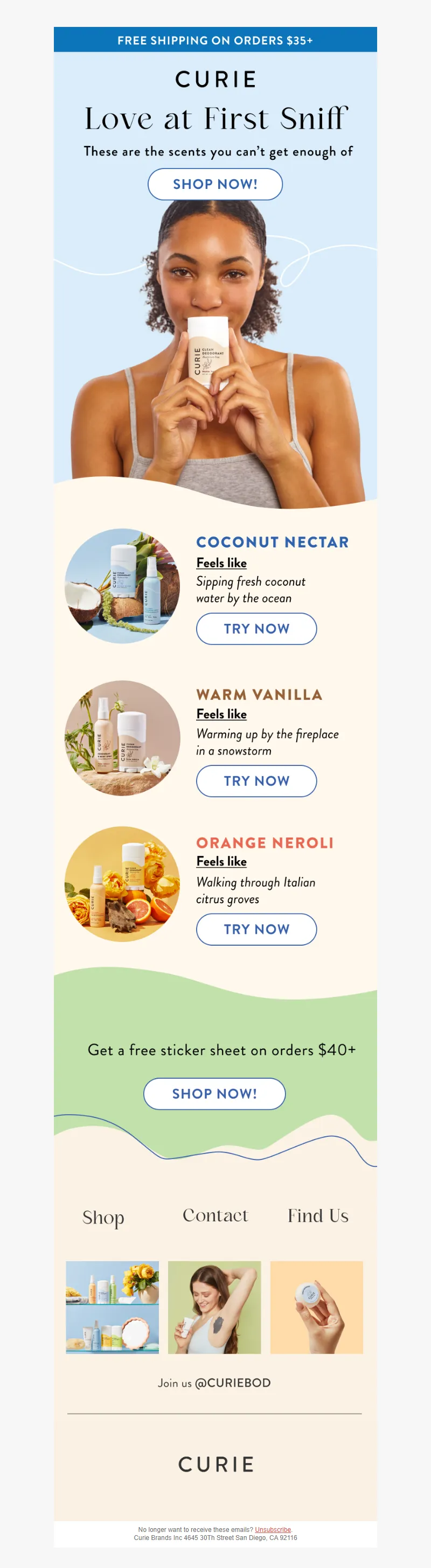 Explore campaign email examples from Curie, including promotions, newsletters, and product announcements. Built as a reference library for studying real ecommerce email execution.