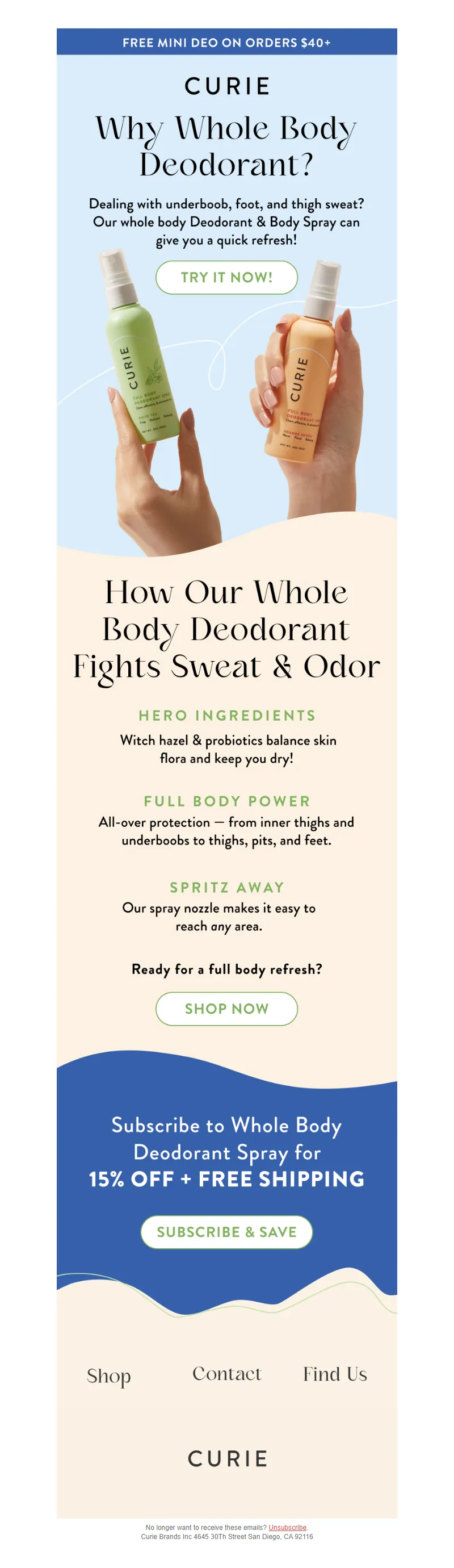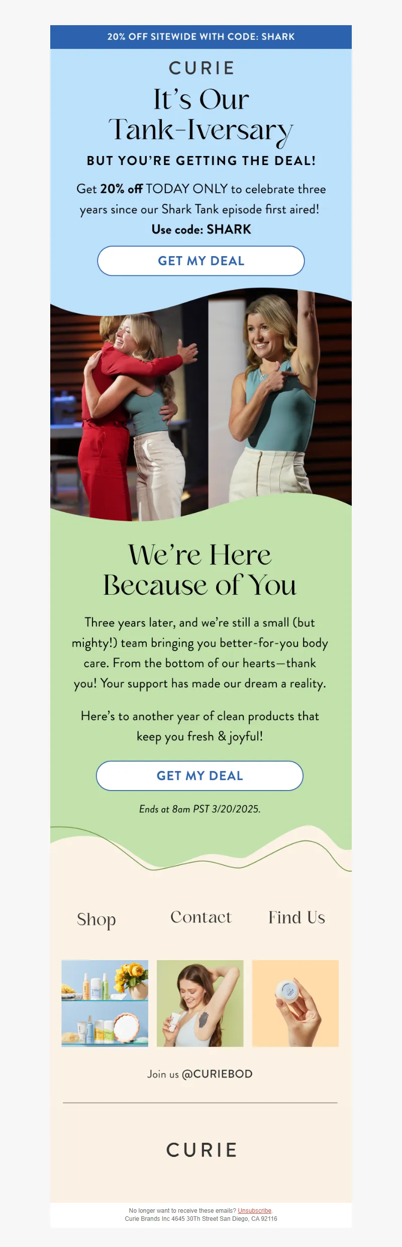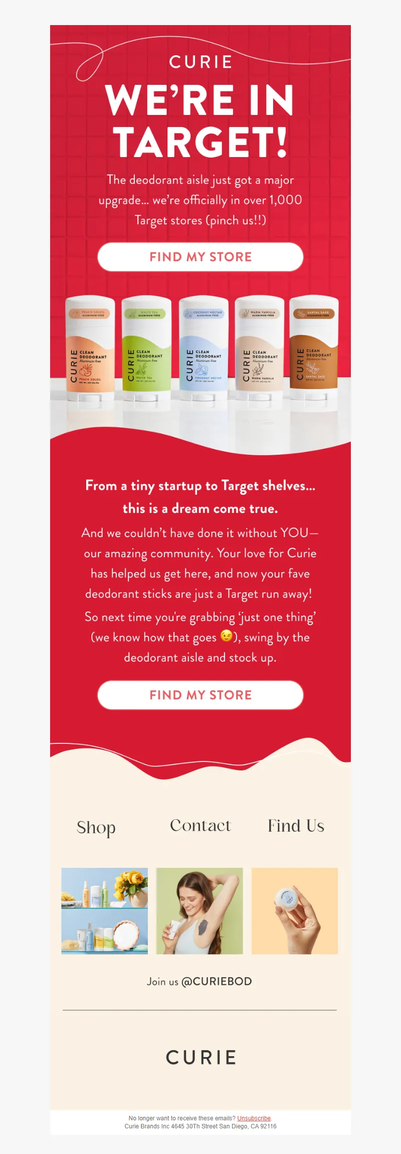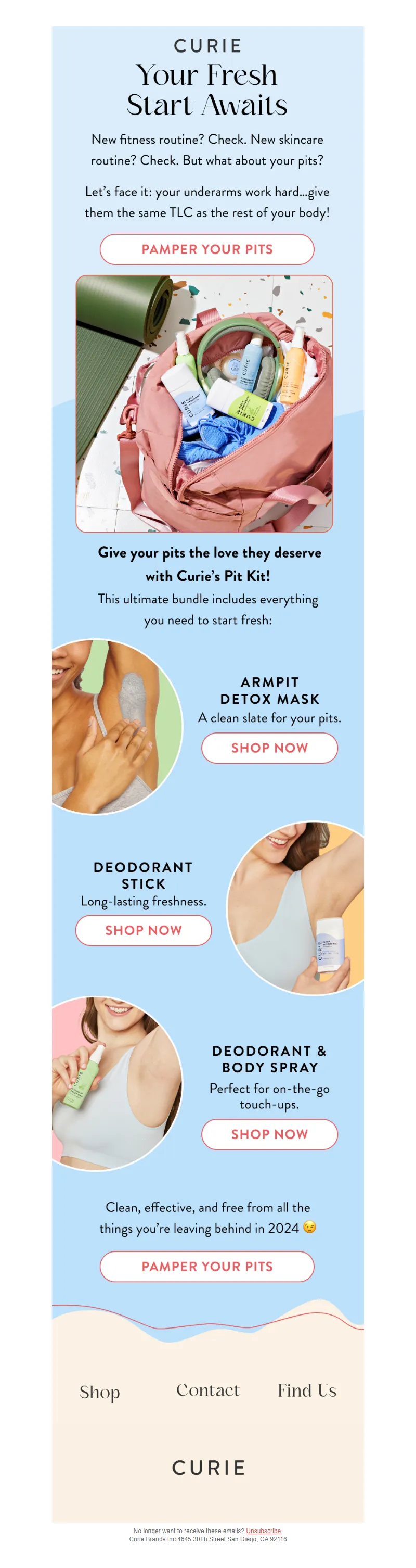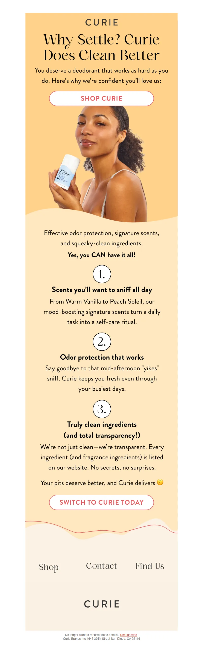 Explore campaign email examples from Curie, including promotions, newsletters, and product announcements. Built as a reference library for studying real ecommerce email execution.