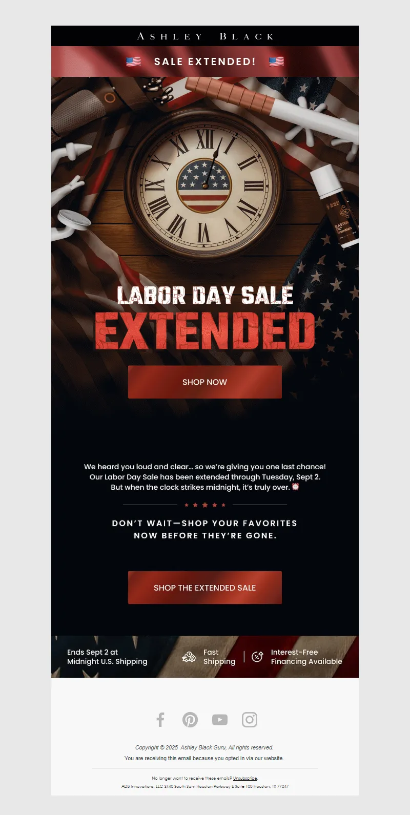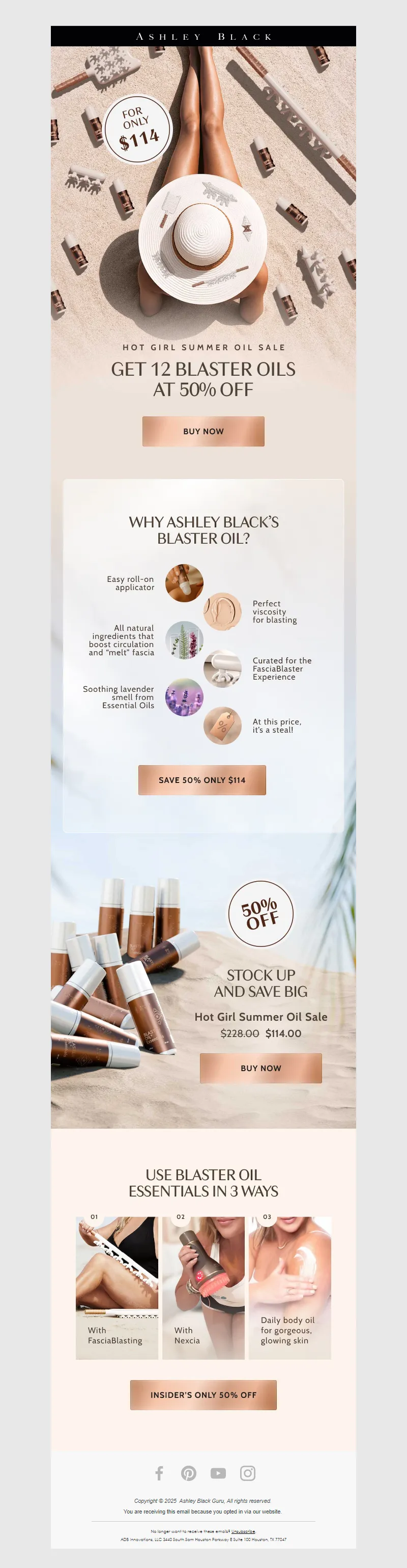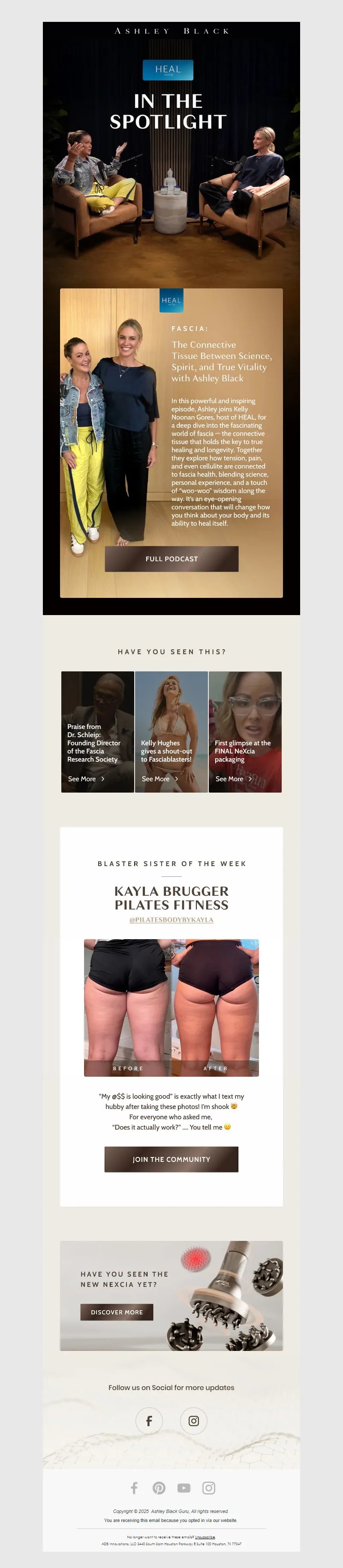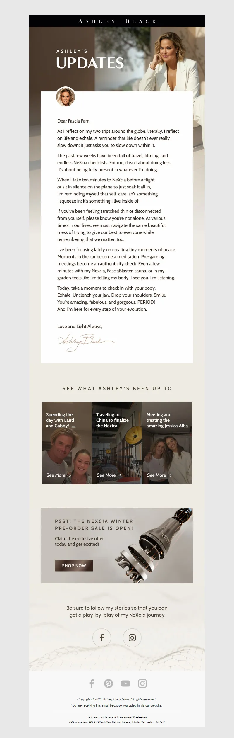 Explore campaign email examples from The Real Ashley Black, including promotions, newsletters, and product announcements. Built as a reference library for studying real ecommerce email execution.