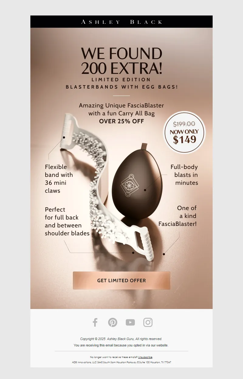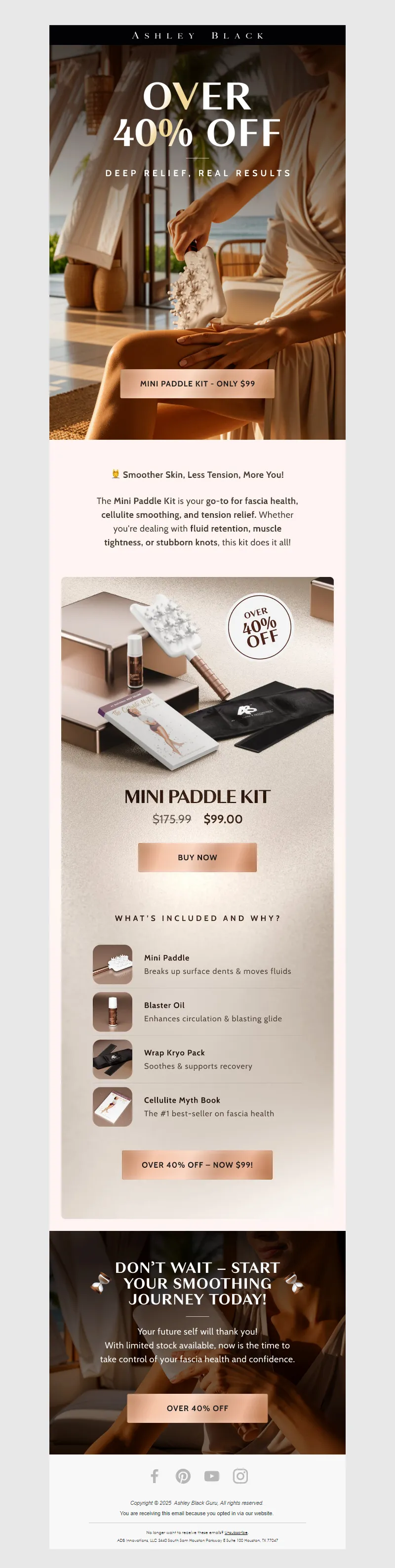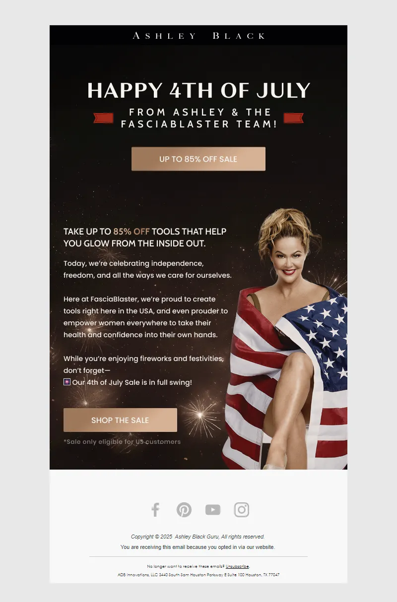 Explore campaign email examples from The Real Ashley Black, including promotions, newsletters, and product announcements. Built as a reference library for studying real ecommerce email execution.