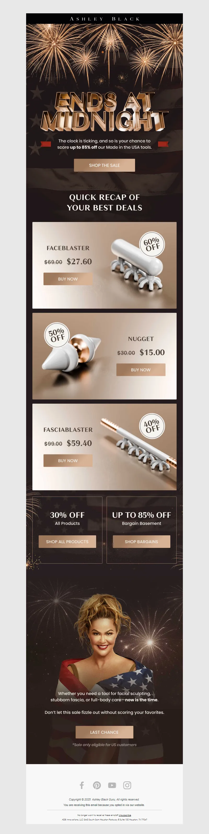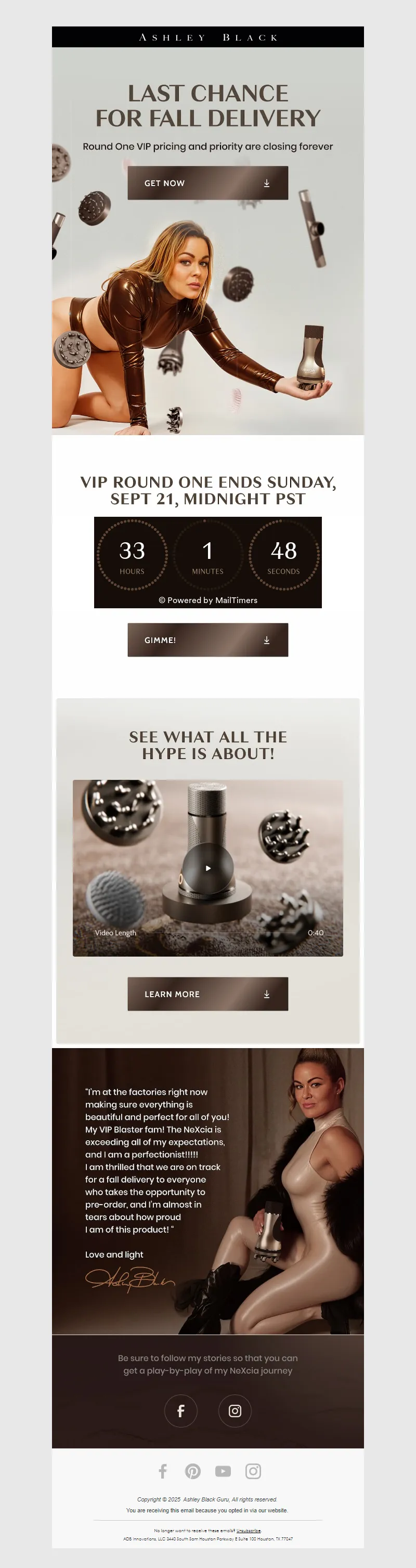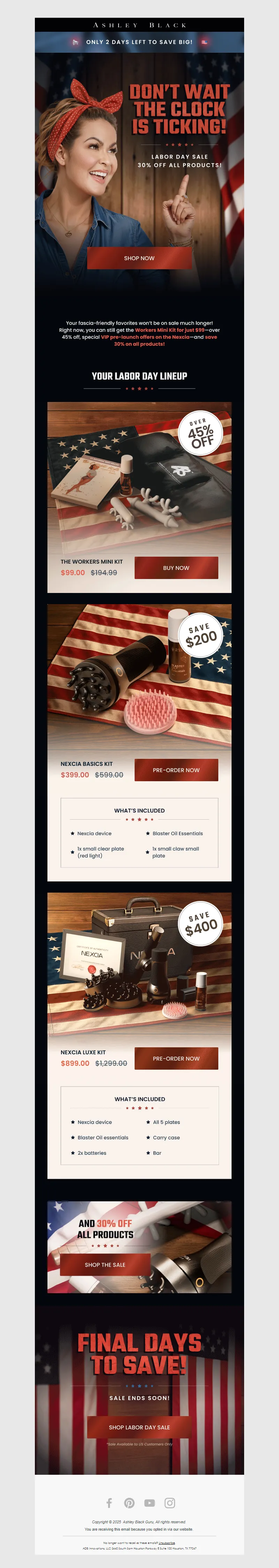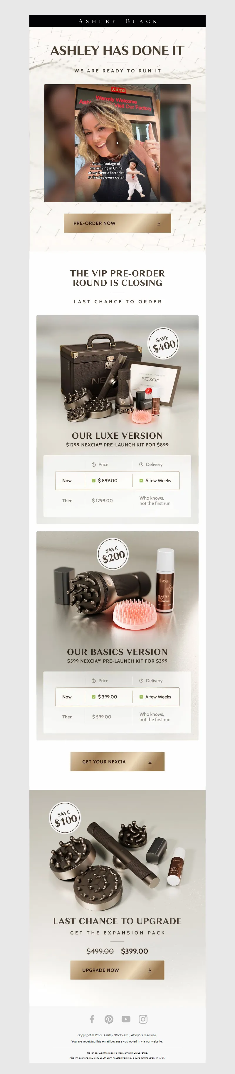 Explore campaign email examples from The Real Ashley Black, including promotions, newsletters, and product announcements. Built as a reference library for studying real ecommerce email execution.