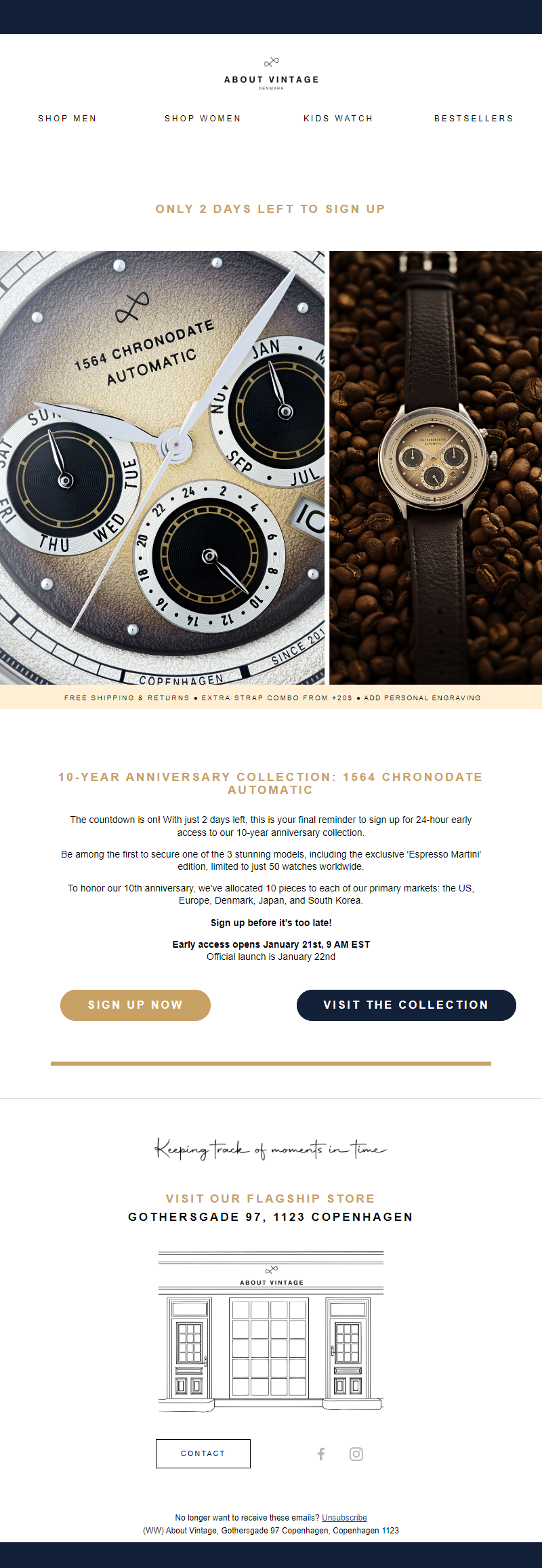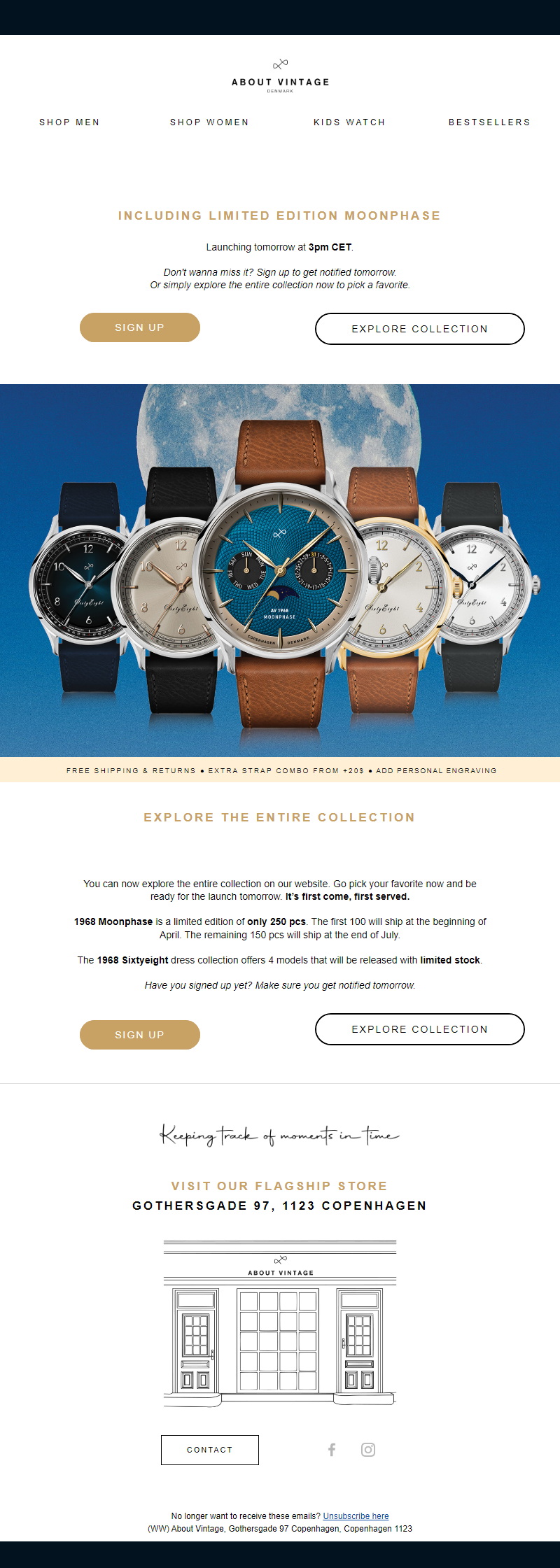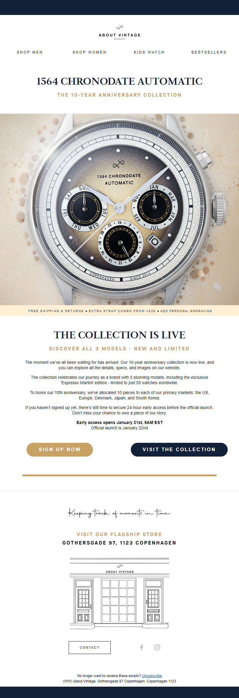 Explore campaign email examples from About Vintage, including promotions, newsletters, and product announcements. Built as a reference library for studying real ecommerce email execution.