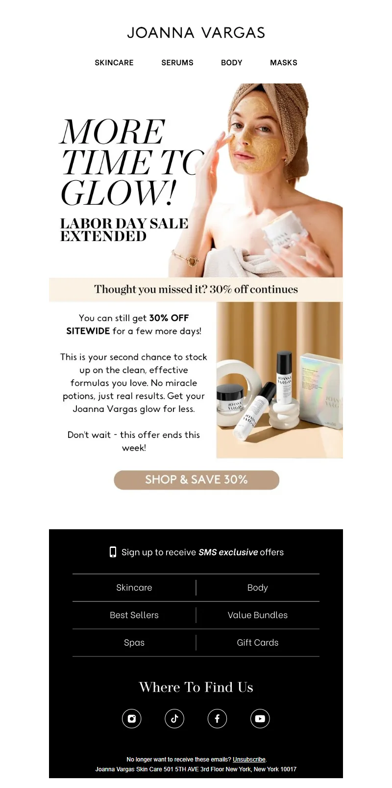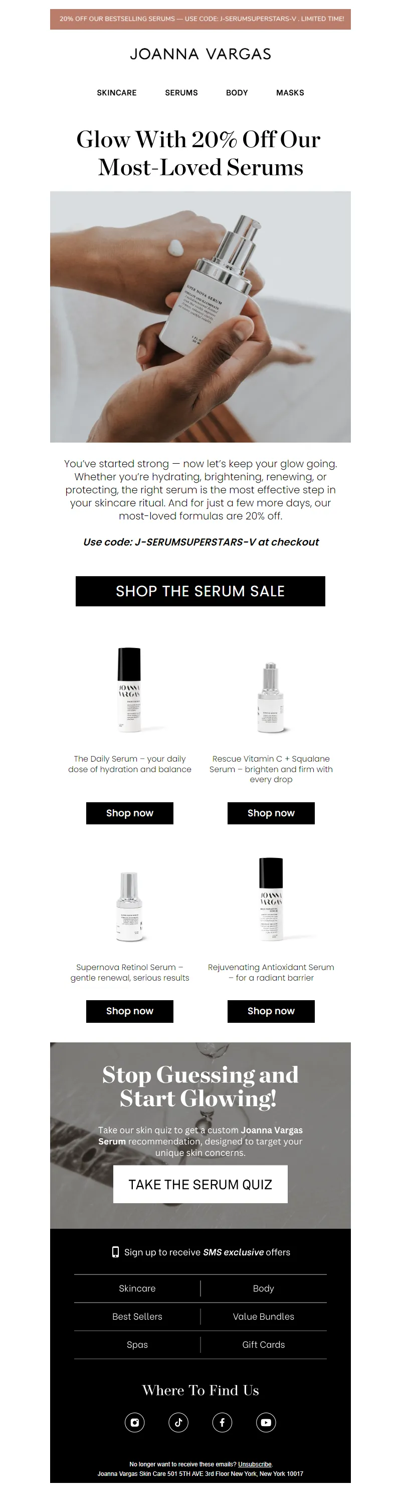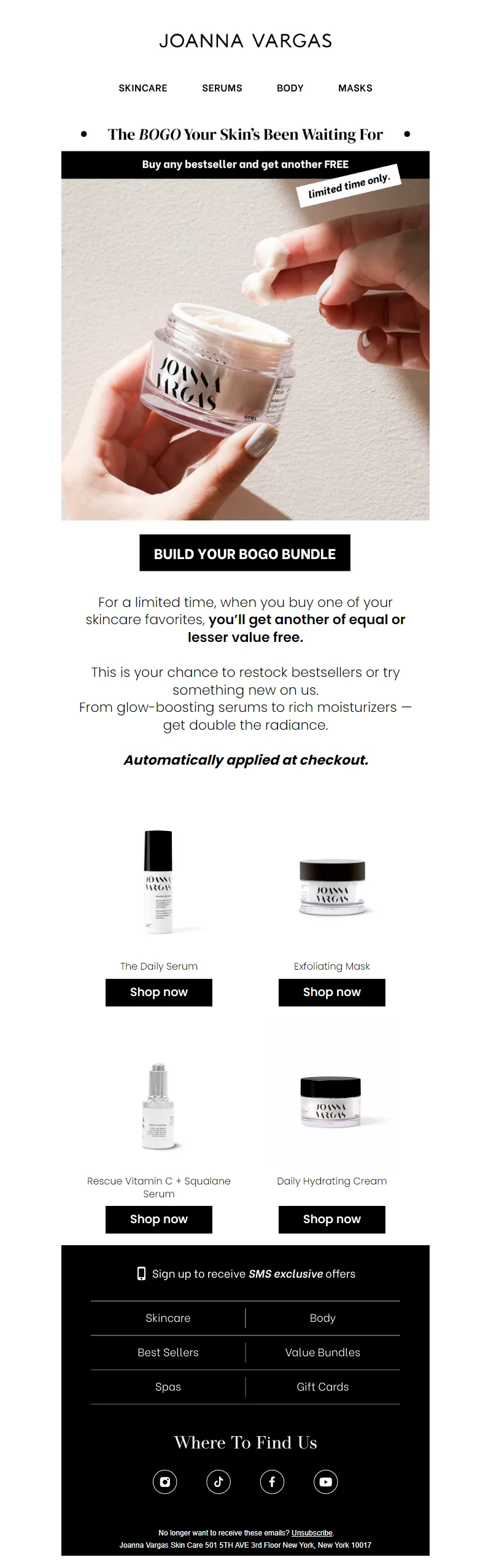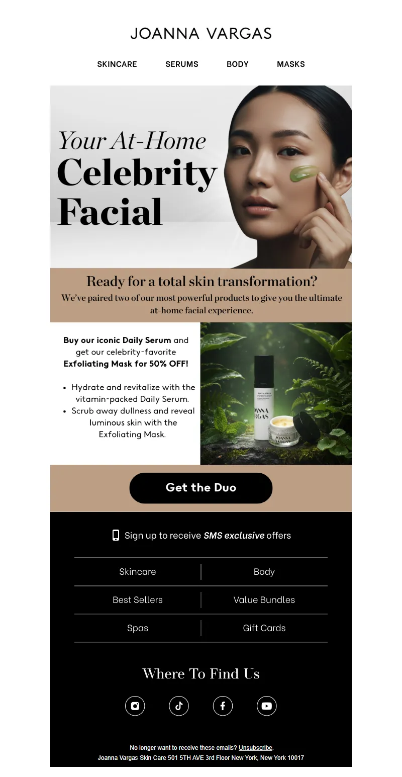 Explore campaign email examples from Joanna Vargas, including promotions, newsletters, and product announcements. Built as a reference library for studying real ecommerce email execution.