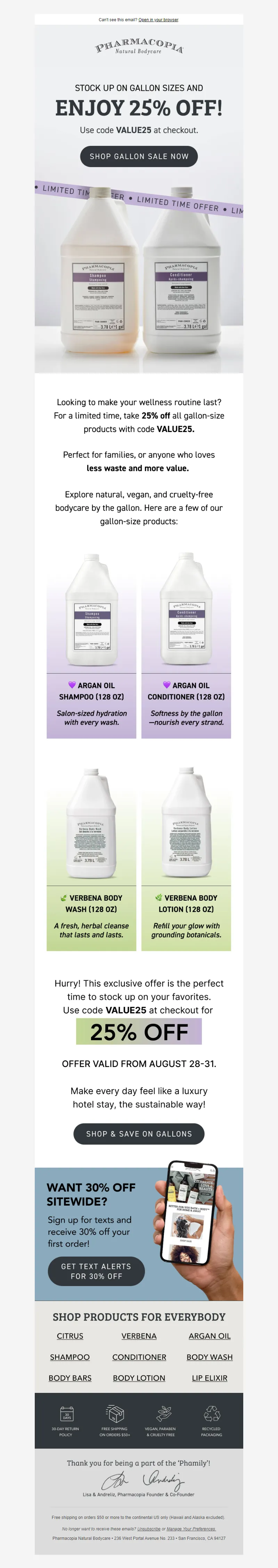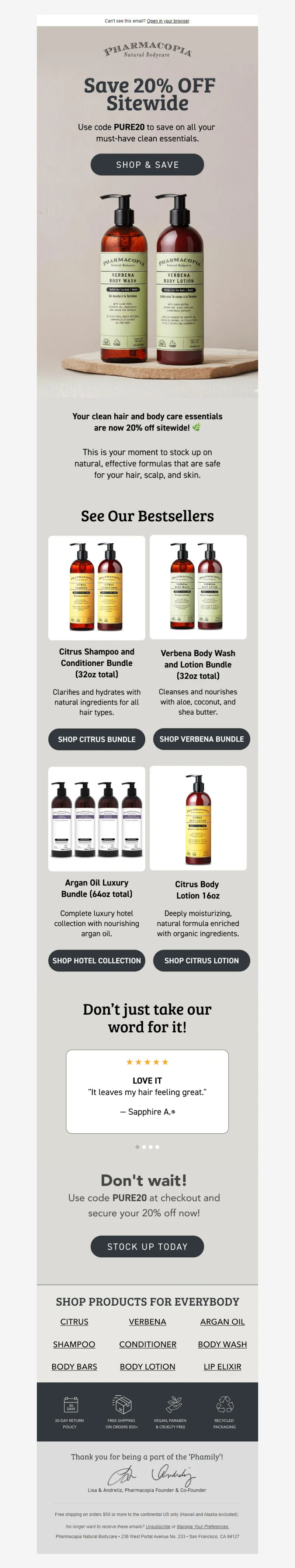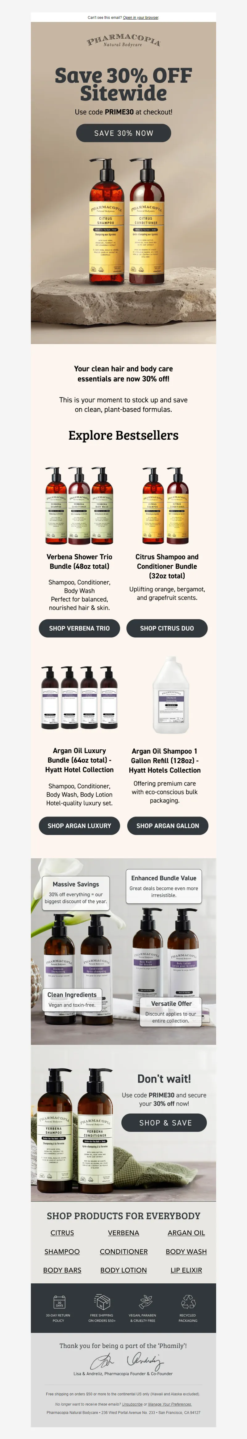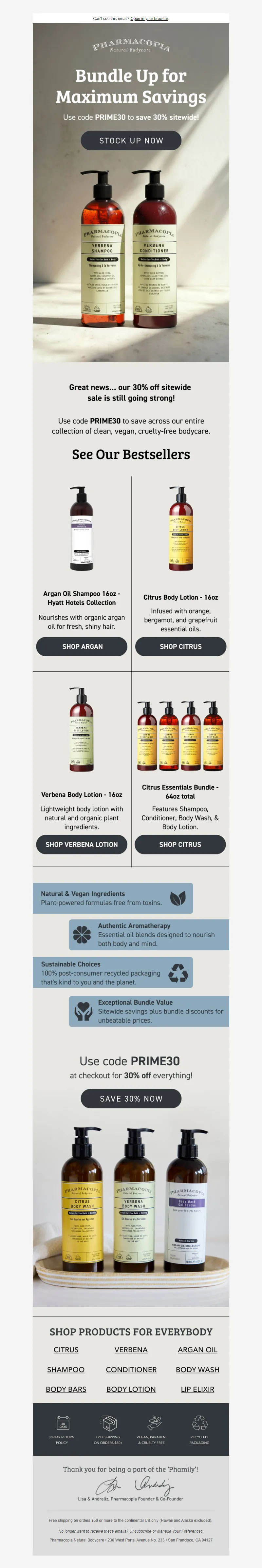 Explore campaign email examples from Pharmacopia, including promotions, newsletters, and product announcements. Built as a reference library for studying real ecommerce email execution.