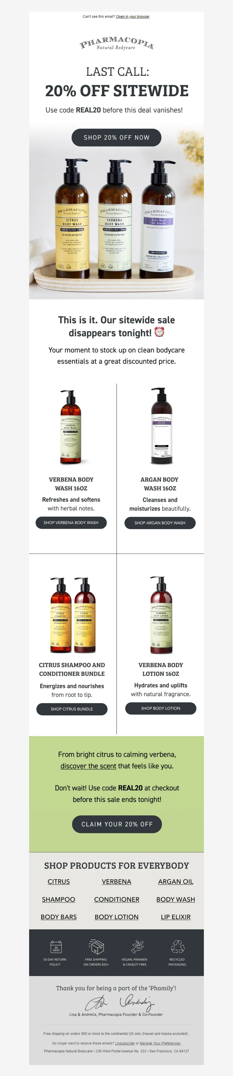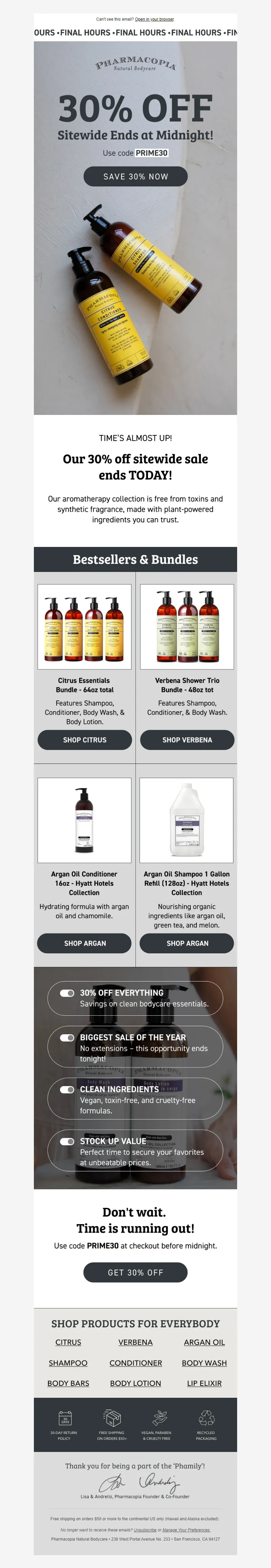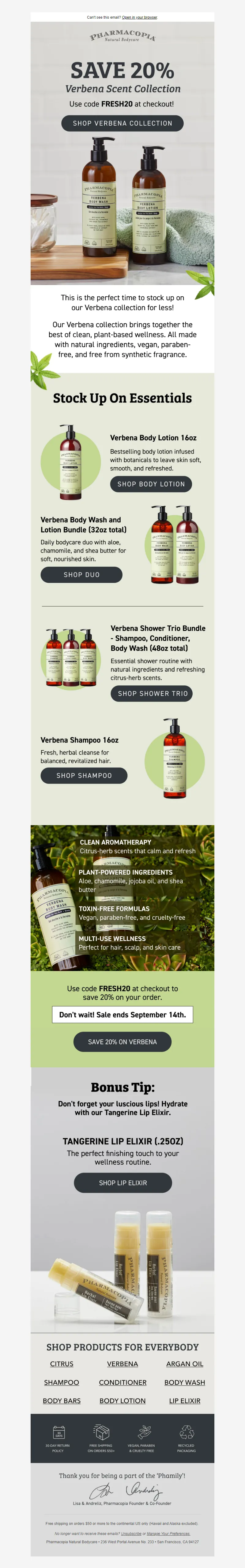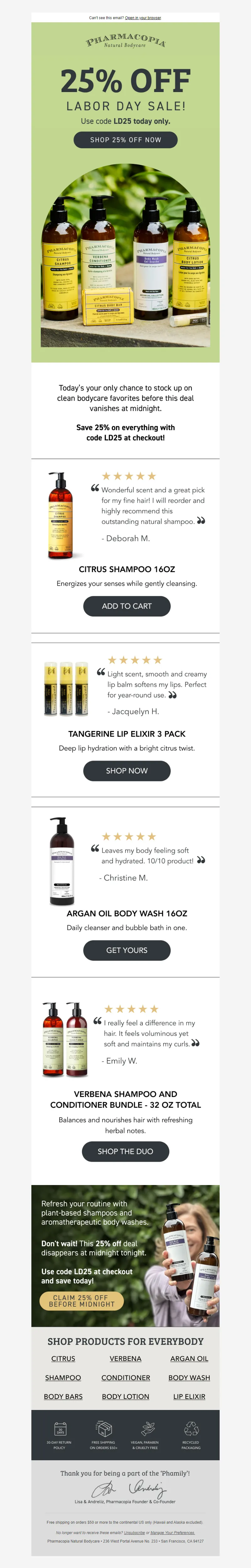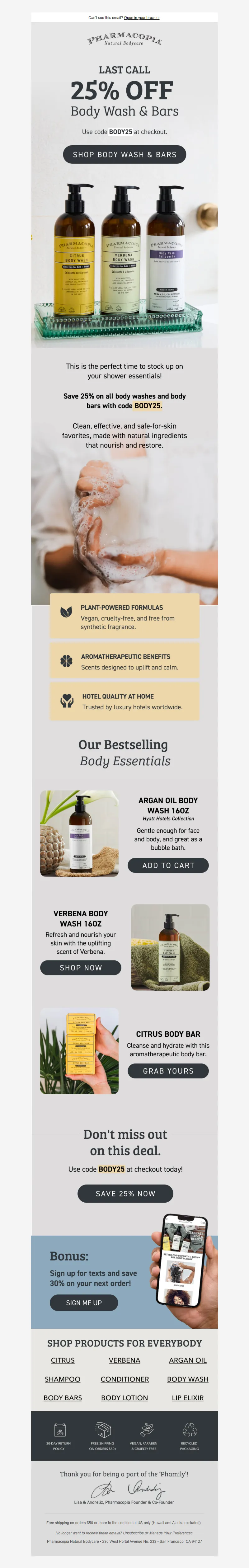 Explore campaign email examples from Pharmacopia, including promotions, newsletters, and product announcements. Built as a reference library for studying real ecommerce email execution.