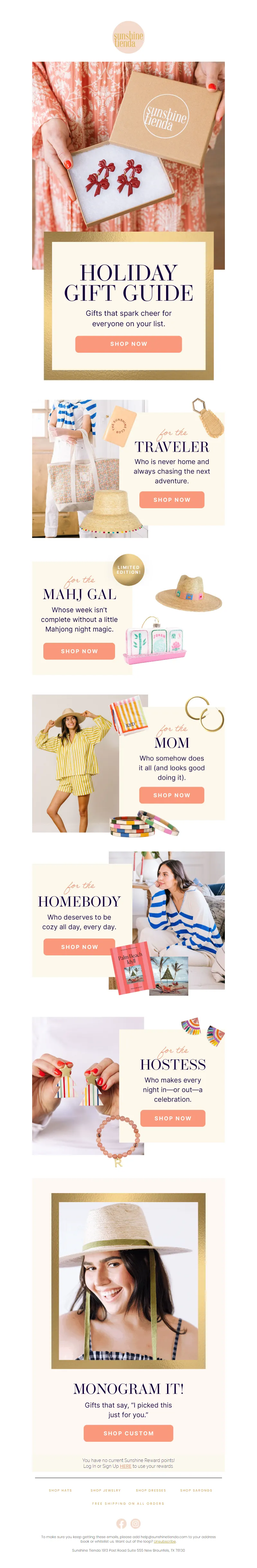 Explore campaign email examples from Sunshine Tienda, including promotions, newsletters, and product announcements. Built as a reference library for studying real ecommerce email execution.