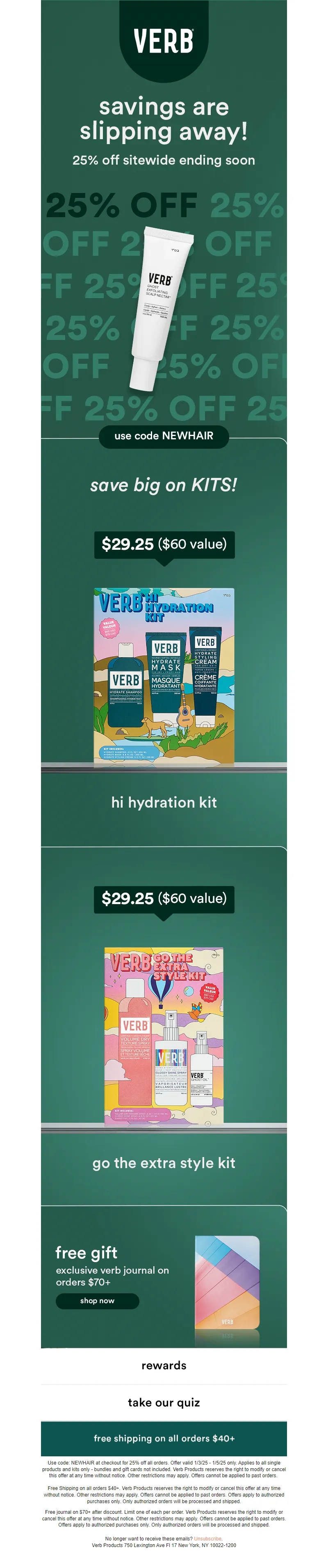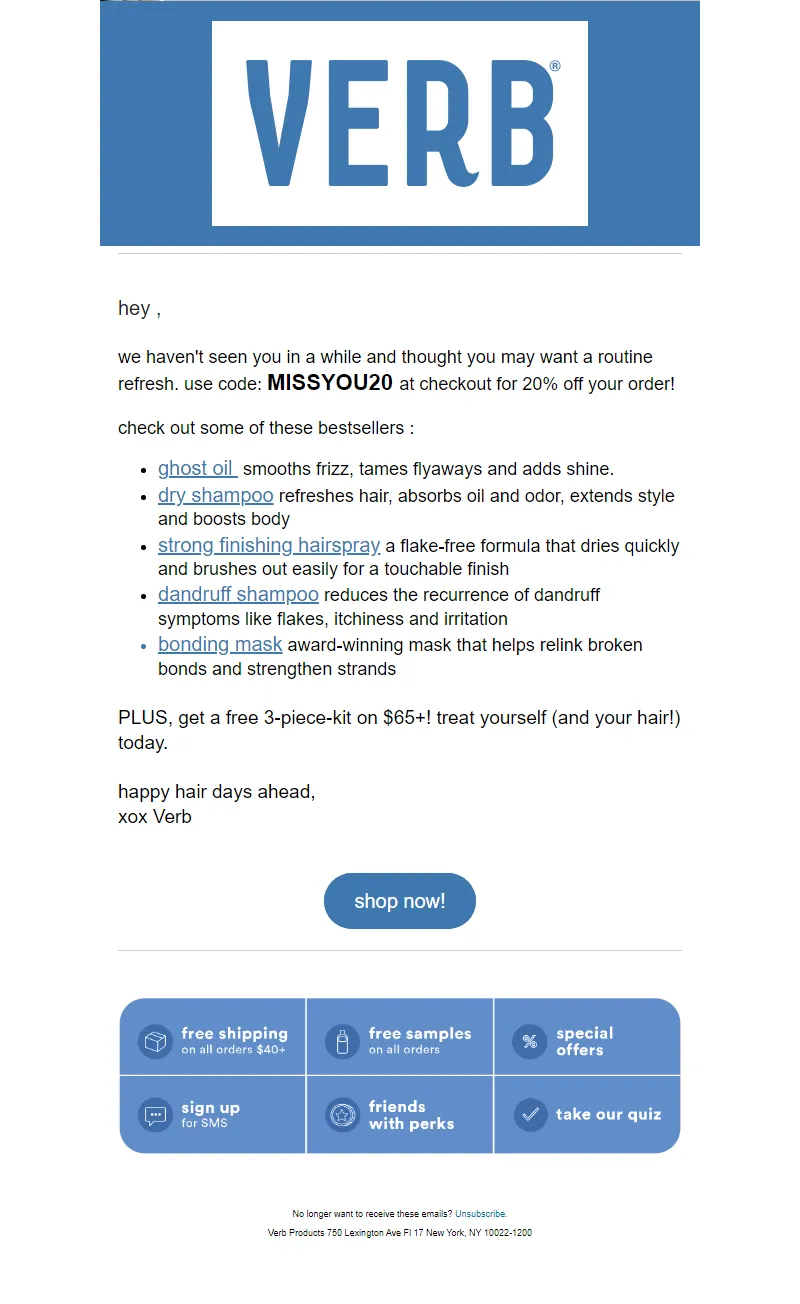 Explore campaign email examples from Verb Products, including promotions, newsletters, and product announcements. Built as a reference library for studying real ecommerce email execution.