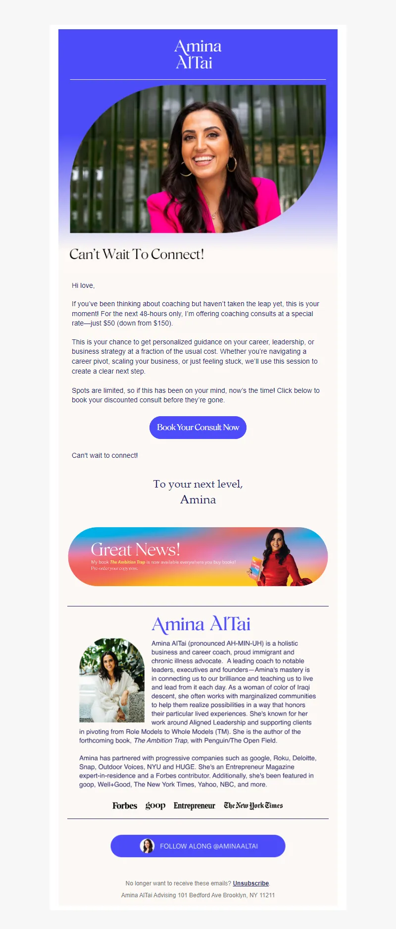 Explore campaign email examples from Amina AlTai, including promotions, newsletters, and product announcements. Built as a reference library for studying real ecommerce email execution.