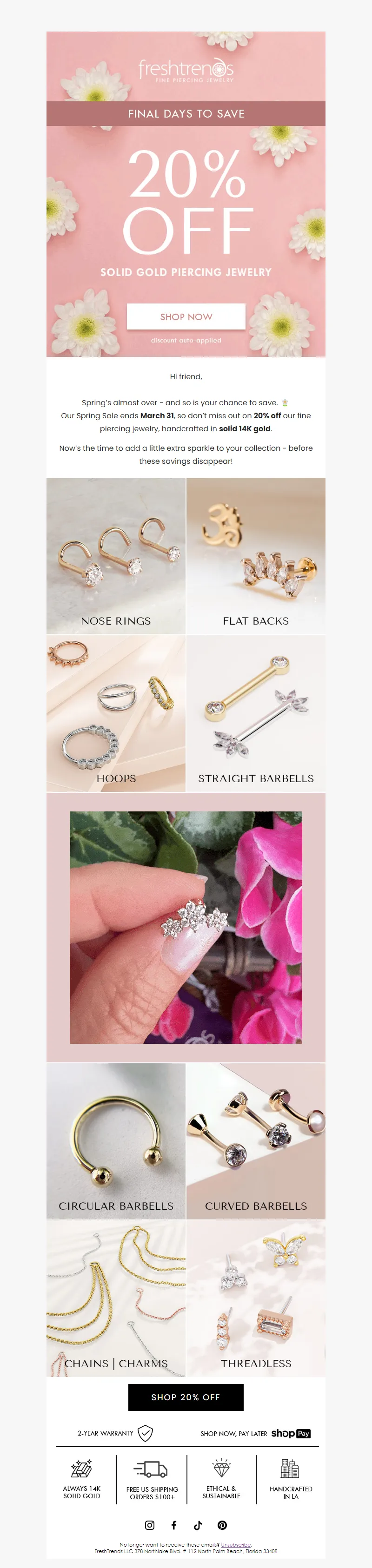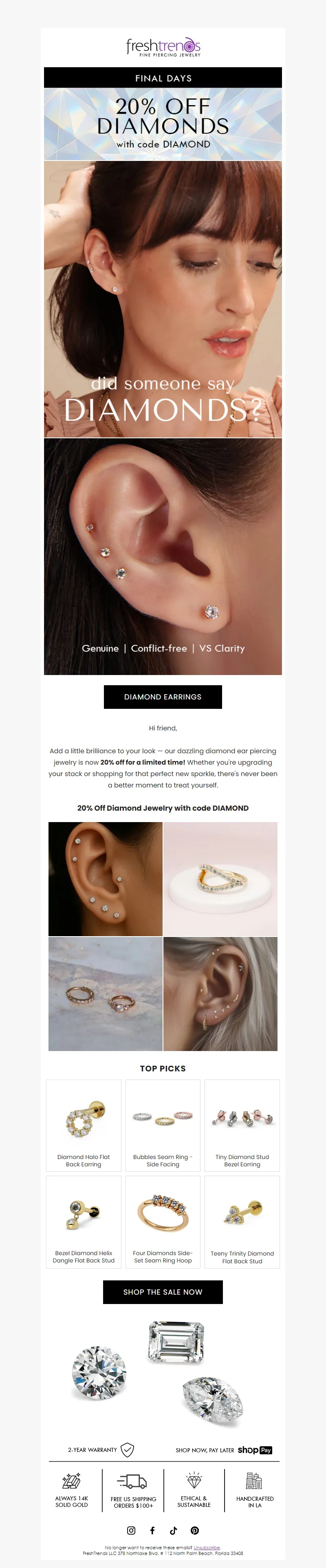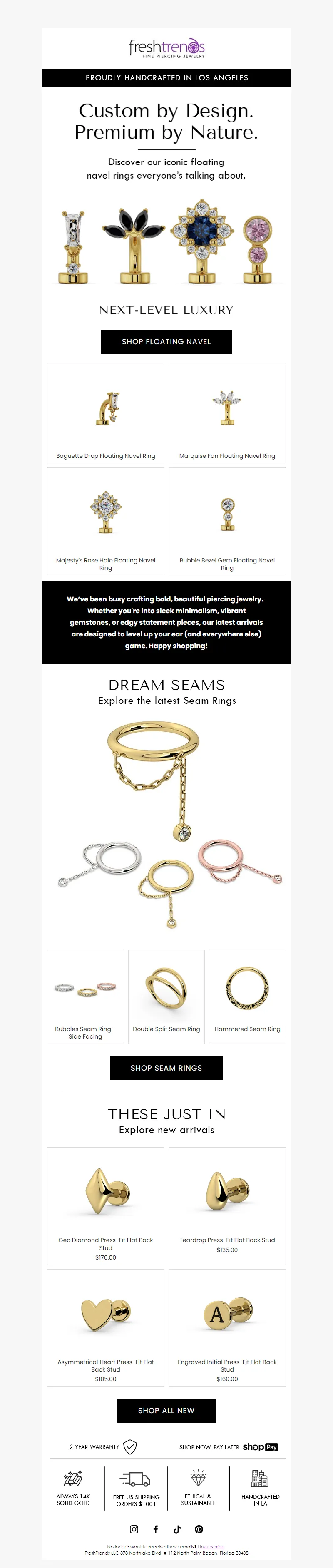 Explore campaign email examples from FreshTrends.com, including promotions, newsletters, and product announcements. Built as a reference library for studying real ecommerce email execution.