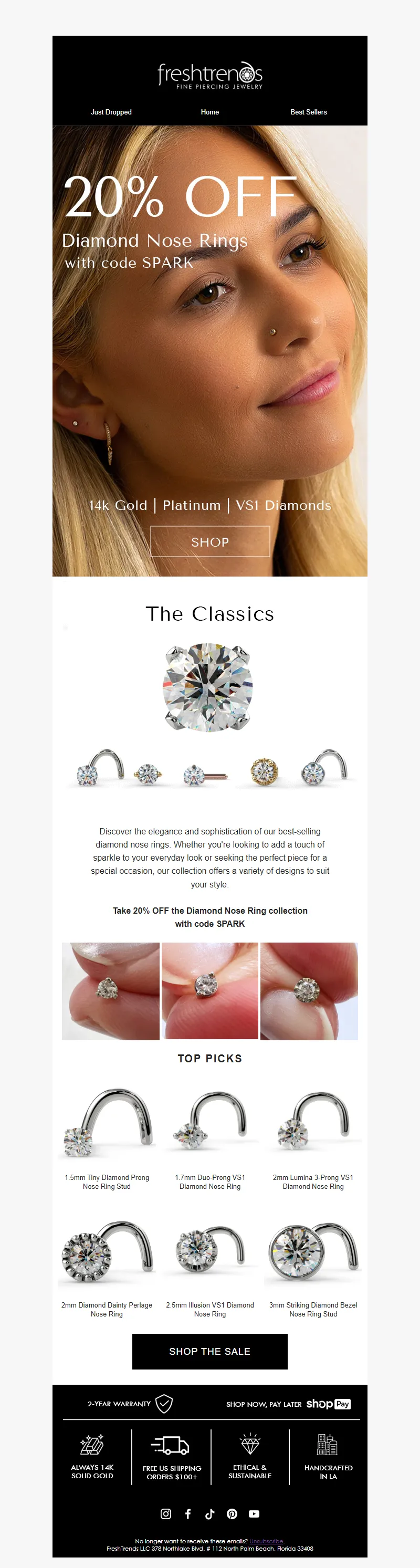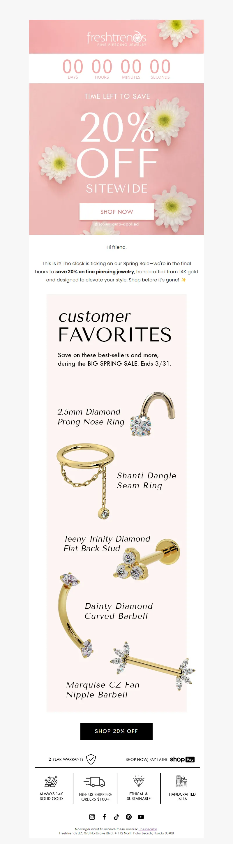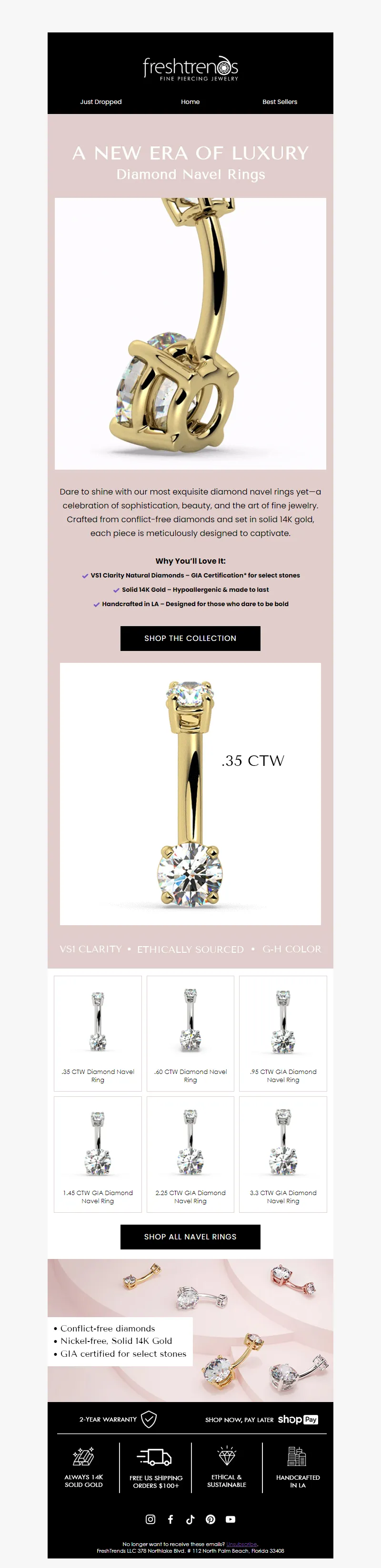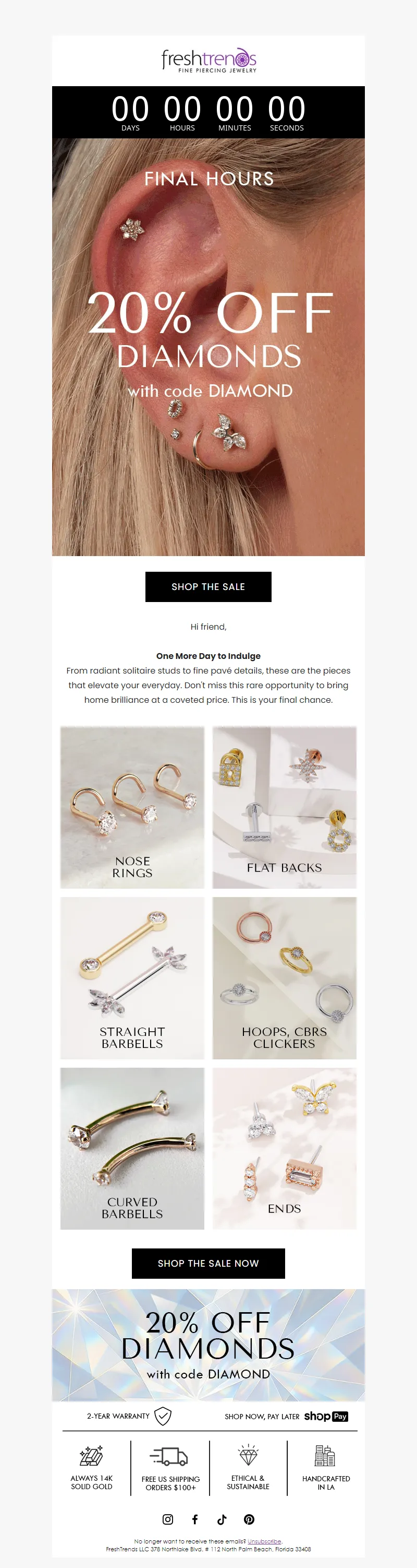 Explore campaign email examples from FreshTrends.com, including promotions, newsletters, and product announcements. Built as a reference library for studying real ecommerce email execution.