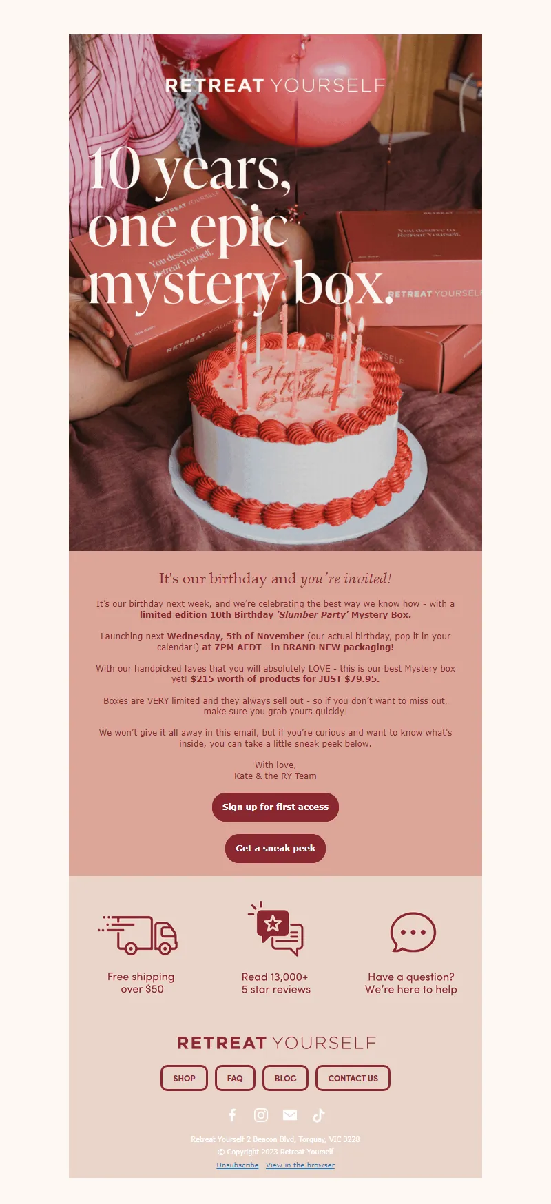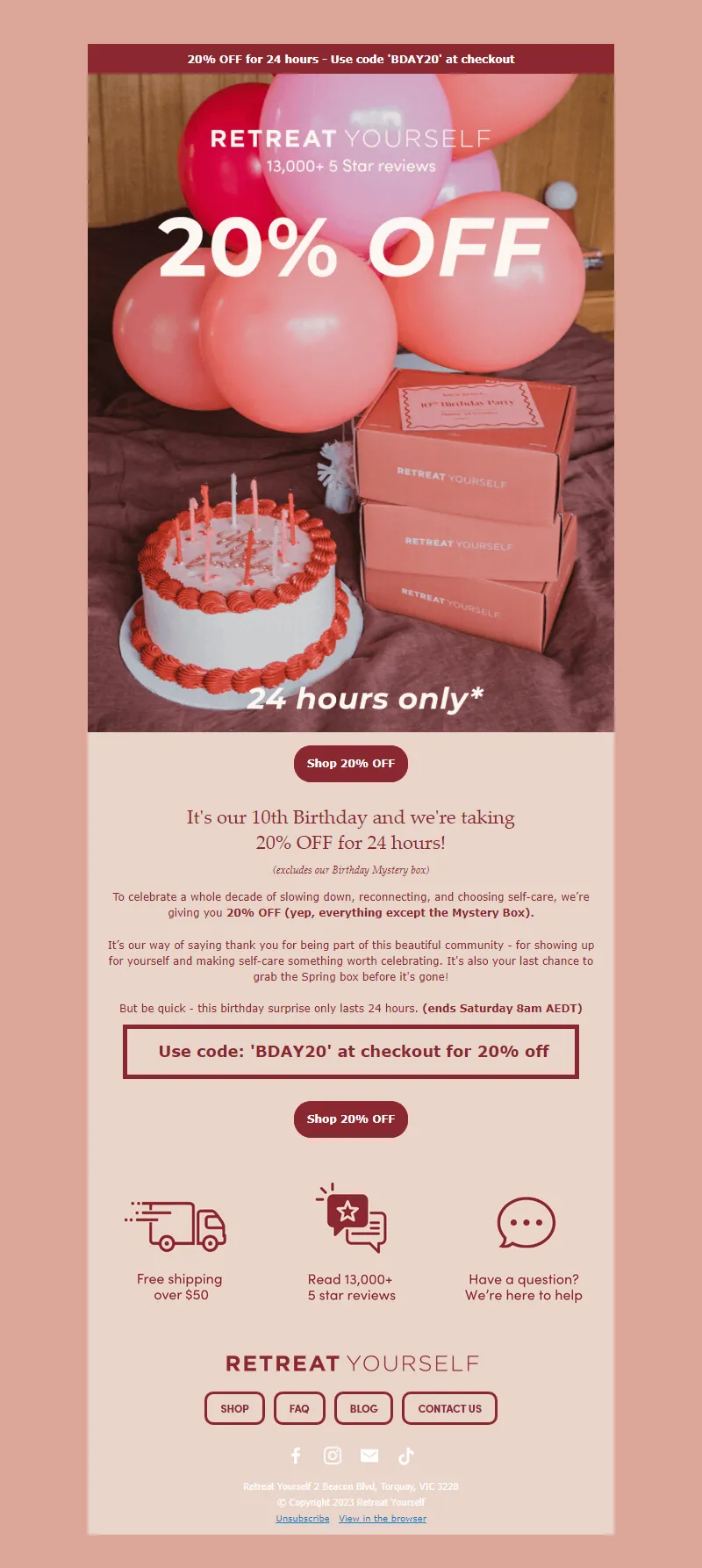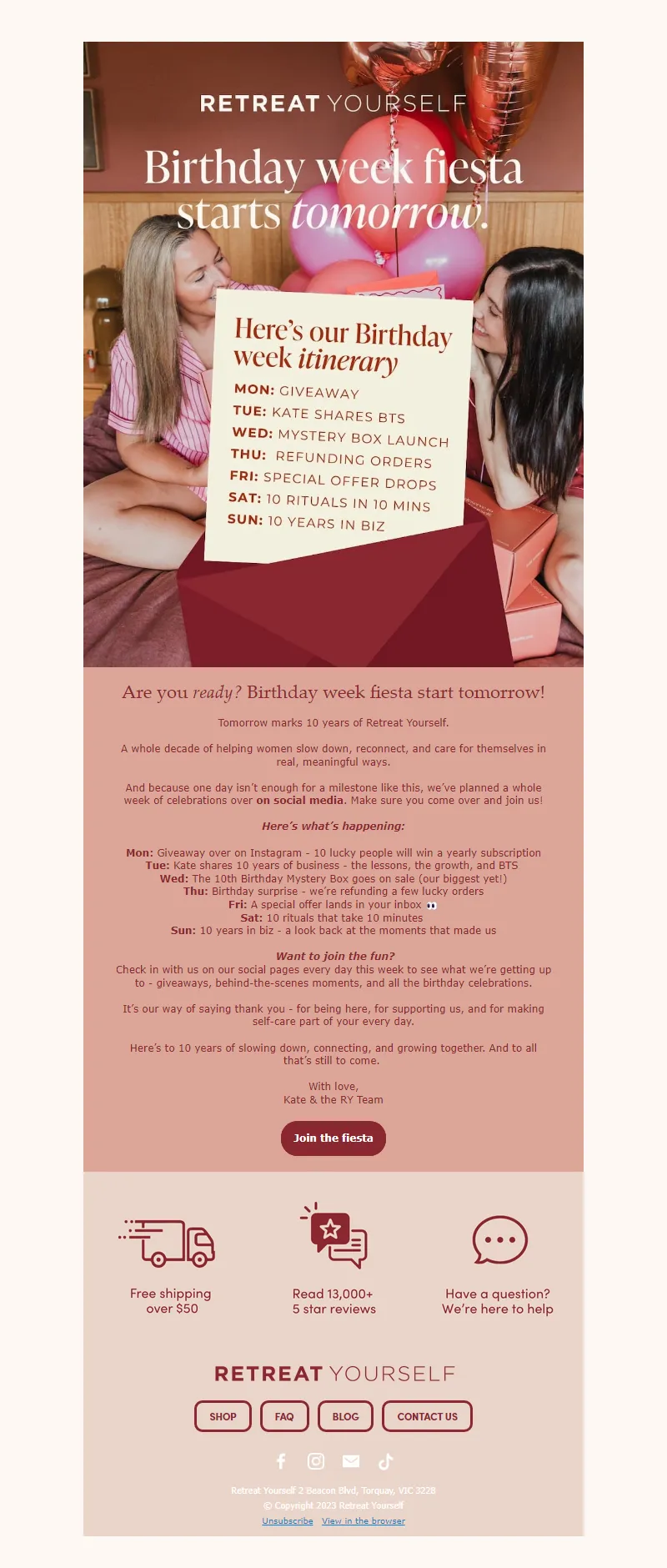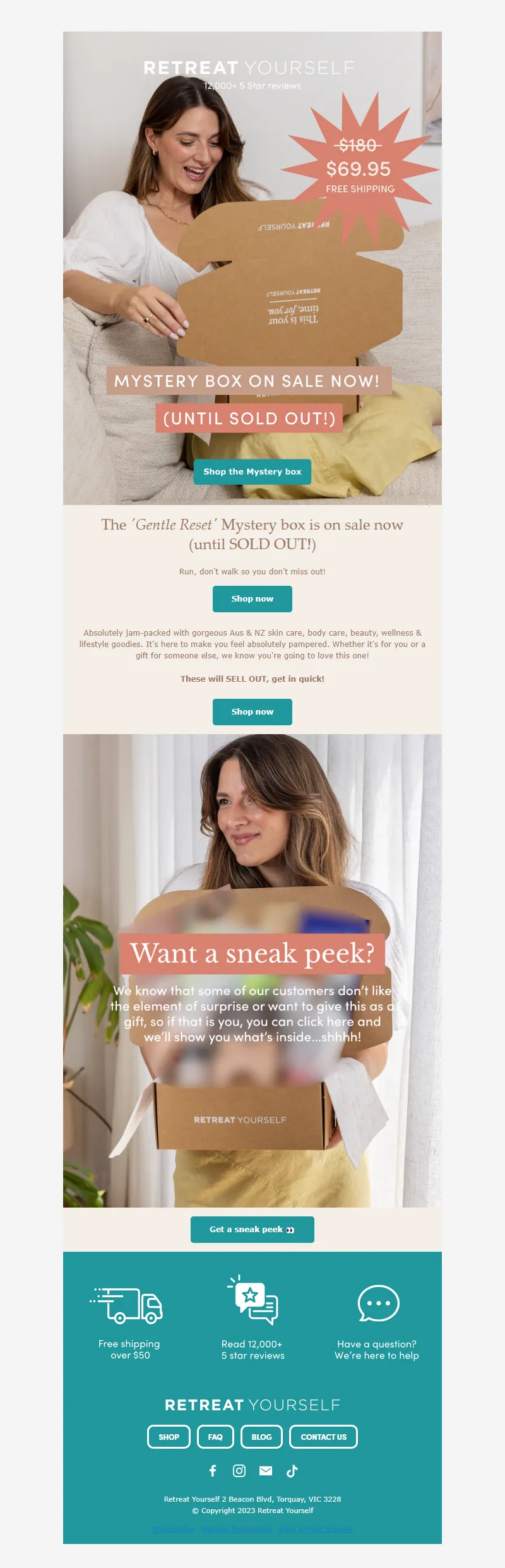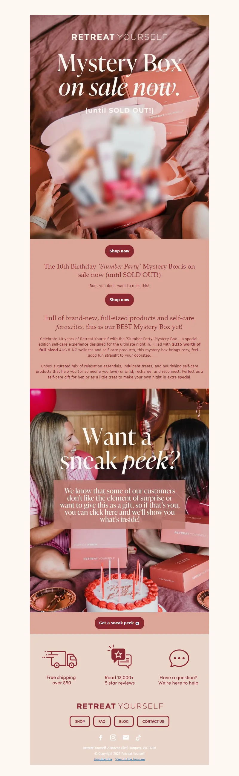 Explore campaign email examples from Retreat Yourself, including promotions, newsletters, and product announcements. Built as a reference library for studying real ecommerce email execution.