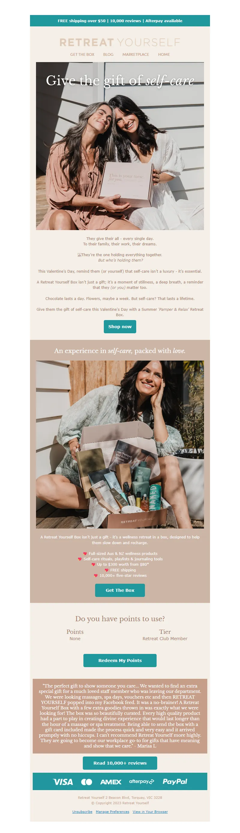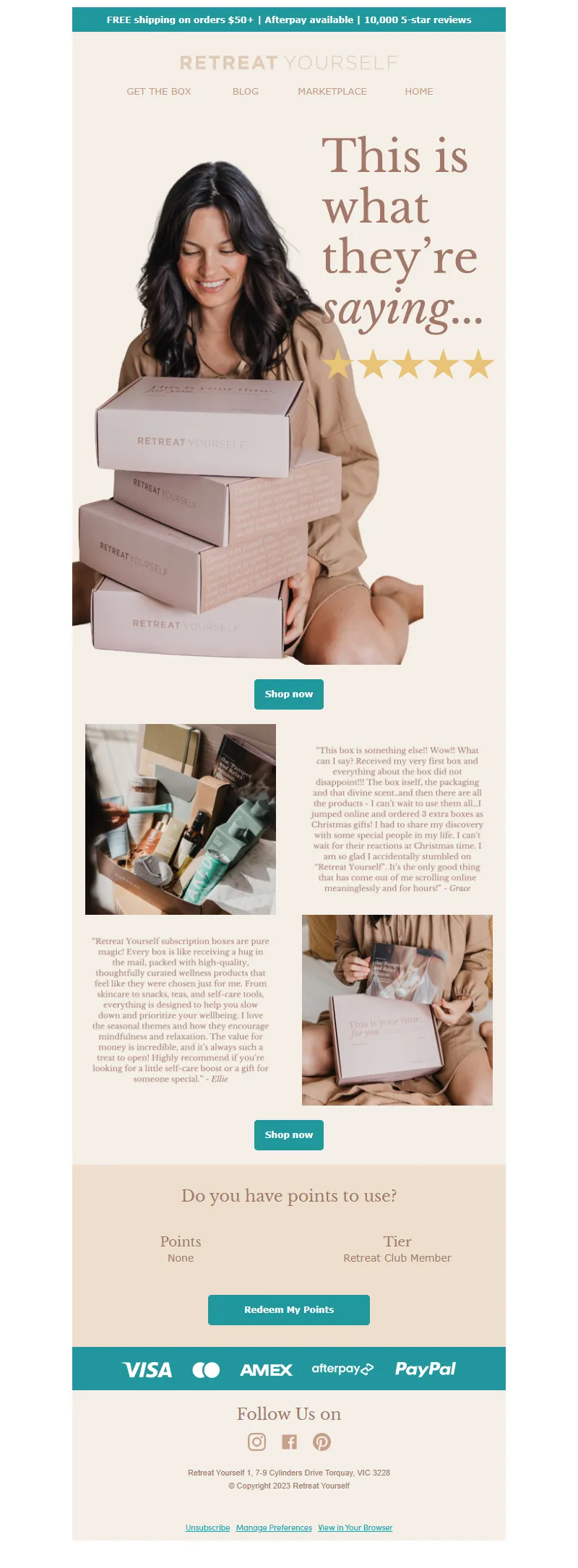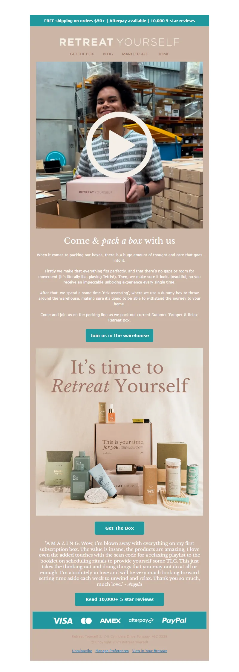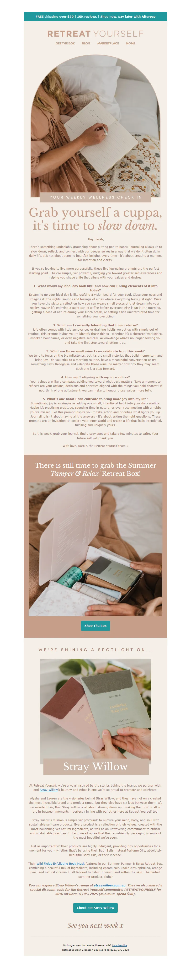 Explore campaign email examples from Retreat Yourself, including promotions, newsletters, and product announcements. Built as a reference library for studying real ecommerce email execution.