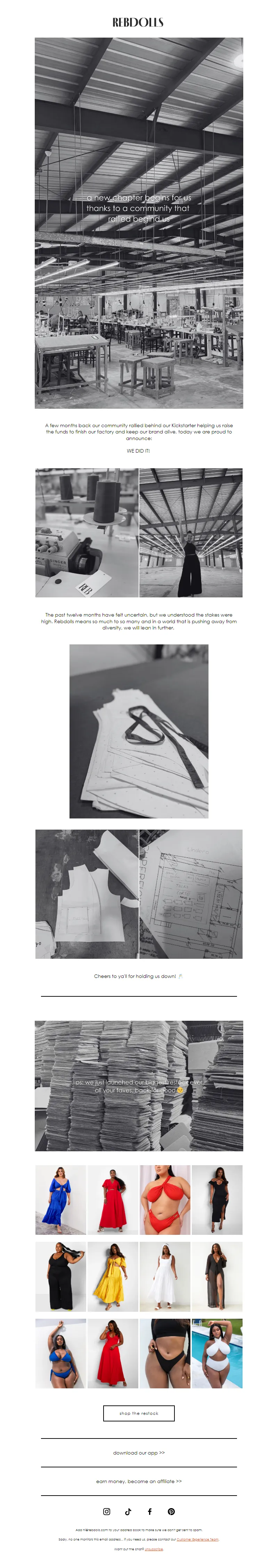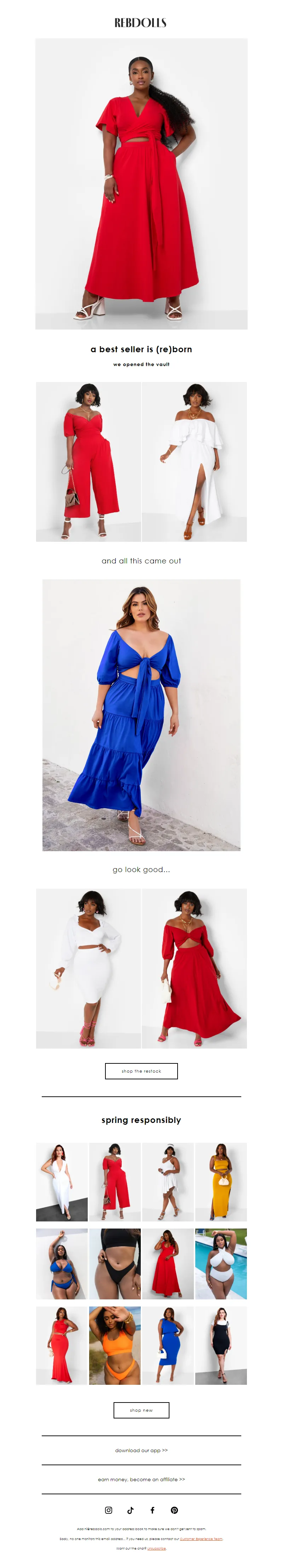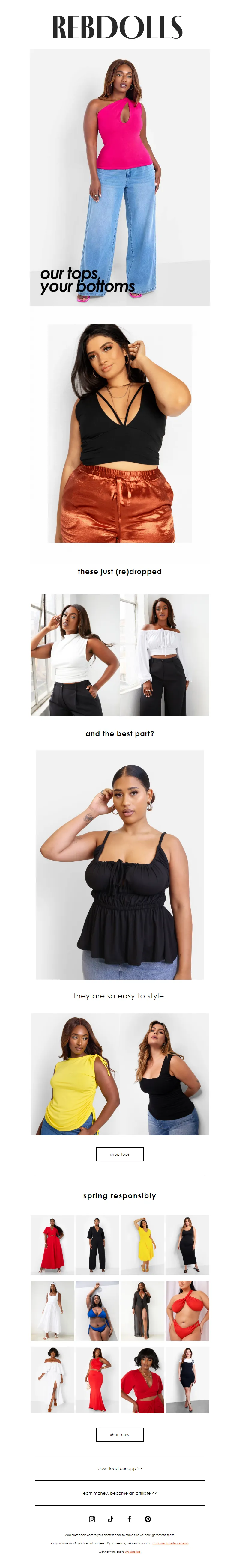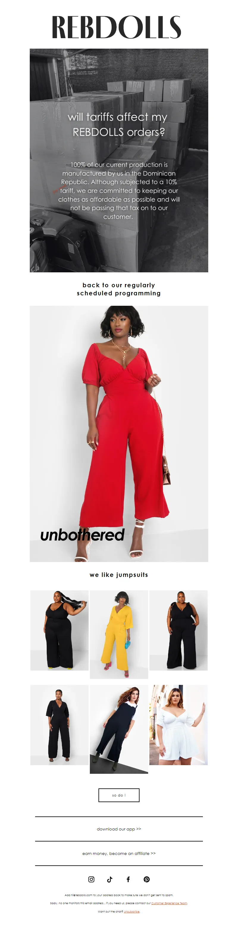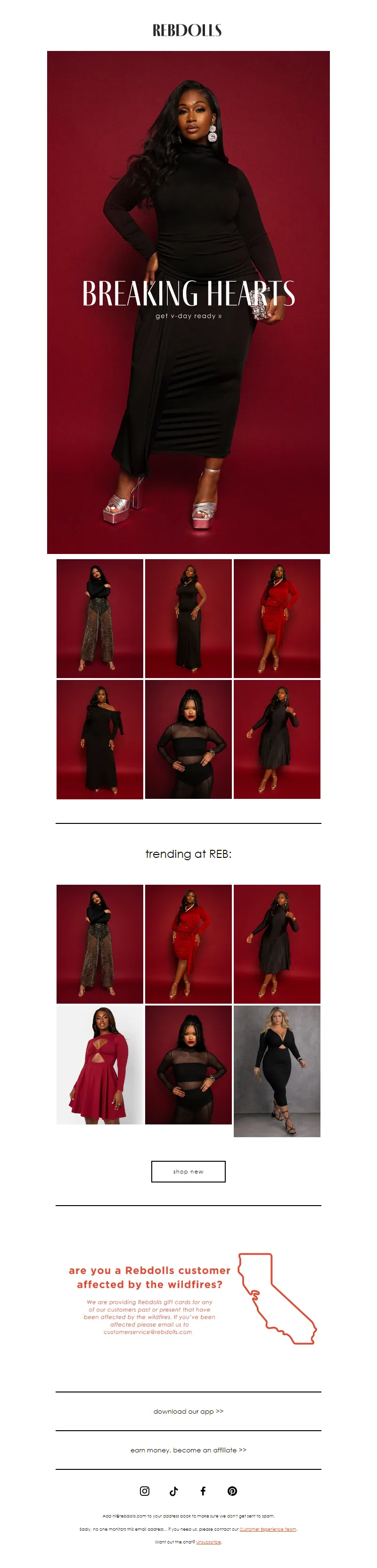 Explore campaign email examples from Rebdolls, including promotions, newsletters, and product announcements. Built as a reference library for studying real ecommerce email execution.