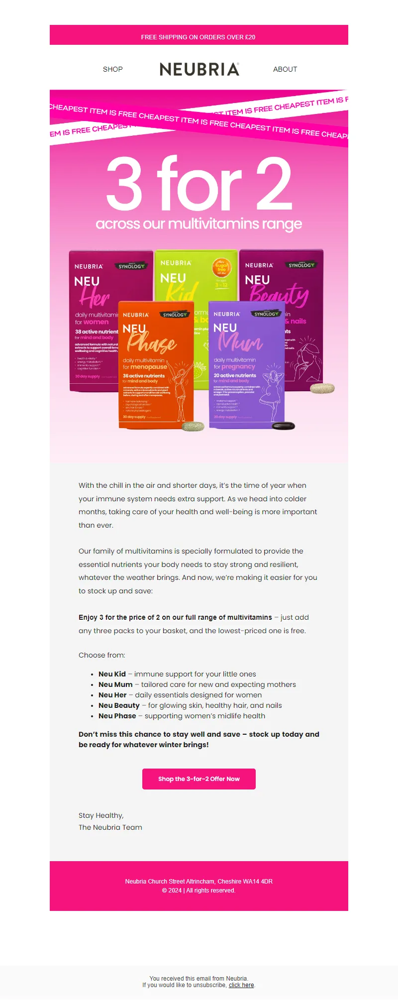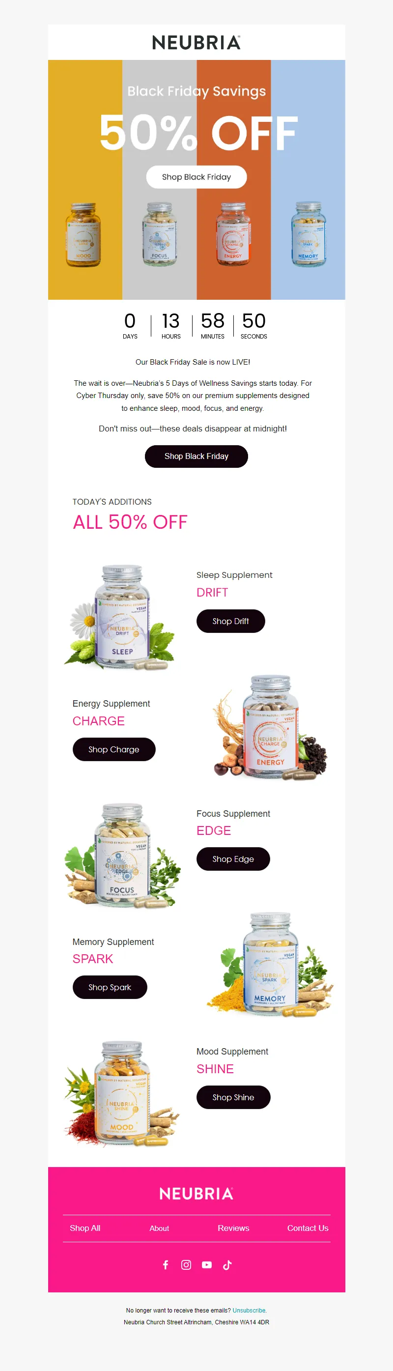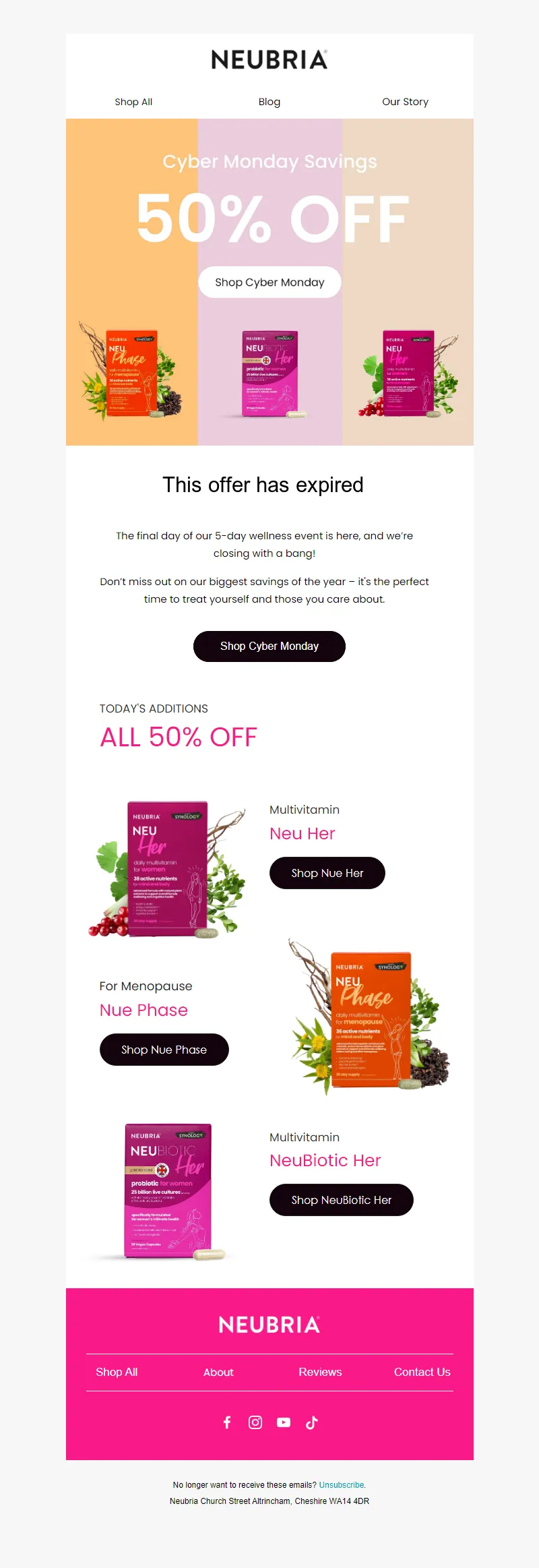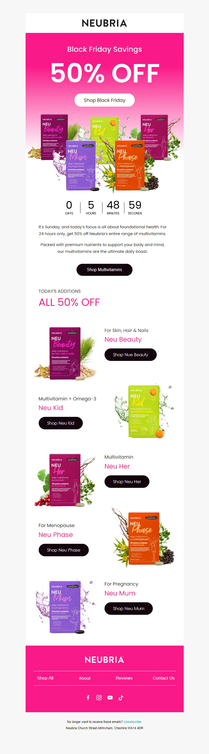 Explore campaign email examples from Neubria, including promotions, newsletters, and product announcements. Built as a reference library for studying real ecommerce email execution.