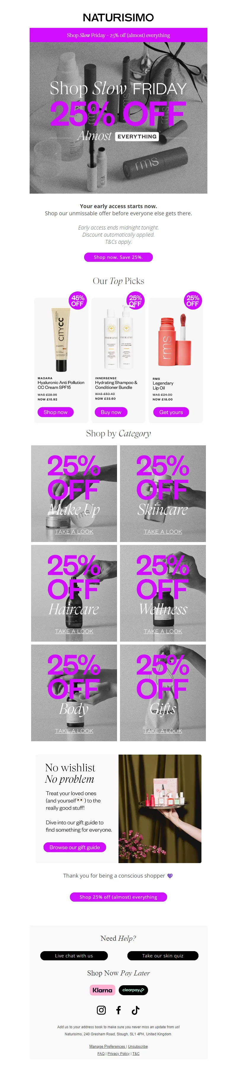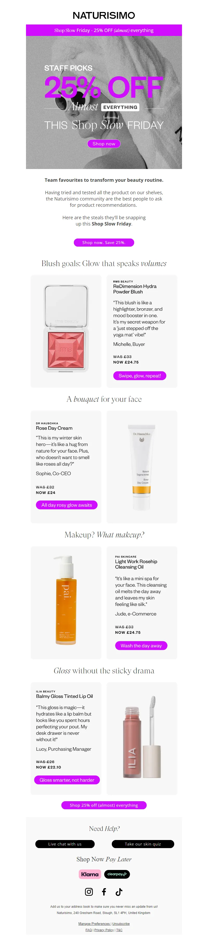 Explore campaign email examples from Naturisimo, including promotions, newsletters, and product announcements. Built as a reference library for studying real ecommerce email execution.