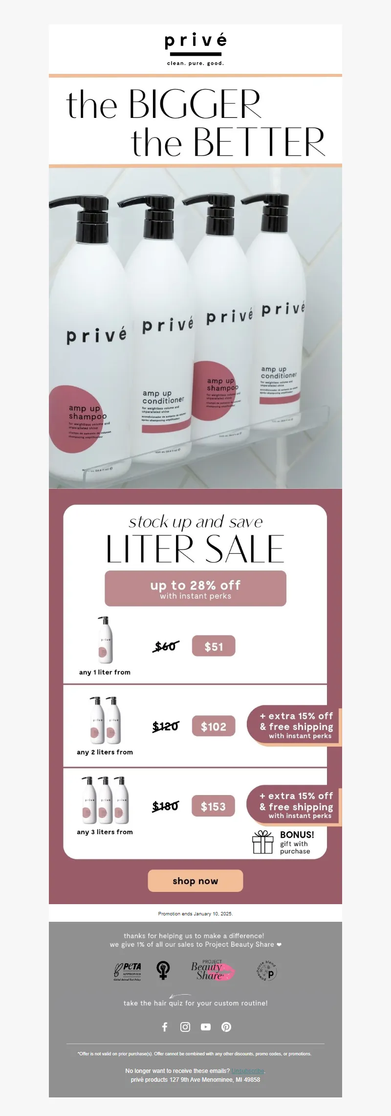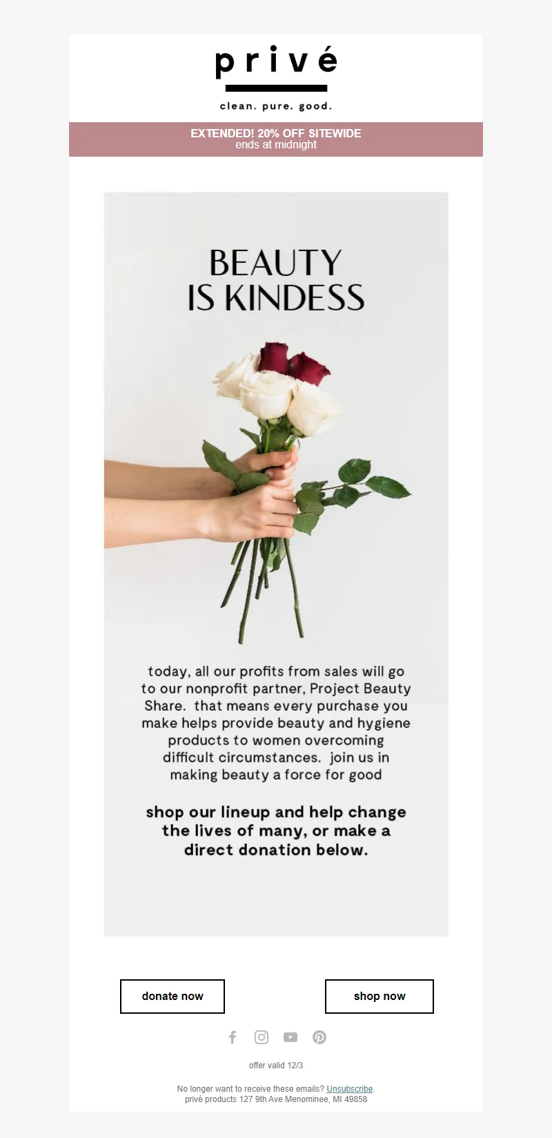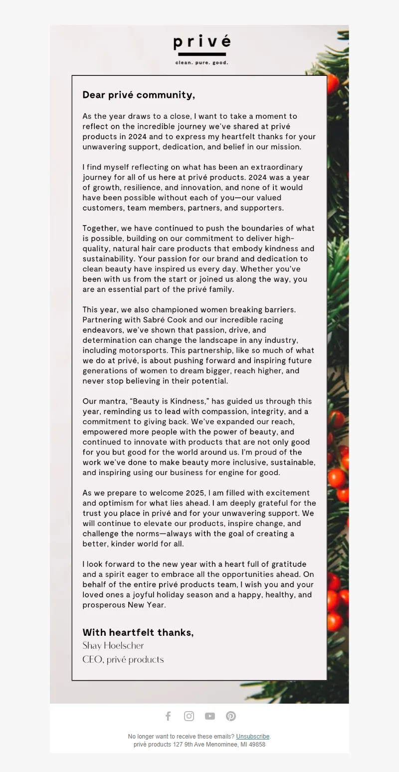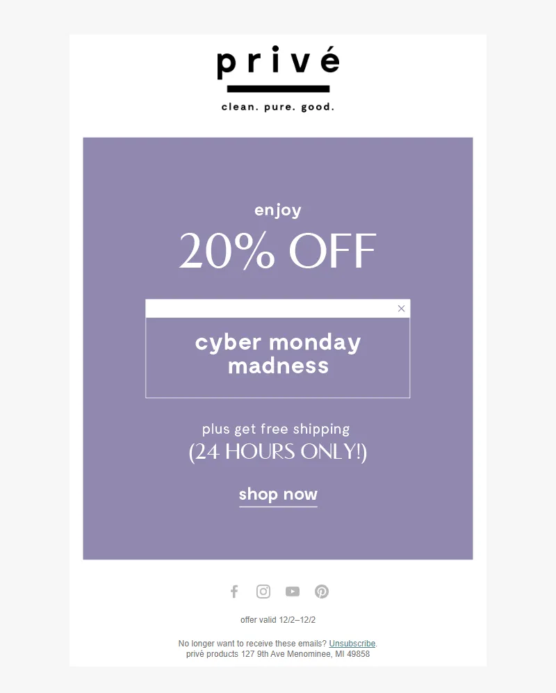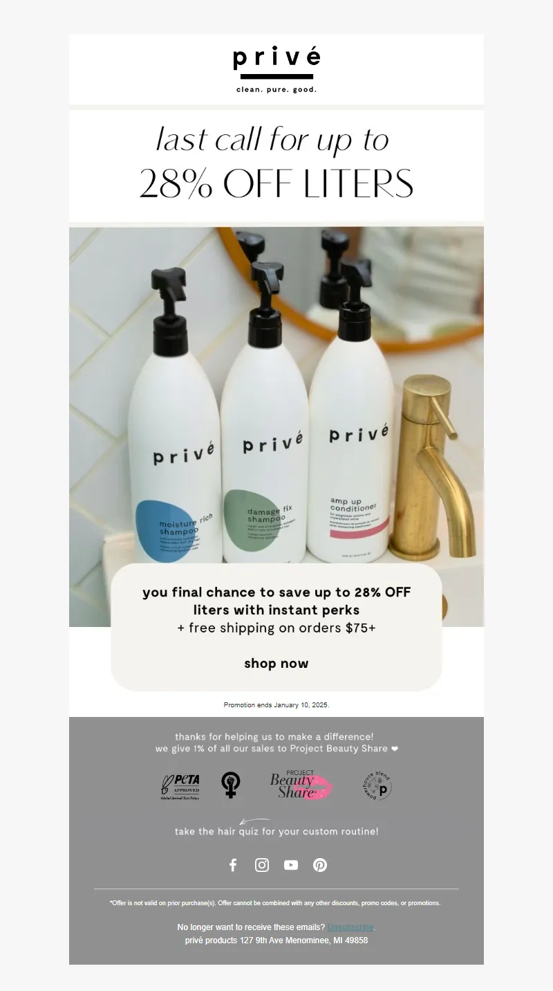 Explore campaign email examples from Prive Products, including promotions, newsletters, and product announcements. Built as a reference library for studying real ecommerce email execution.