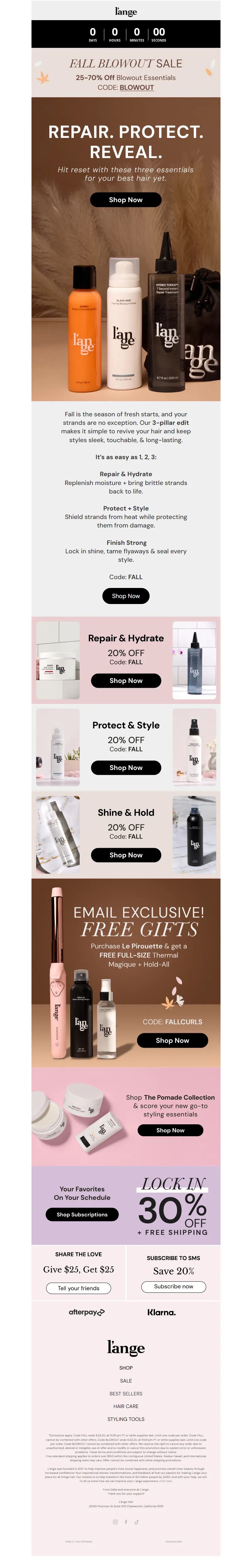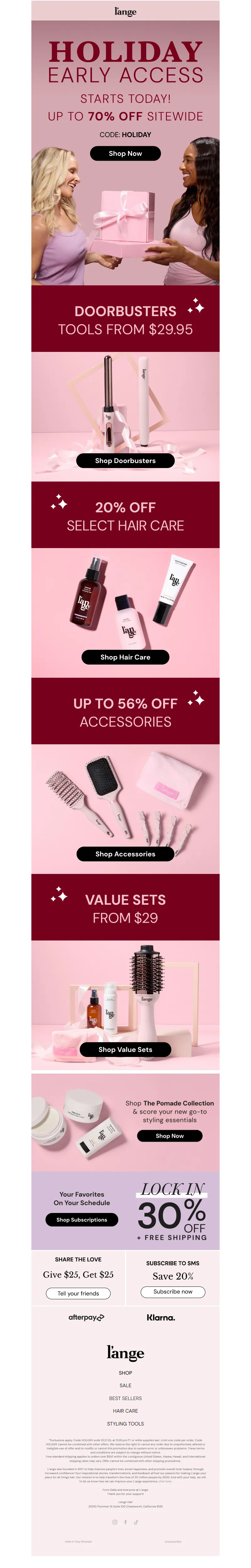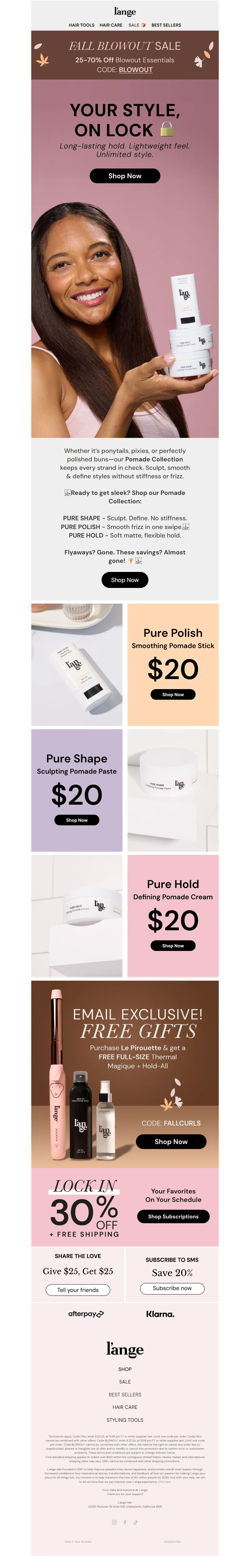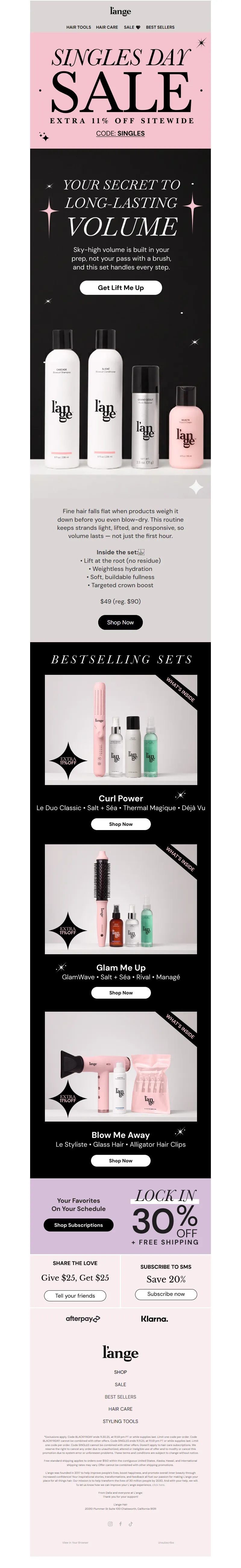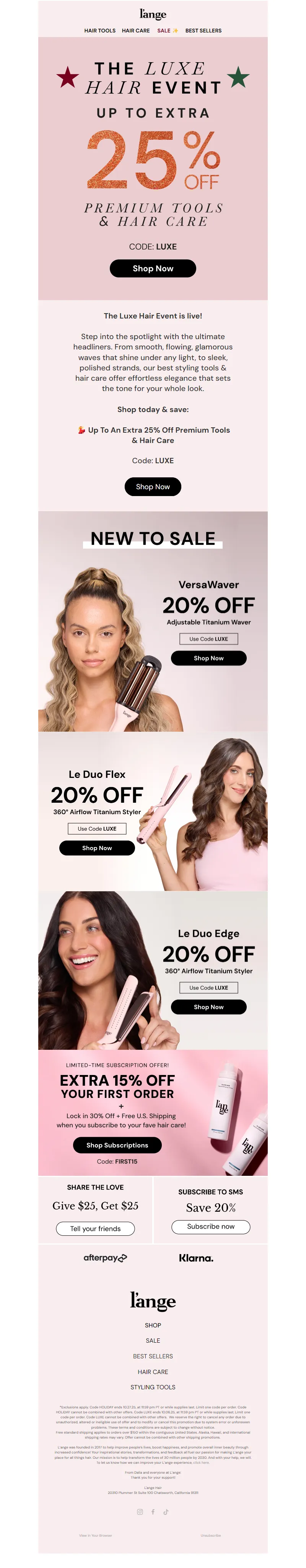 Explore campaign email examples from L'ange Hair, including promotions, newsletters, and product announcements. Built as a reference library for studying real ecommerce email execution.