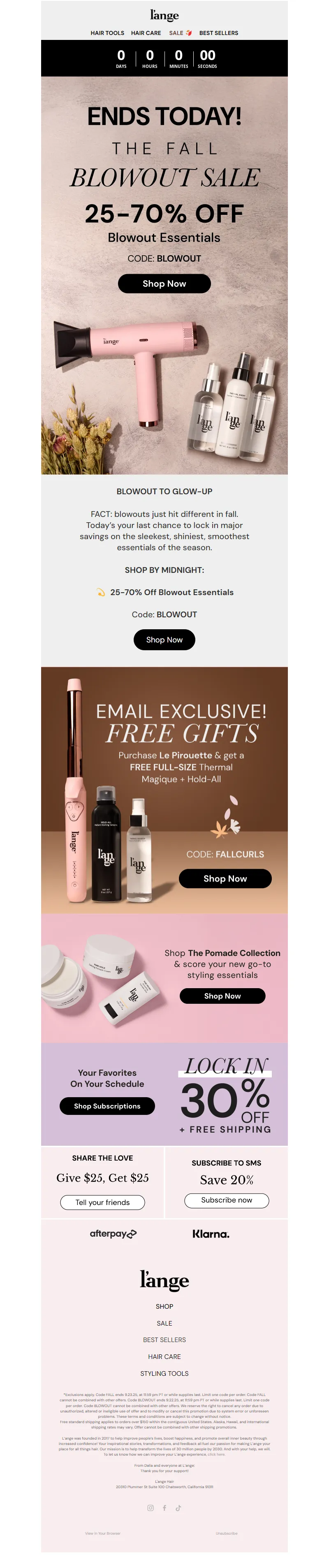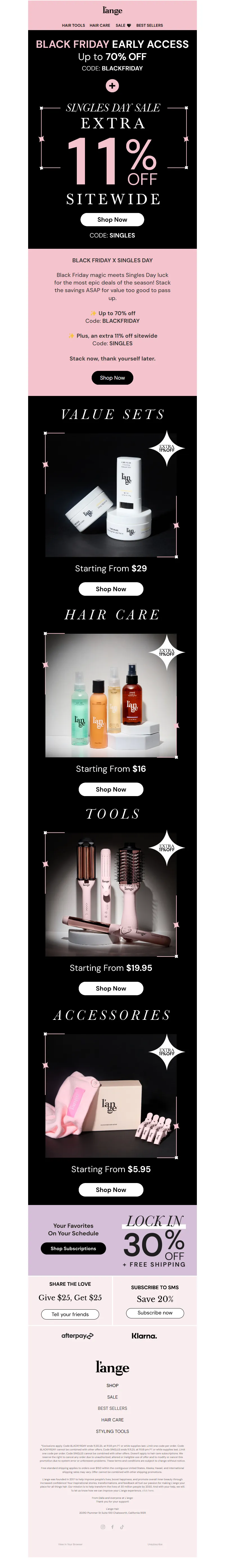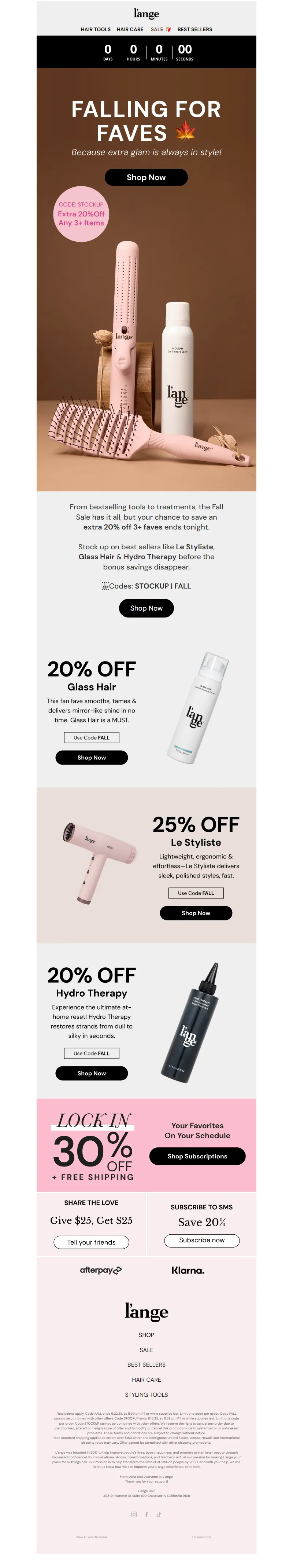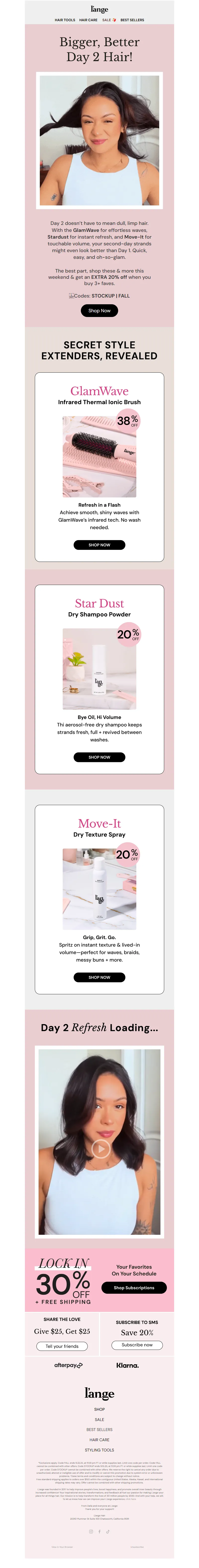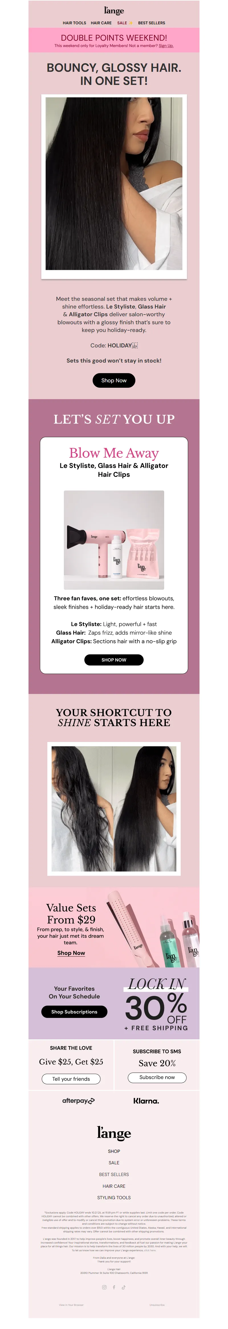 Explore campaign email examples from L'ange Hair, including promotions, newsletters, and product announcements. Built as a reference library for studying real ecommerce email execution.