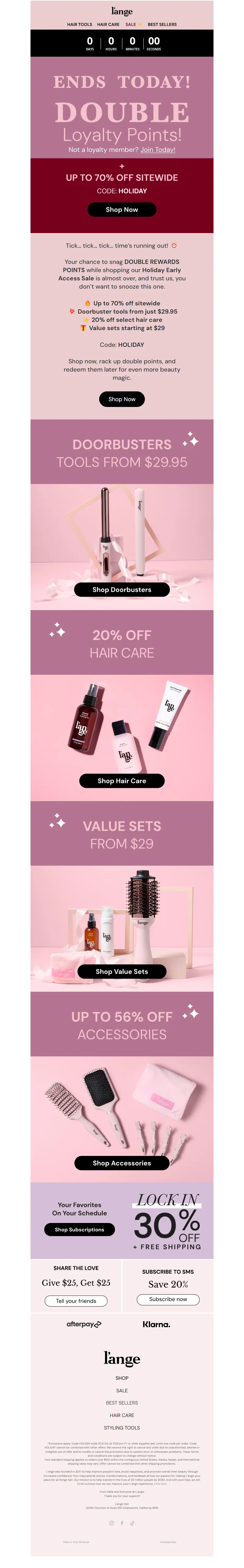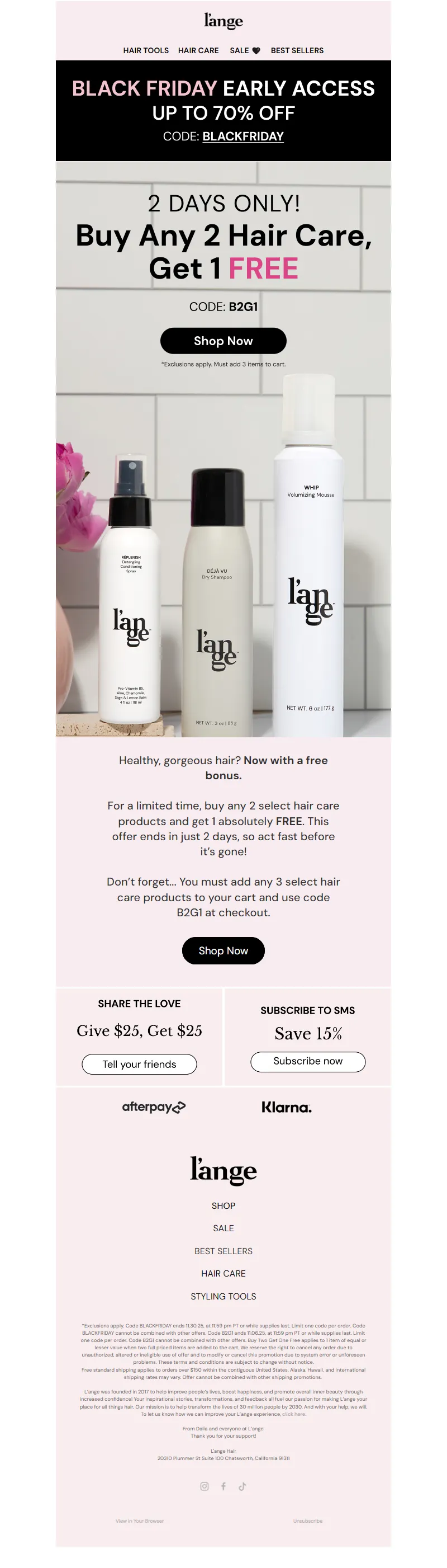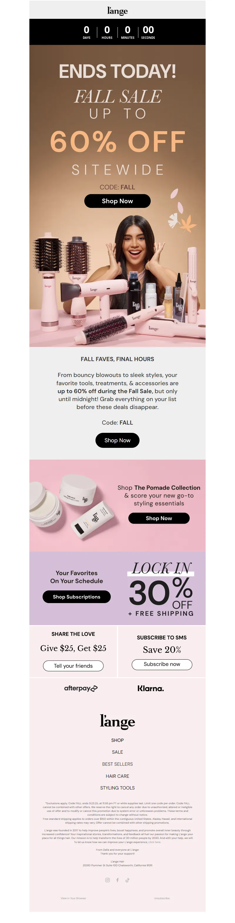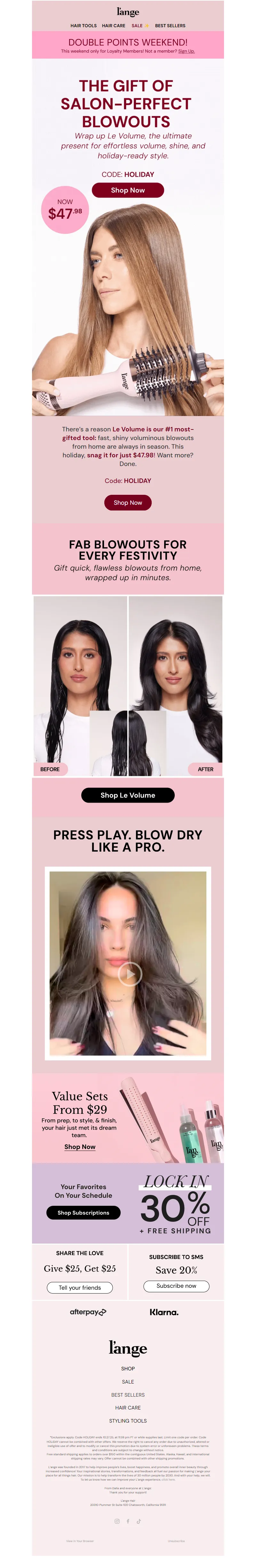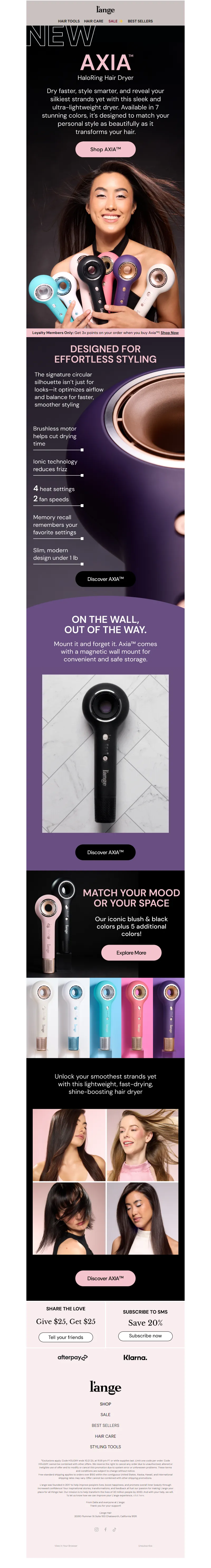 Explore campaign email examples from L'ange Hair, including promotions, newsletters, and product announcements. Built as a reference library for studying real ecommerce email execution.