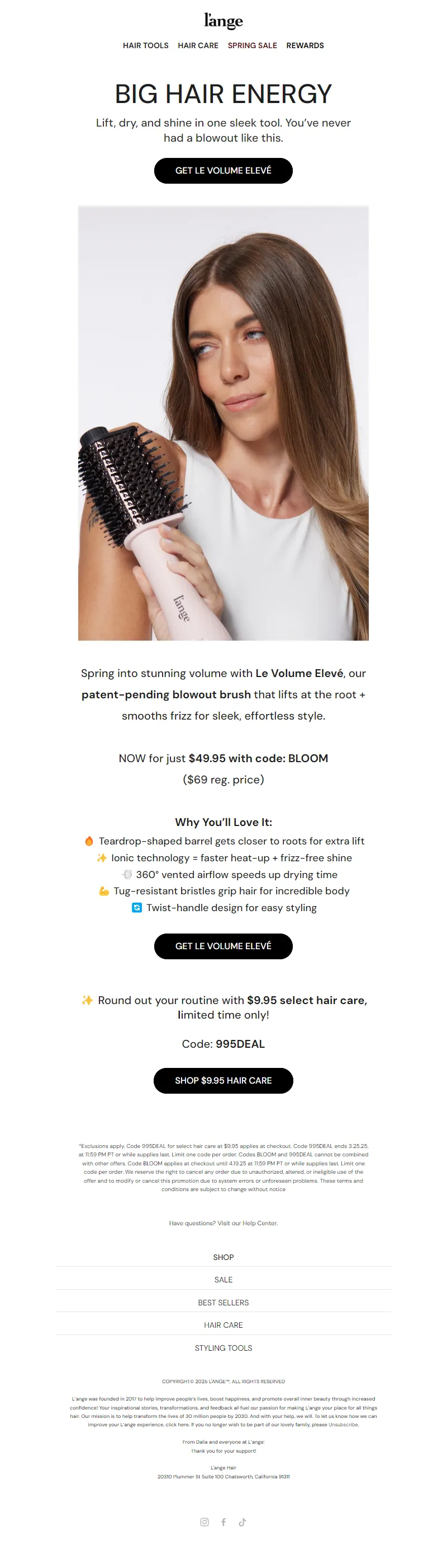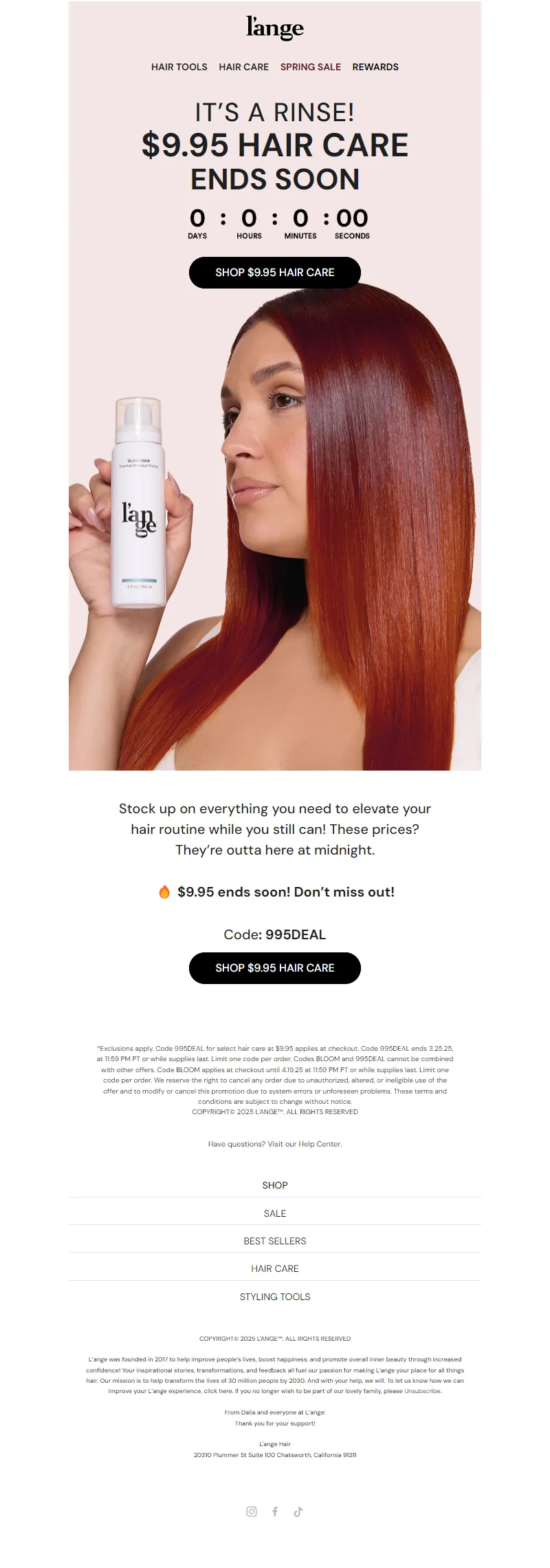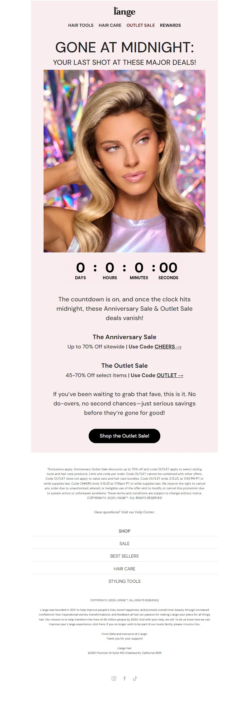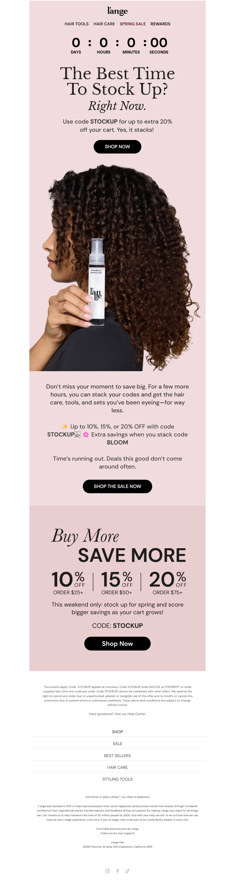 Explore campaign email examples from L'ange Hair, including promotions, newsletters, and product announcements. Built as a reference library for studying real ecommerce email execution.