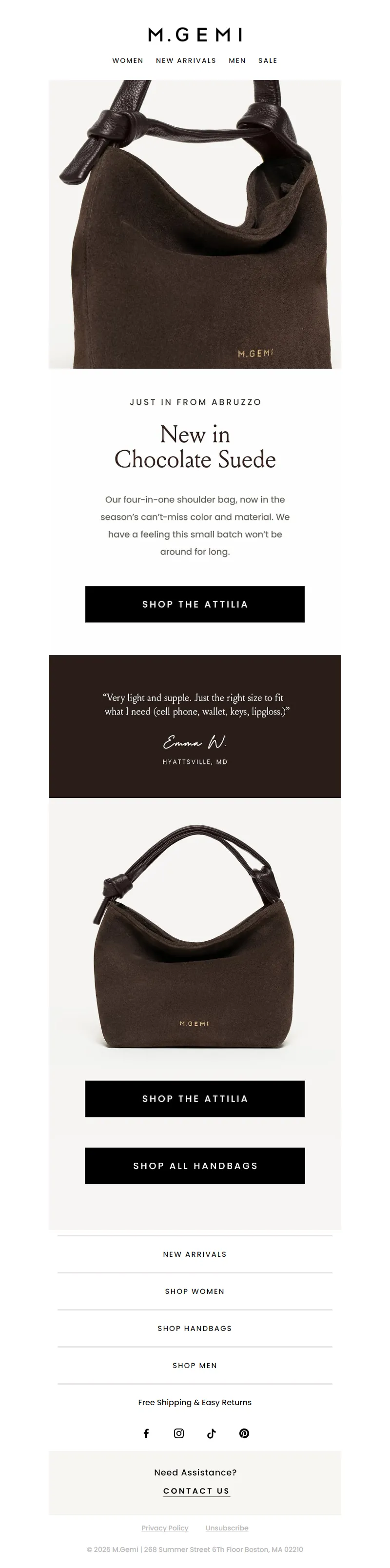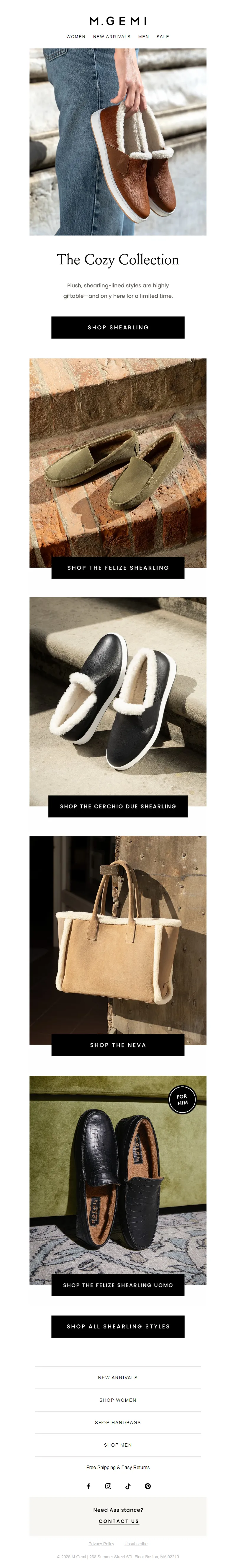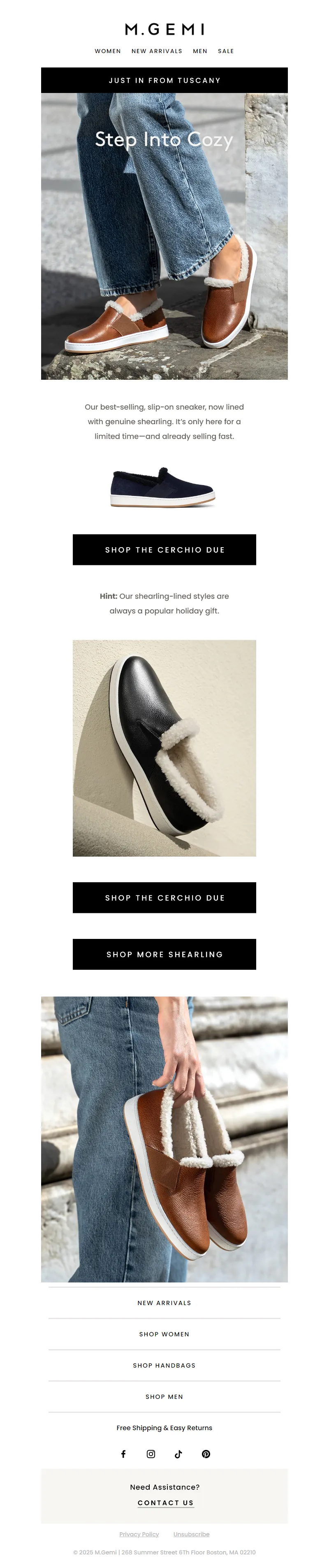 Explore campaign email examples from M.Gemi, including promotions, newsletters, and product announcements. Built as a reference library for studying real ecommerce email execution.