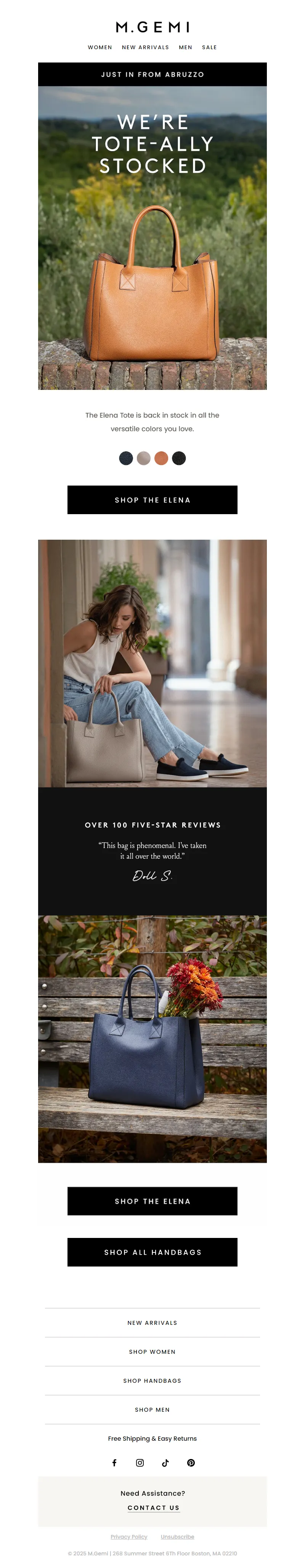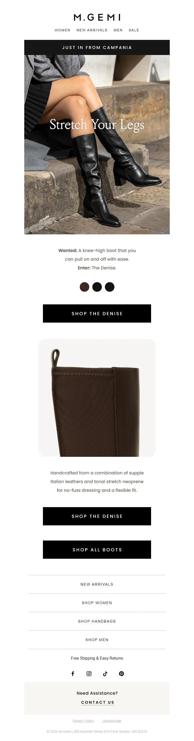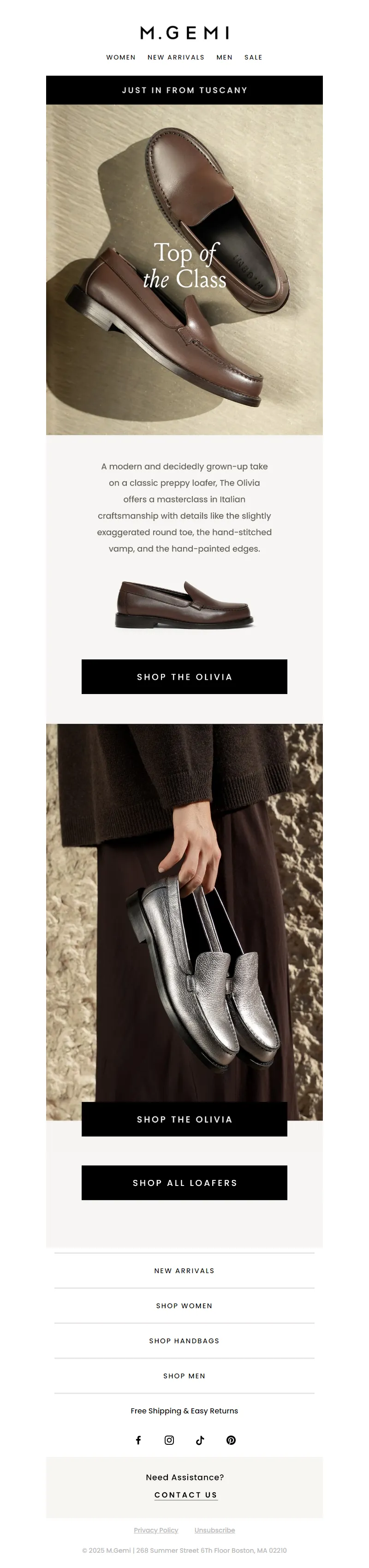 Explore campaign email examples from M.Gemi, including promotions, newsletters, and product announcements. Built as a reference library for studying real ecommerce email execution.