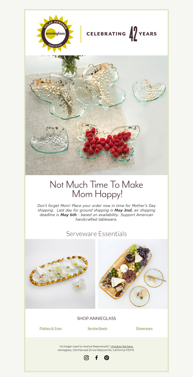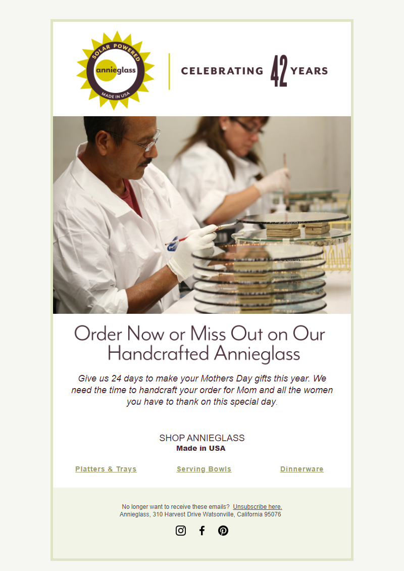 Explore campaign email examples from Annieglass, including promotions, newsletters, and product announcements. Built as a reference library for studying real ecommerce email execution.
