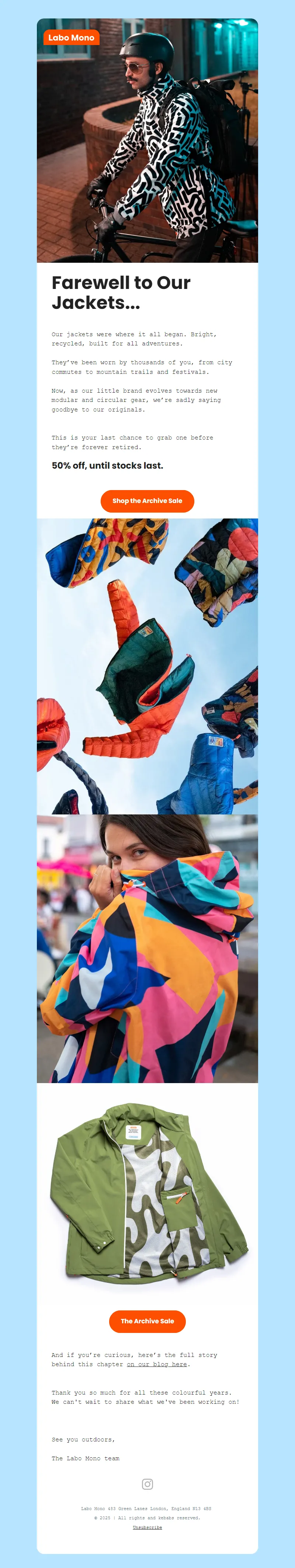 Explore campaign email examples from Labo Mono, including promotions, newsletters, and product announcements. Built as a reference library for studying real ecommerce email execution.