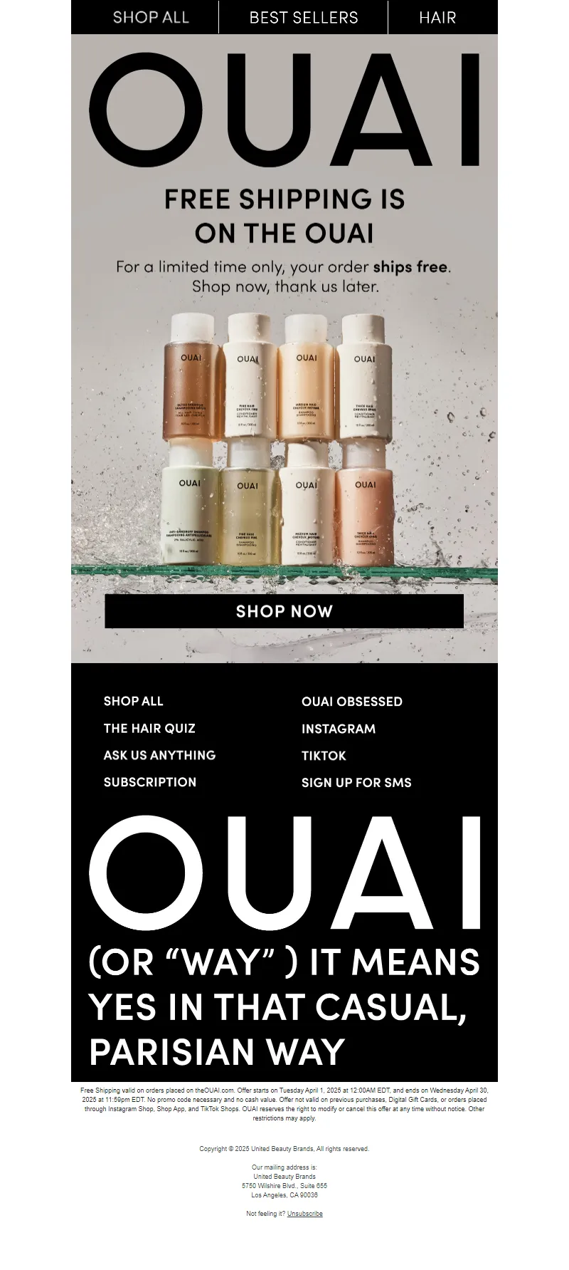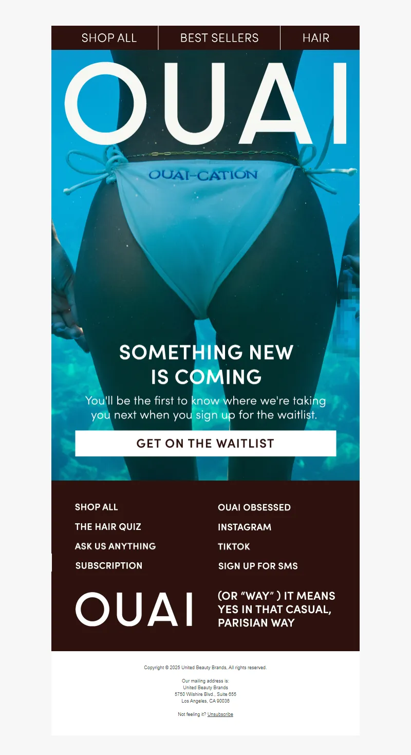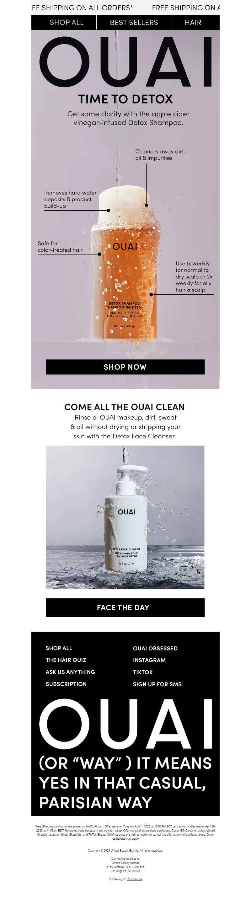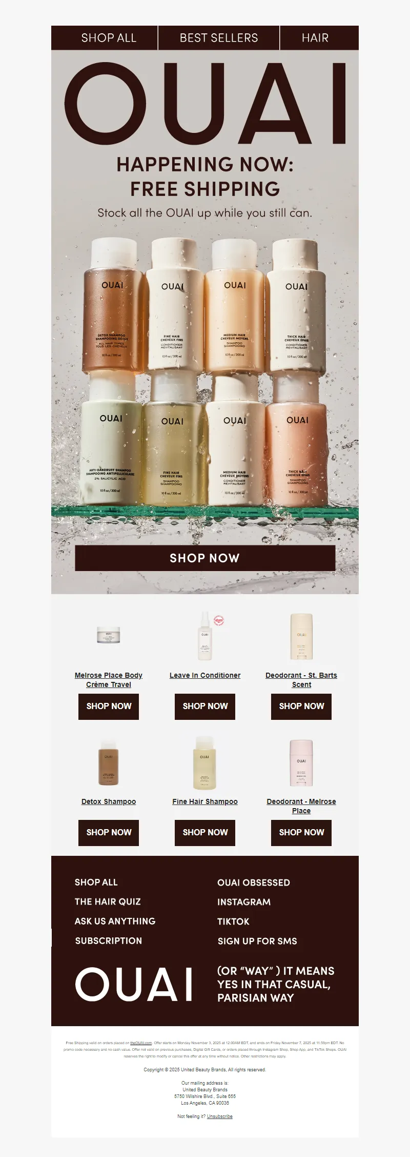 Explore campaign email examples from OUAI, including promotions, newsletters, and product announcements. Built as a reference library for studying real ecommerce email execution.