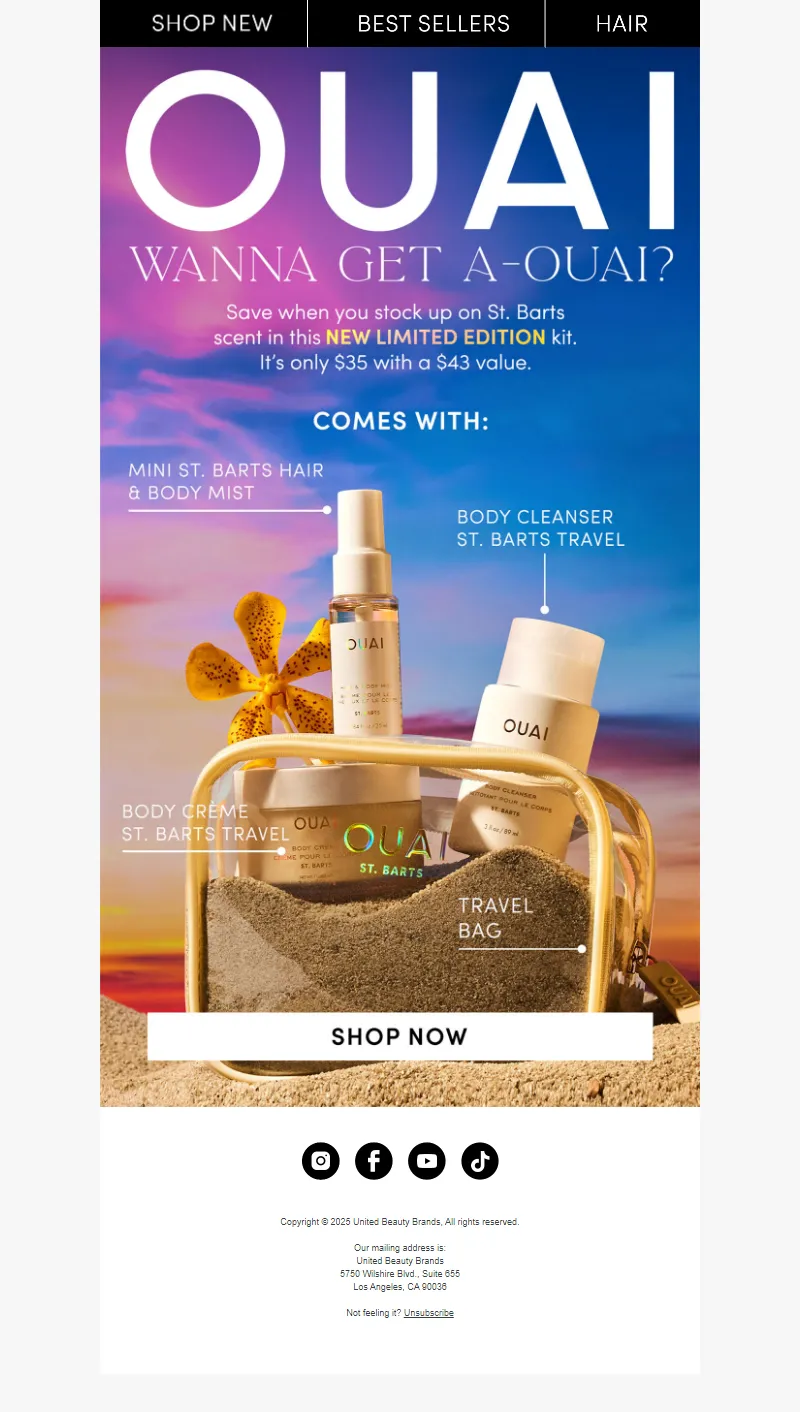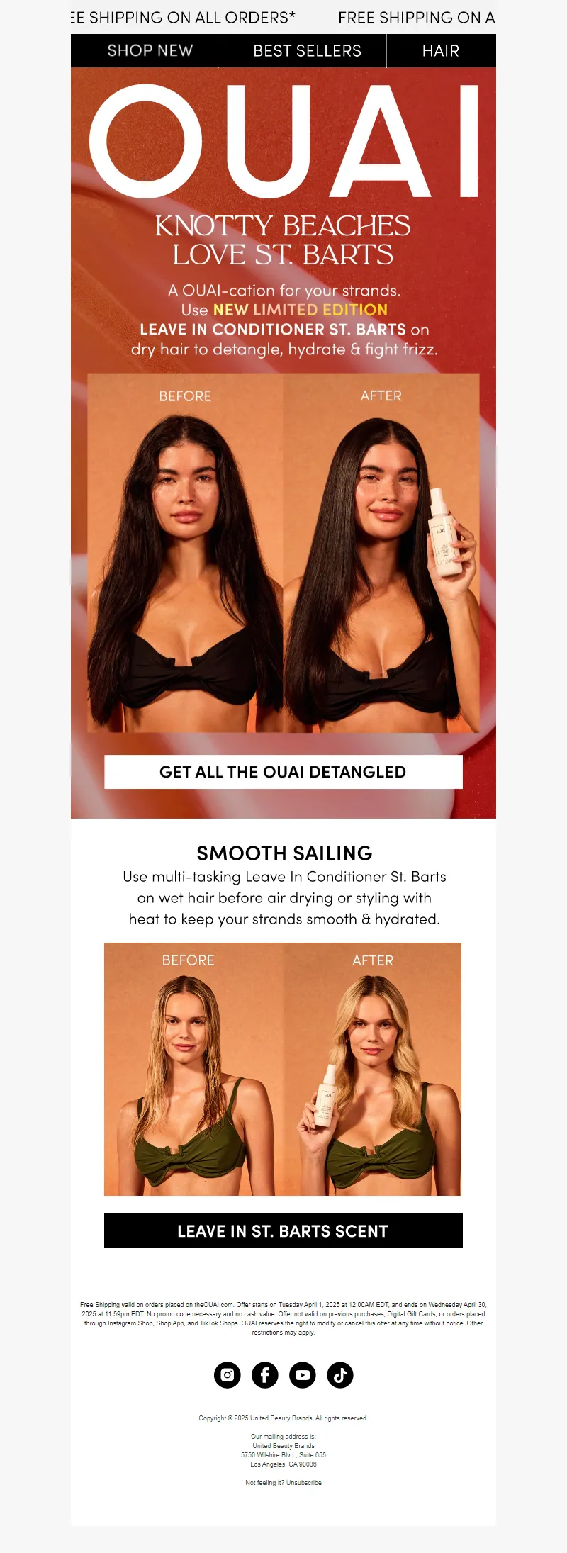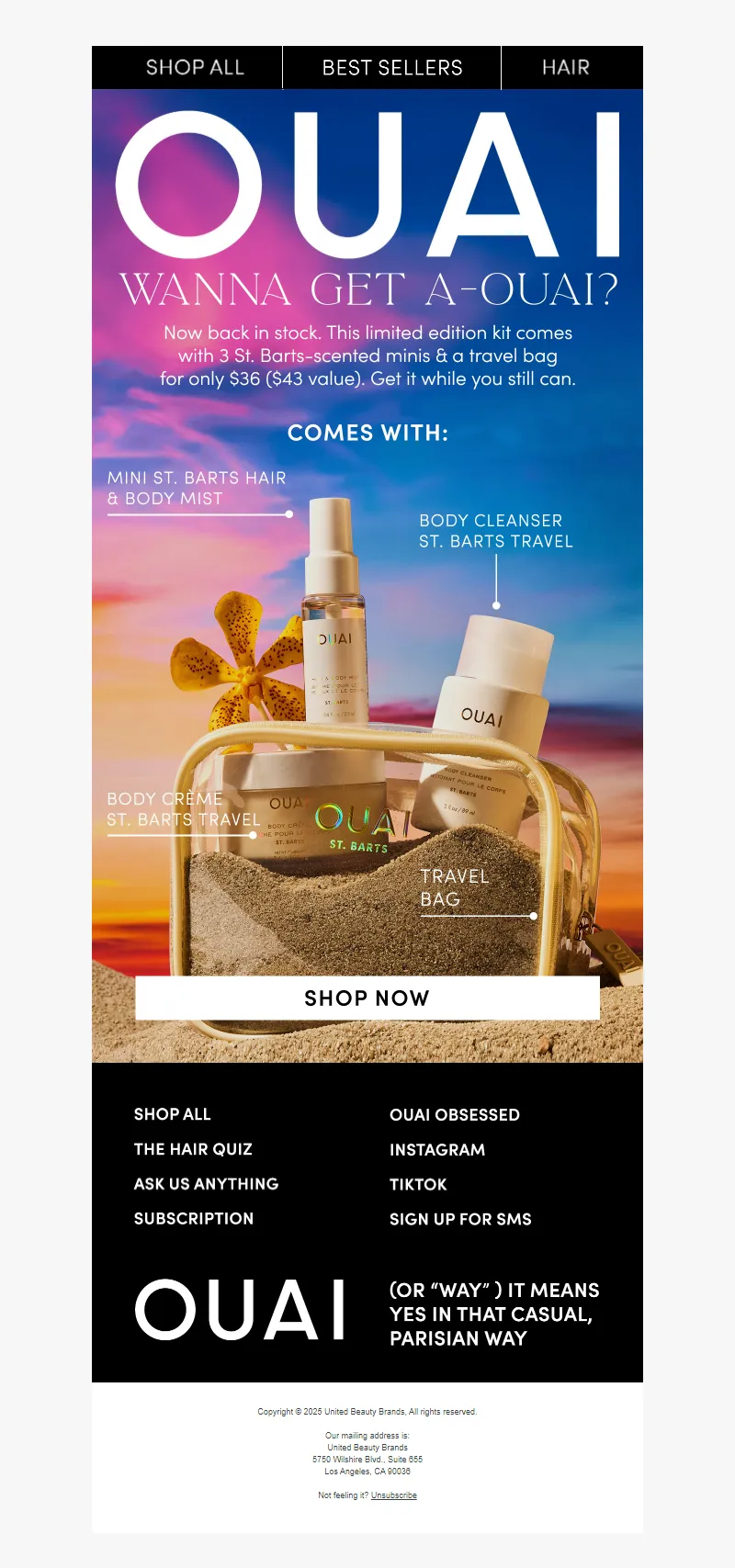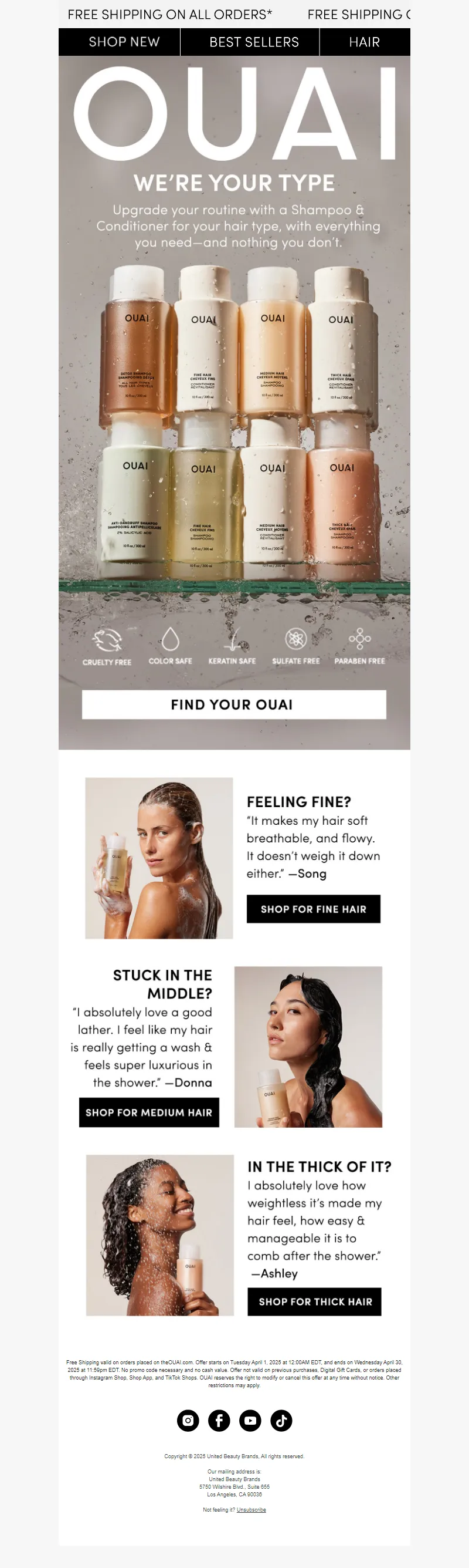 Explore campaign email examples from OUAI, including promotions, newsletters, and product announcements. Built as a reference library for studying real ecommerce email execution.