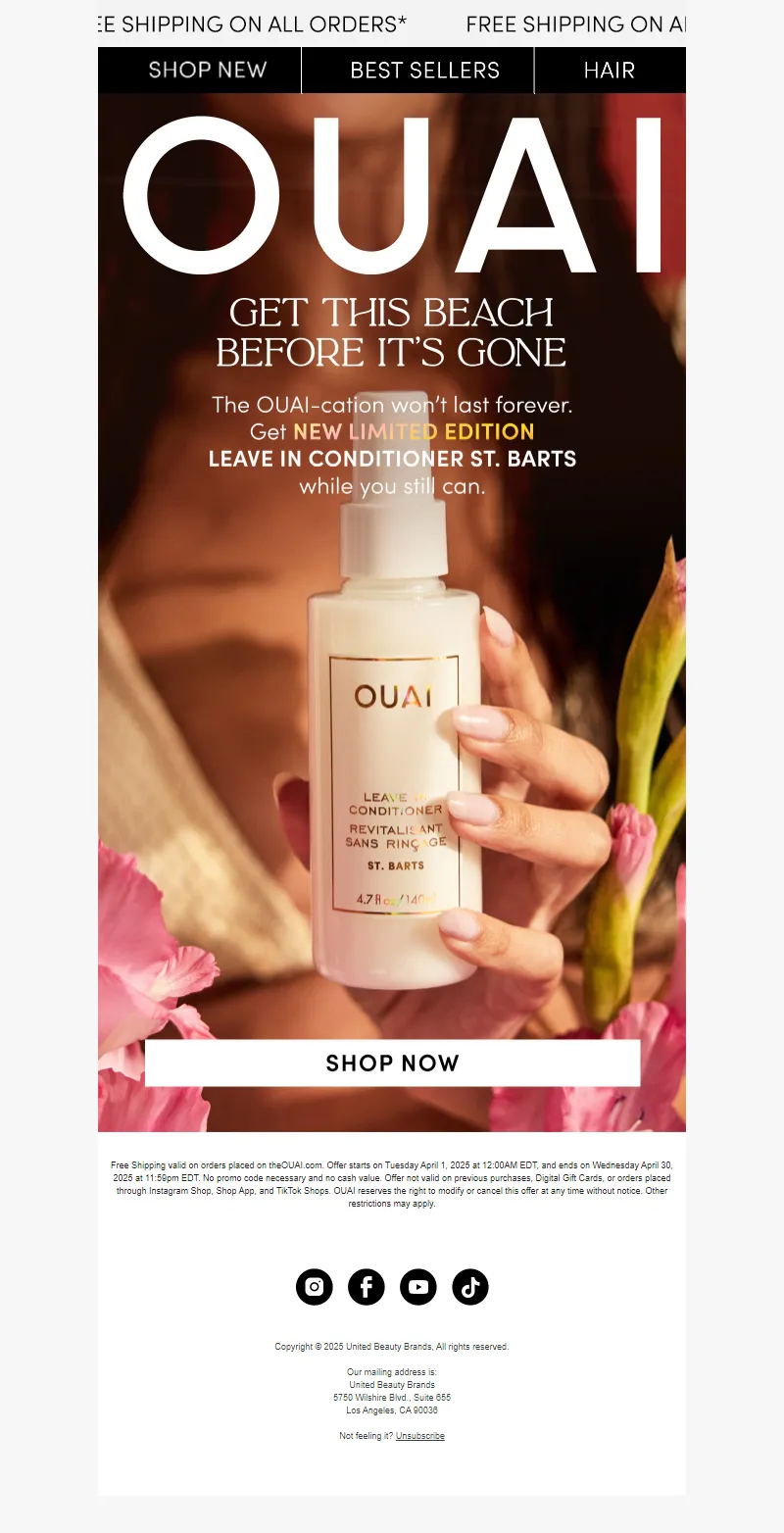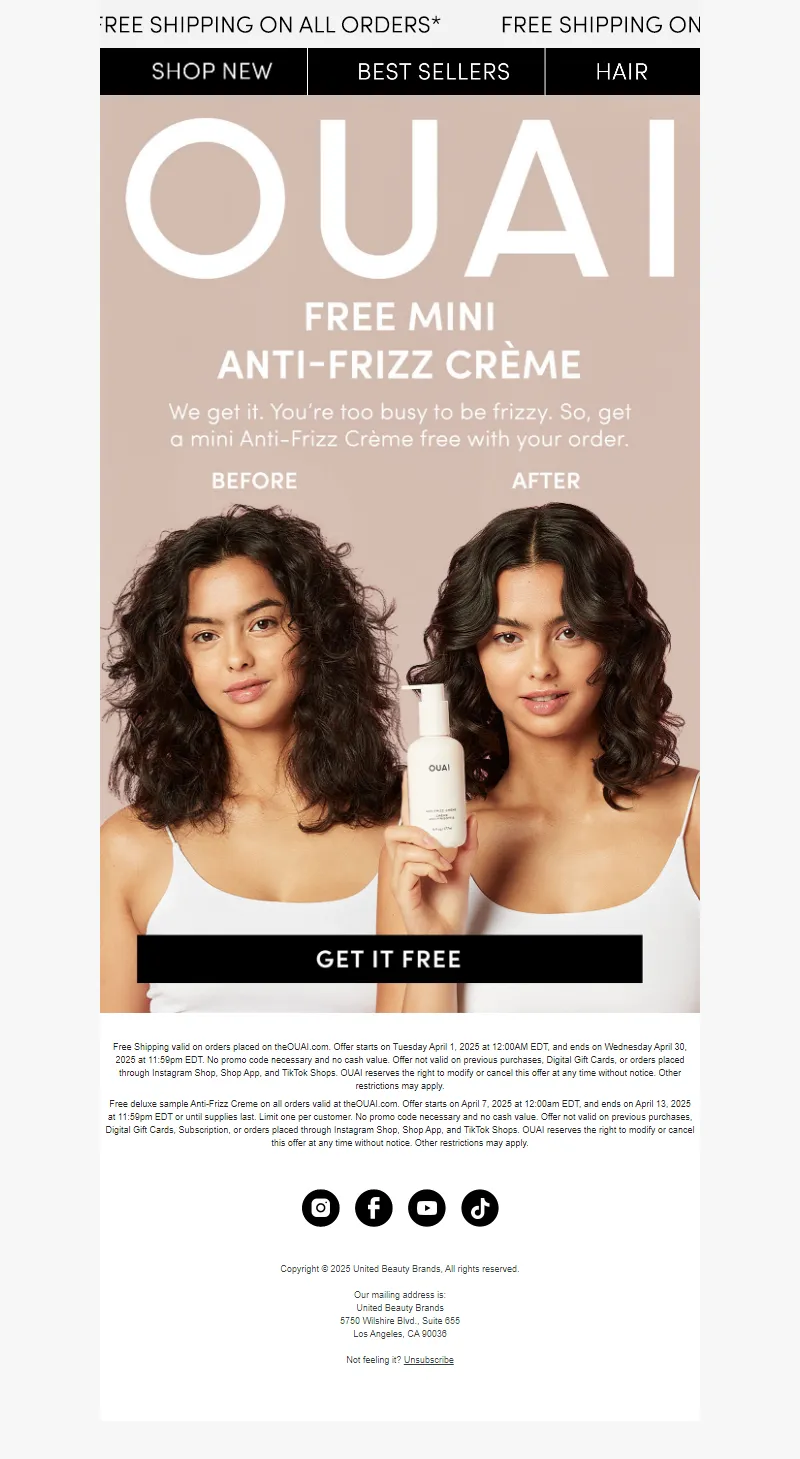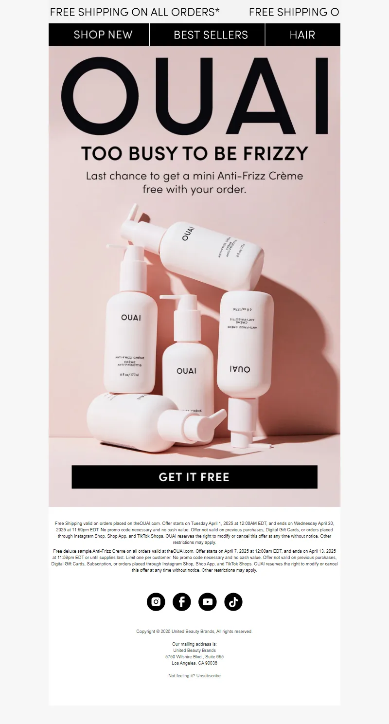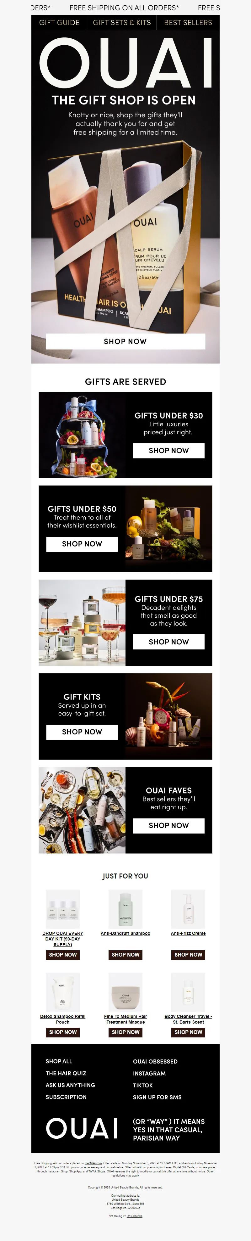Explore campaign email examples from OUAI, including promotions, newsletters, and product announcements. Built as a reference library for studying real ecommerce email execution.