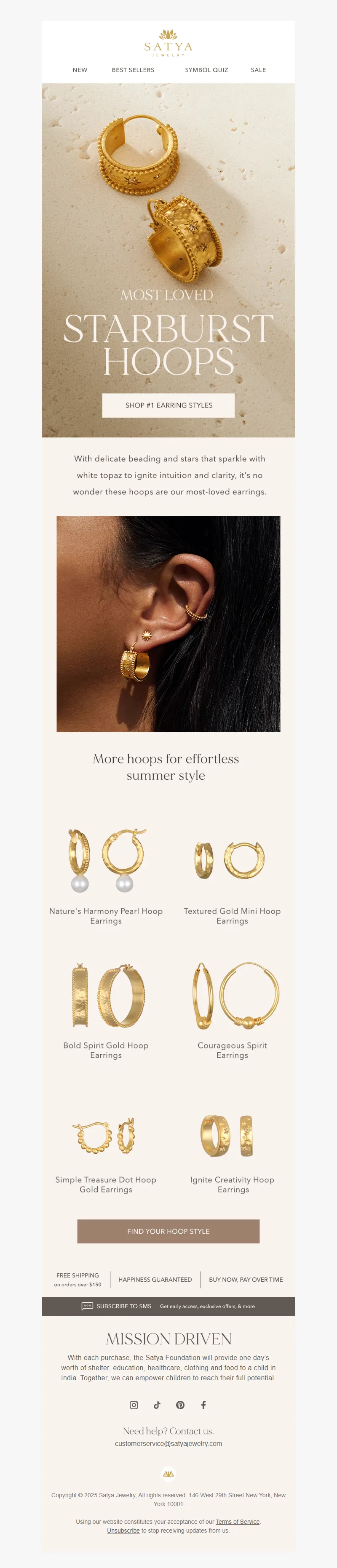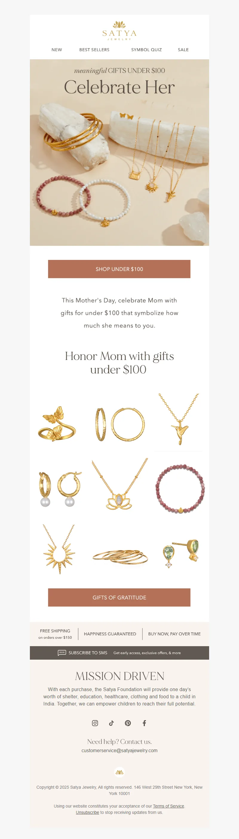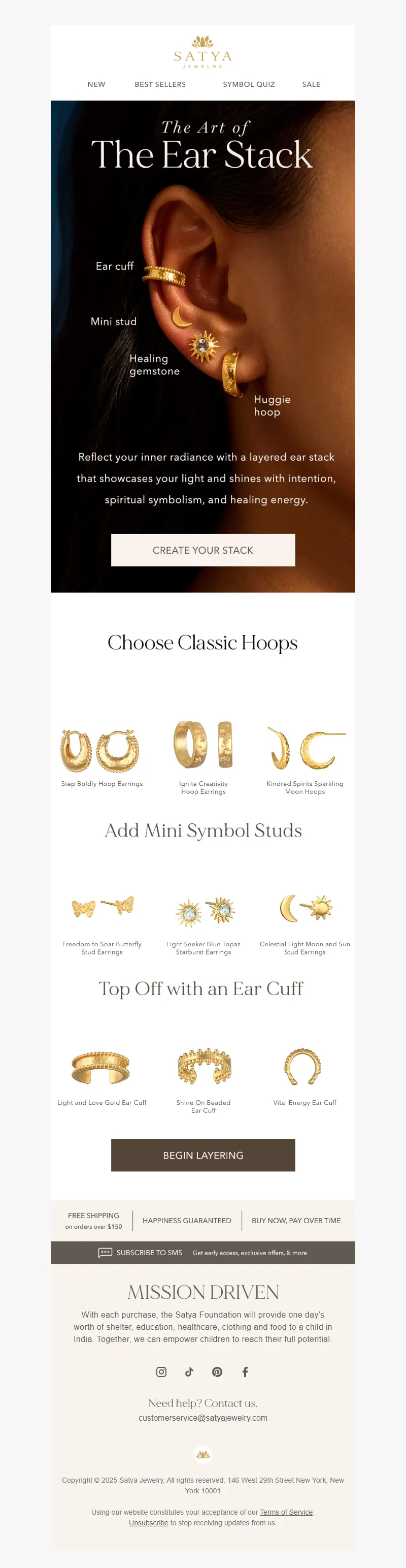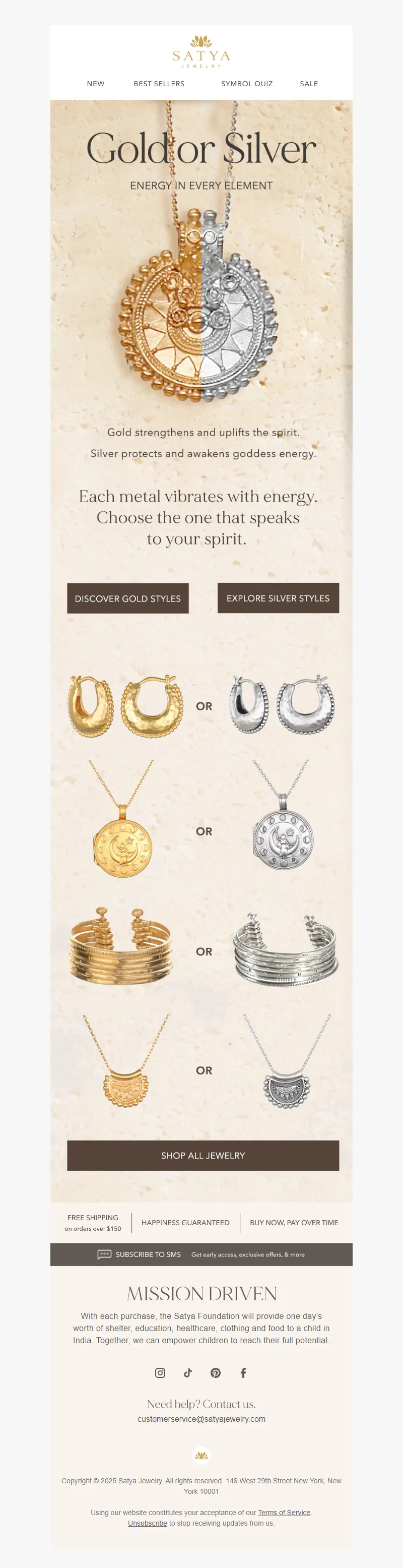 Explore campaign email examples from Satya Jewelry, including promotions, newsletters, and product announcements. Built as a reference library for studying real ecommerce email execution.