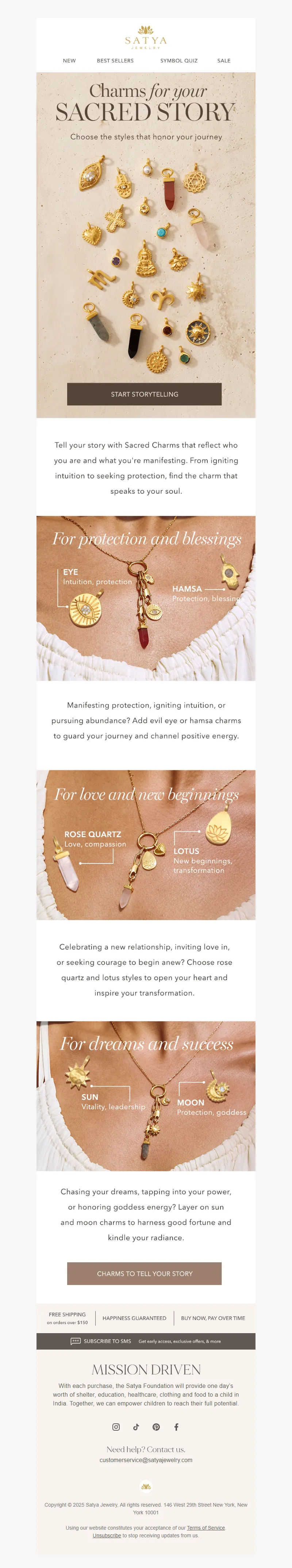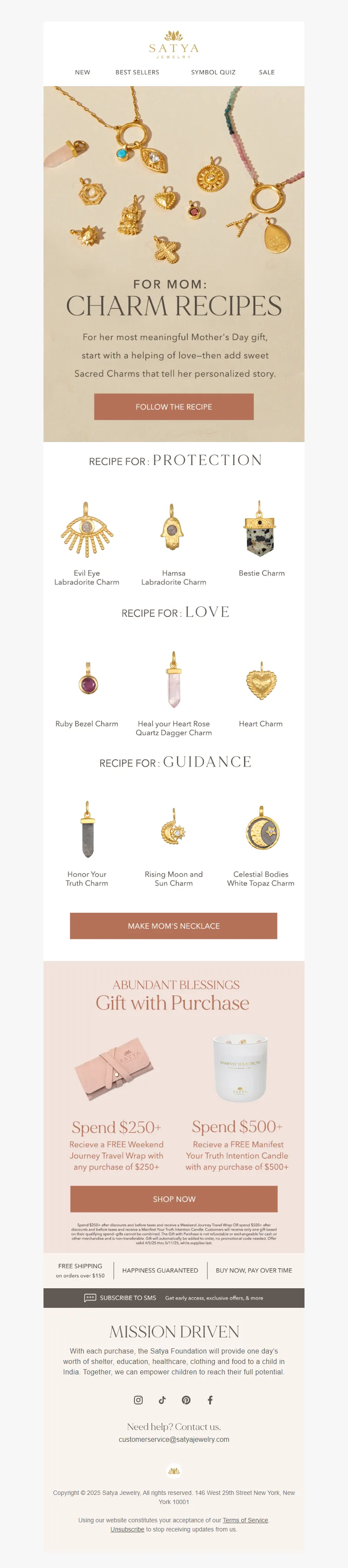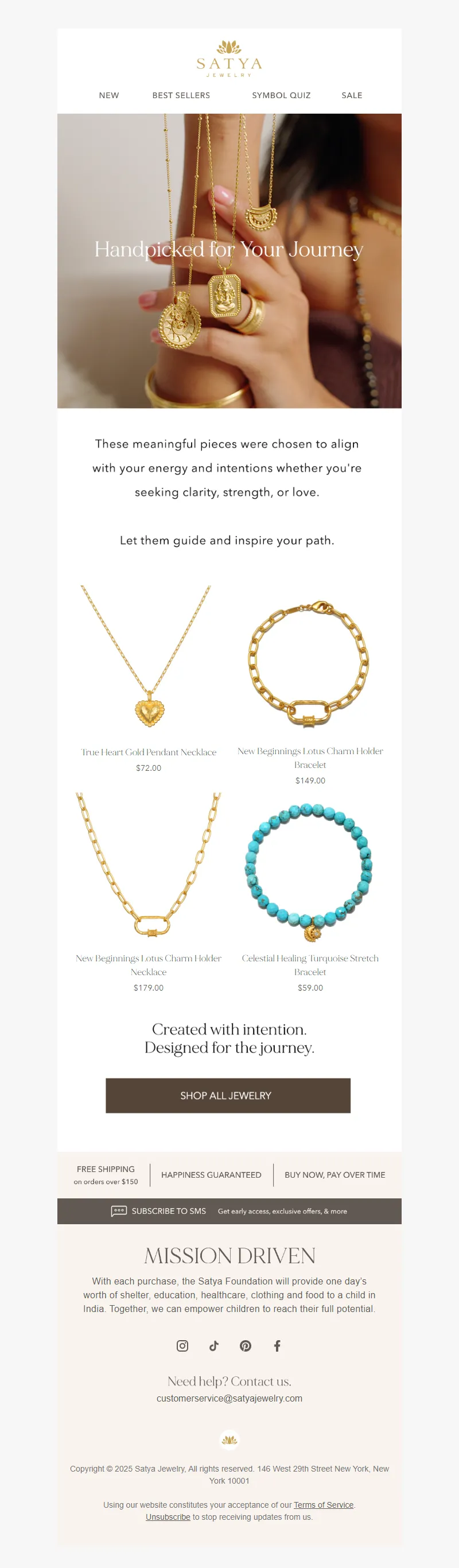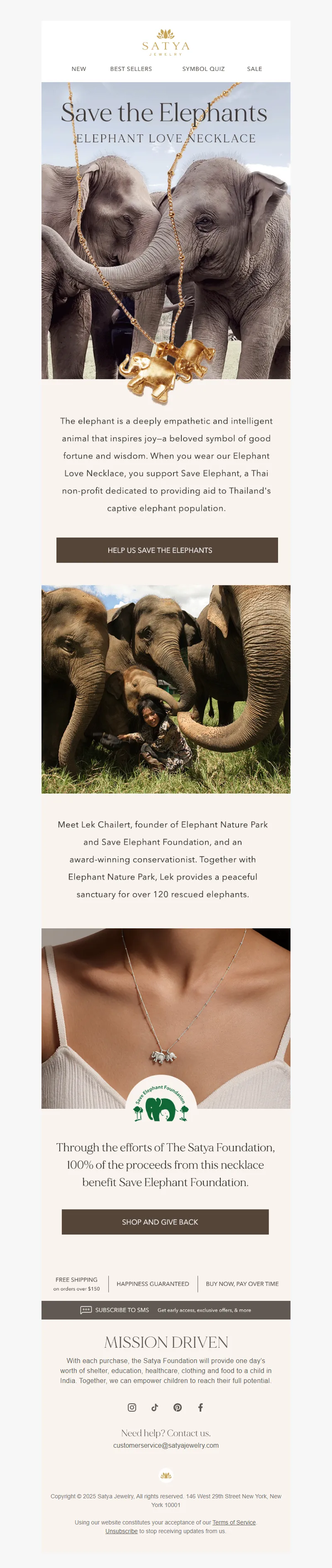 Explore campaign email examples from Satya Jewelry, including promotions, newsletters, and product announcements. Built as a reference library for studying real ecommerce email execution.