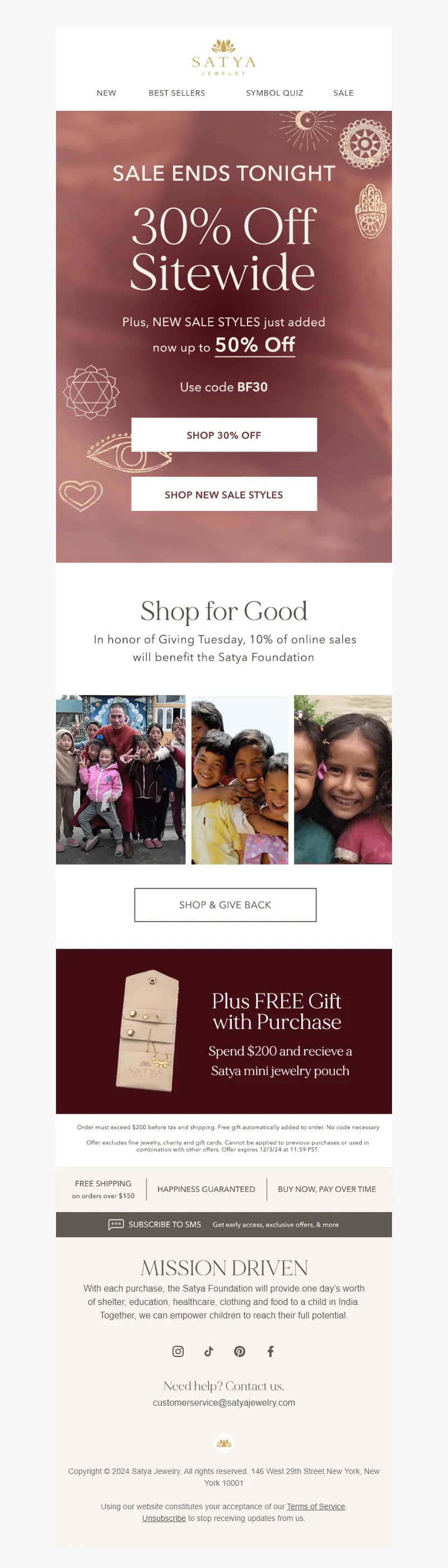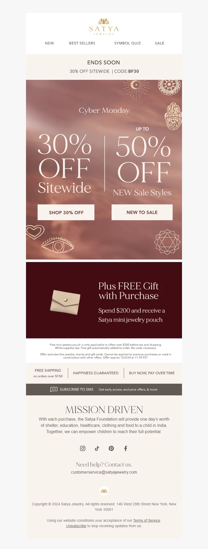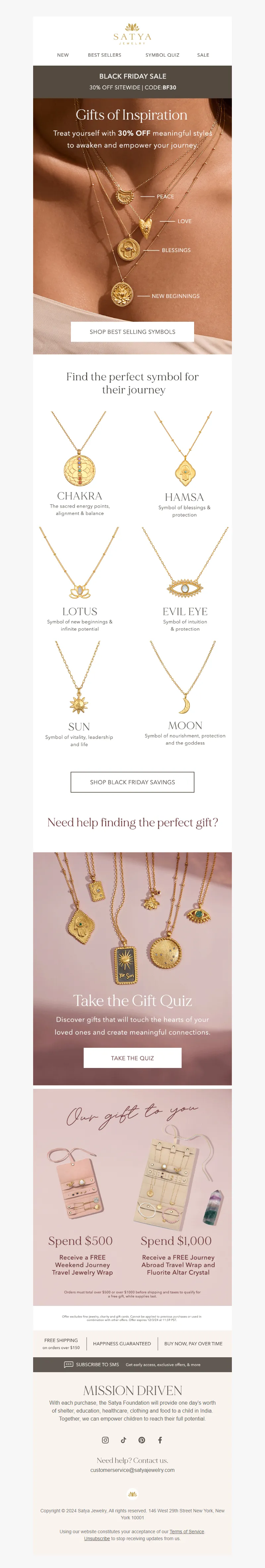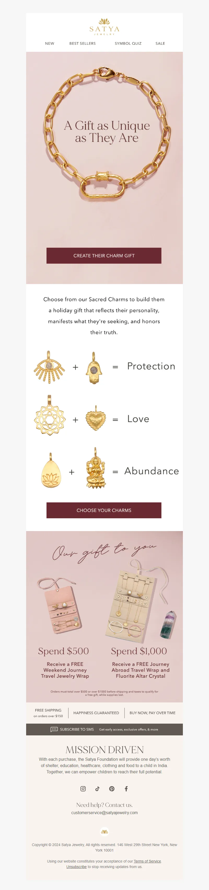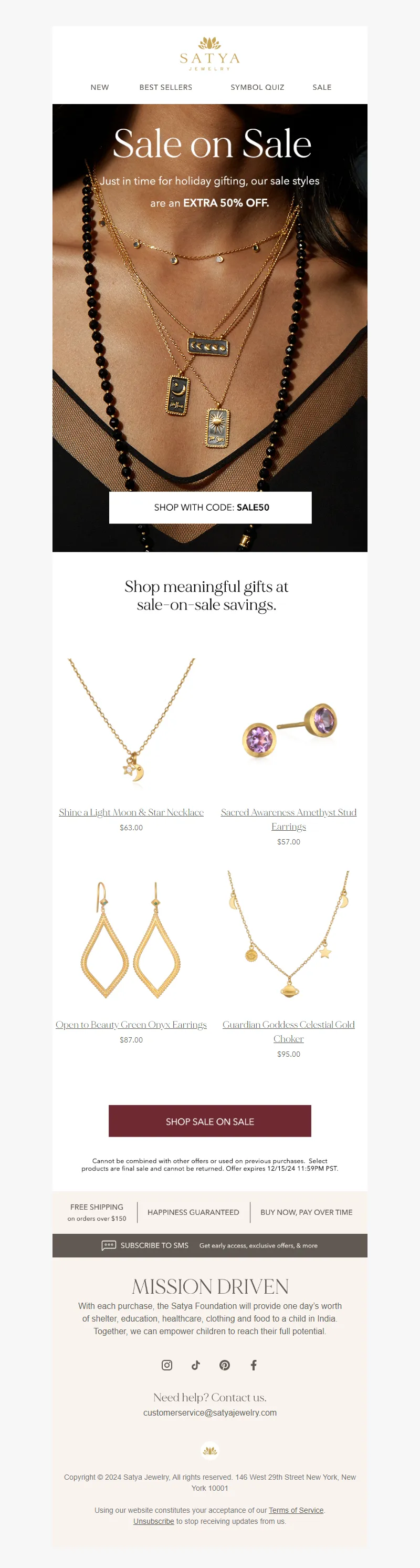 Explore campaign email examples from Satya Jewelry, including promotions, newsletters, and product announcements. Built as a reference library for studying real ecommerce email execution.