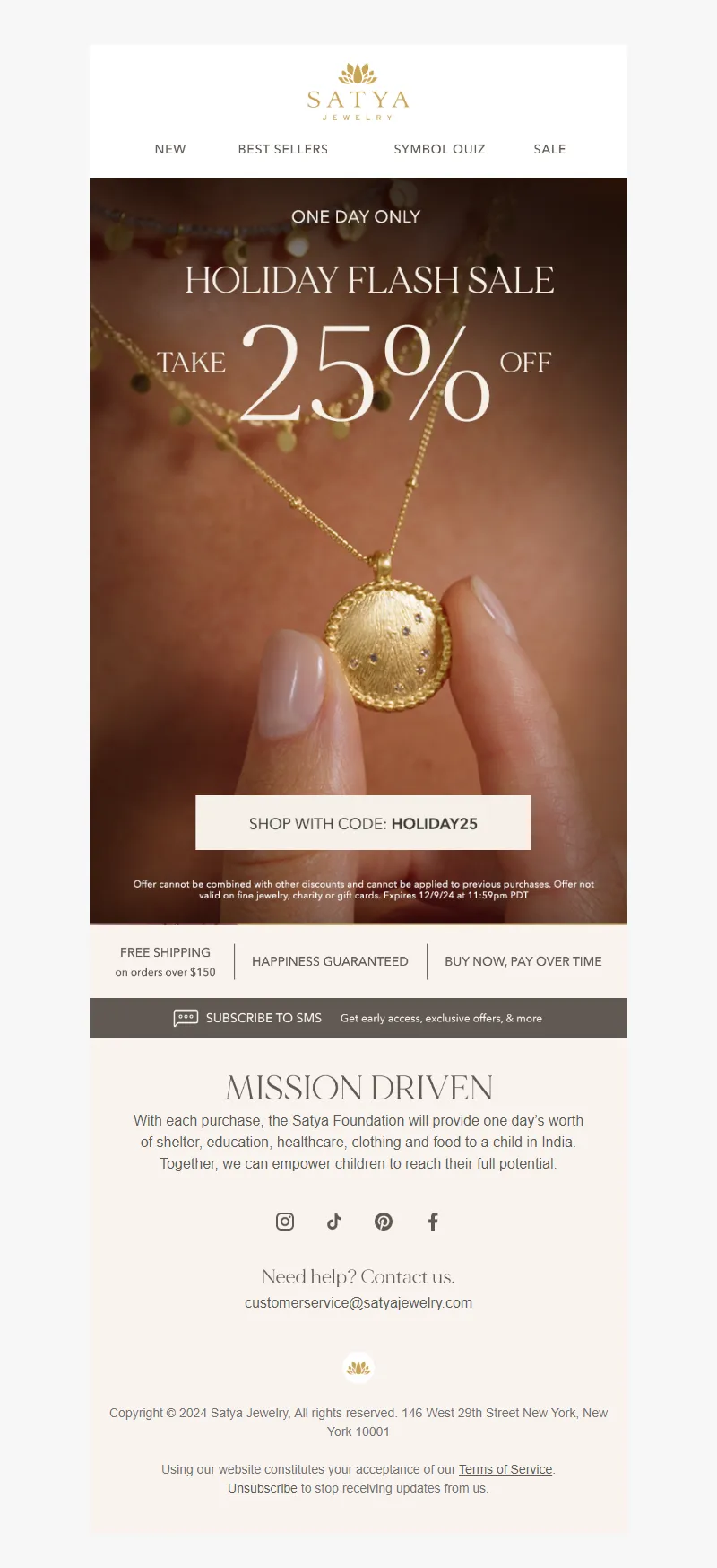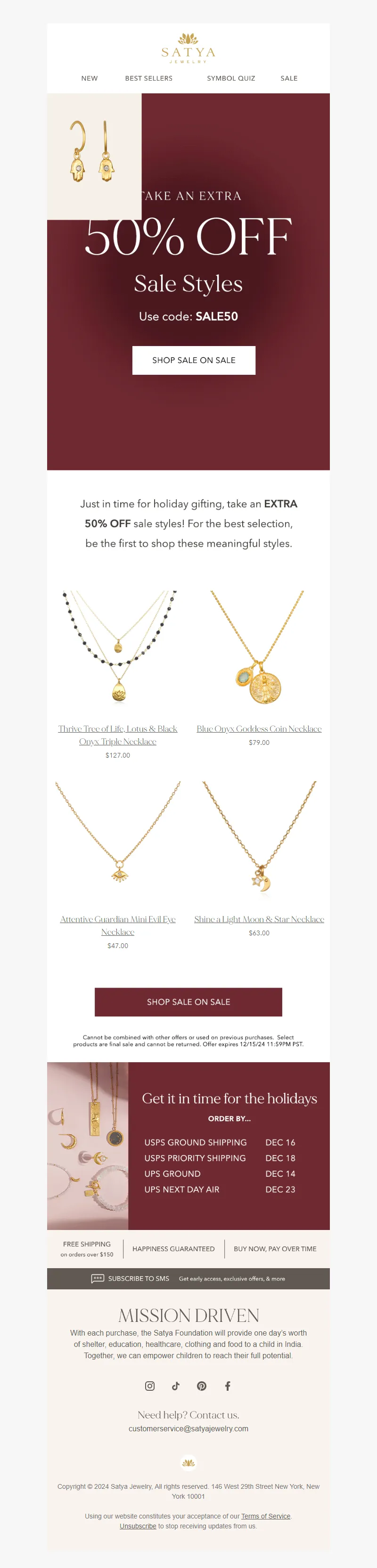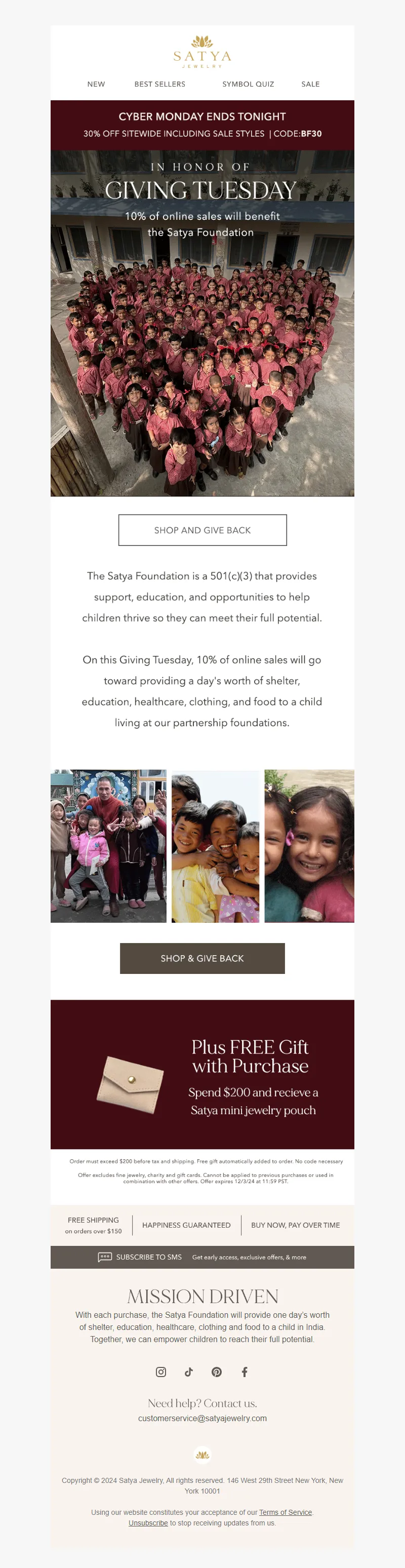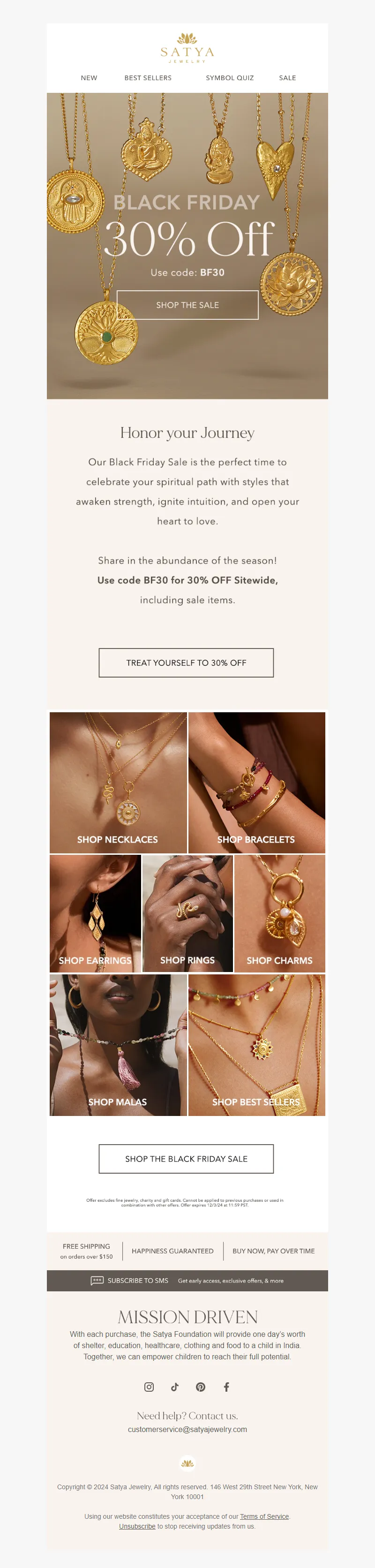 Explore campaign email examples from Satya Jewelry, including promotions, newsletters, and product announcements. Built as a reference library for studying real ecommerce email execution.