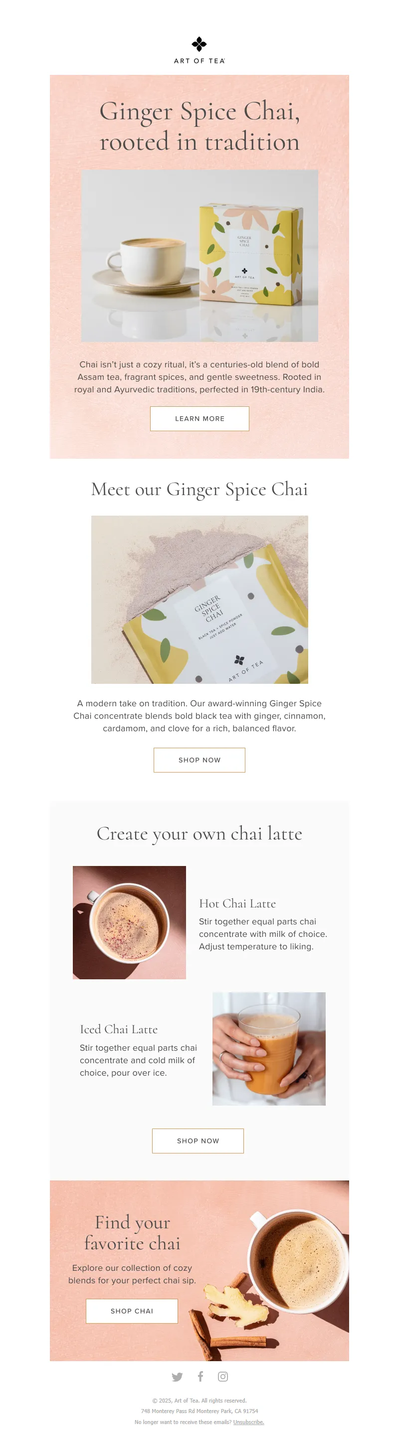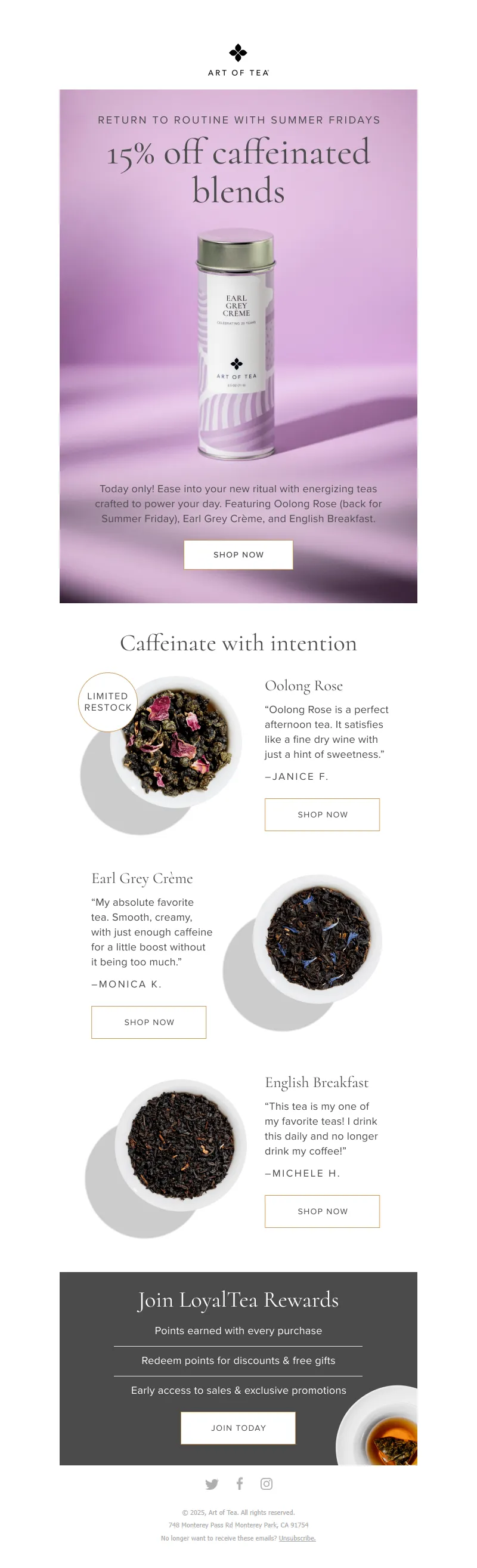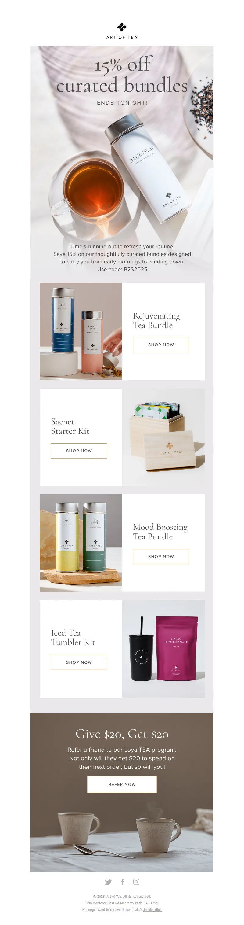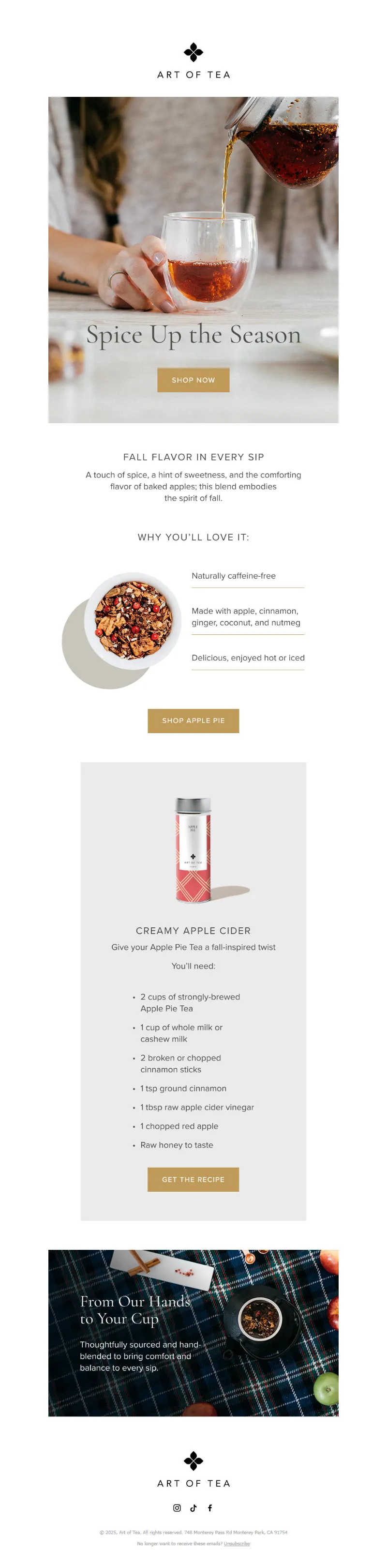 Explore campaign email examples from Art of Tea, including promotions, newsletters, and product announcements. Built as a reference library for studying real ecommerce email execution.