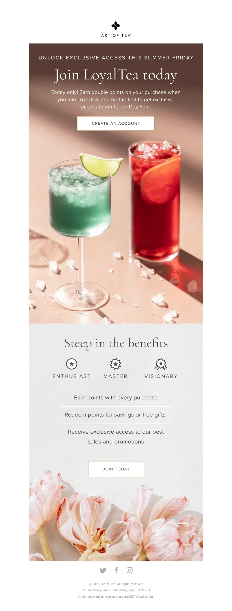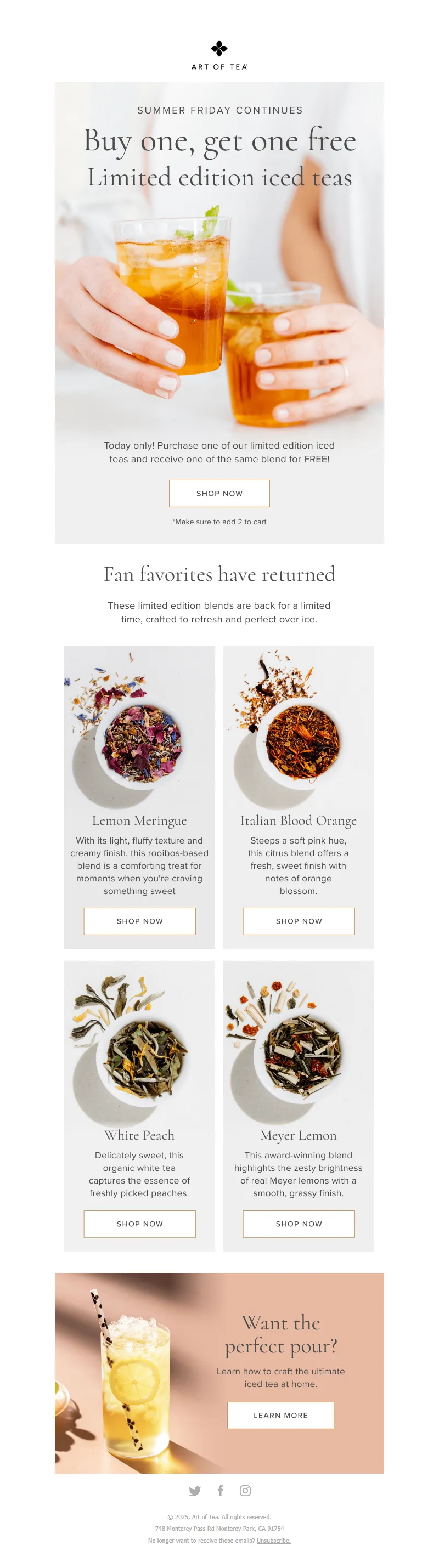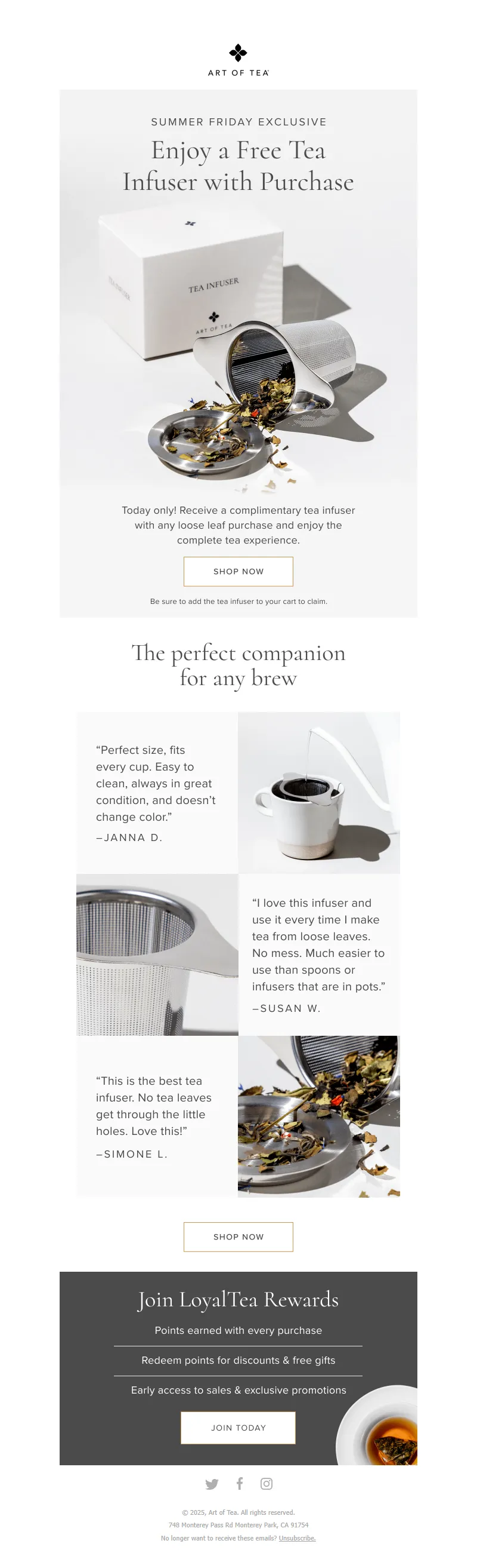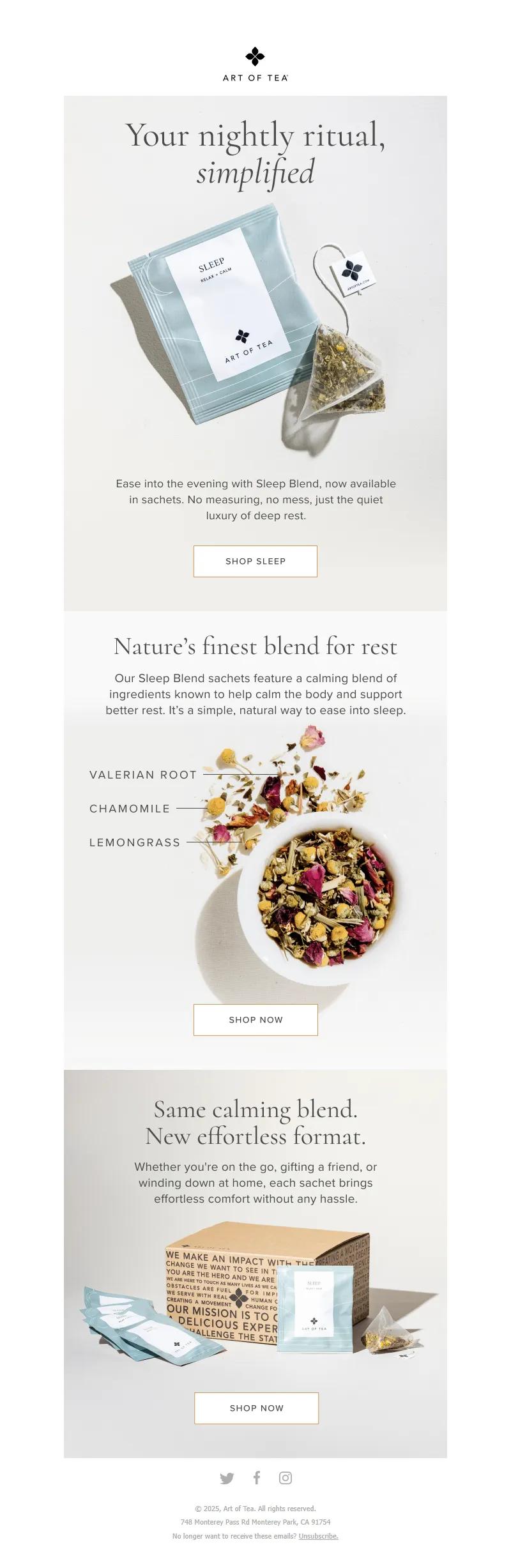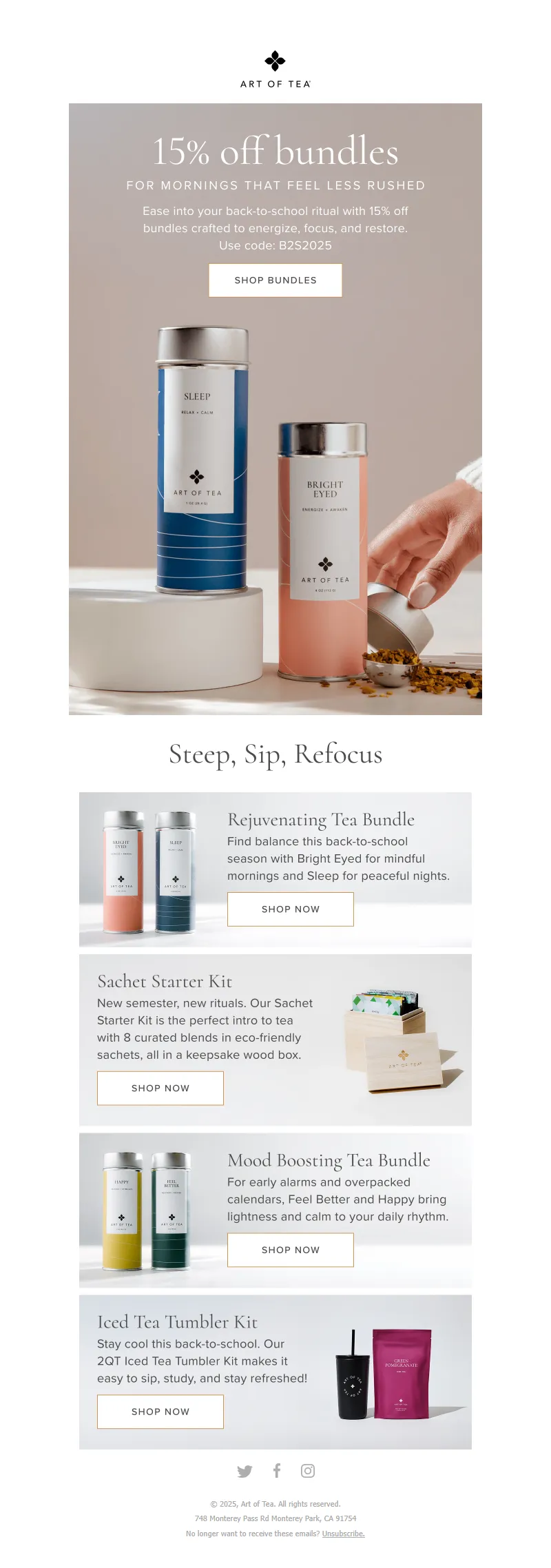 Explore campaign email examples from Art of Tea, including promotions, newsletters, and product announcements. Built as a reference library for studying real ecommerce email execution.