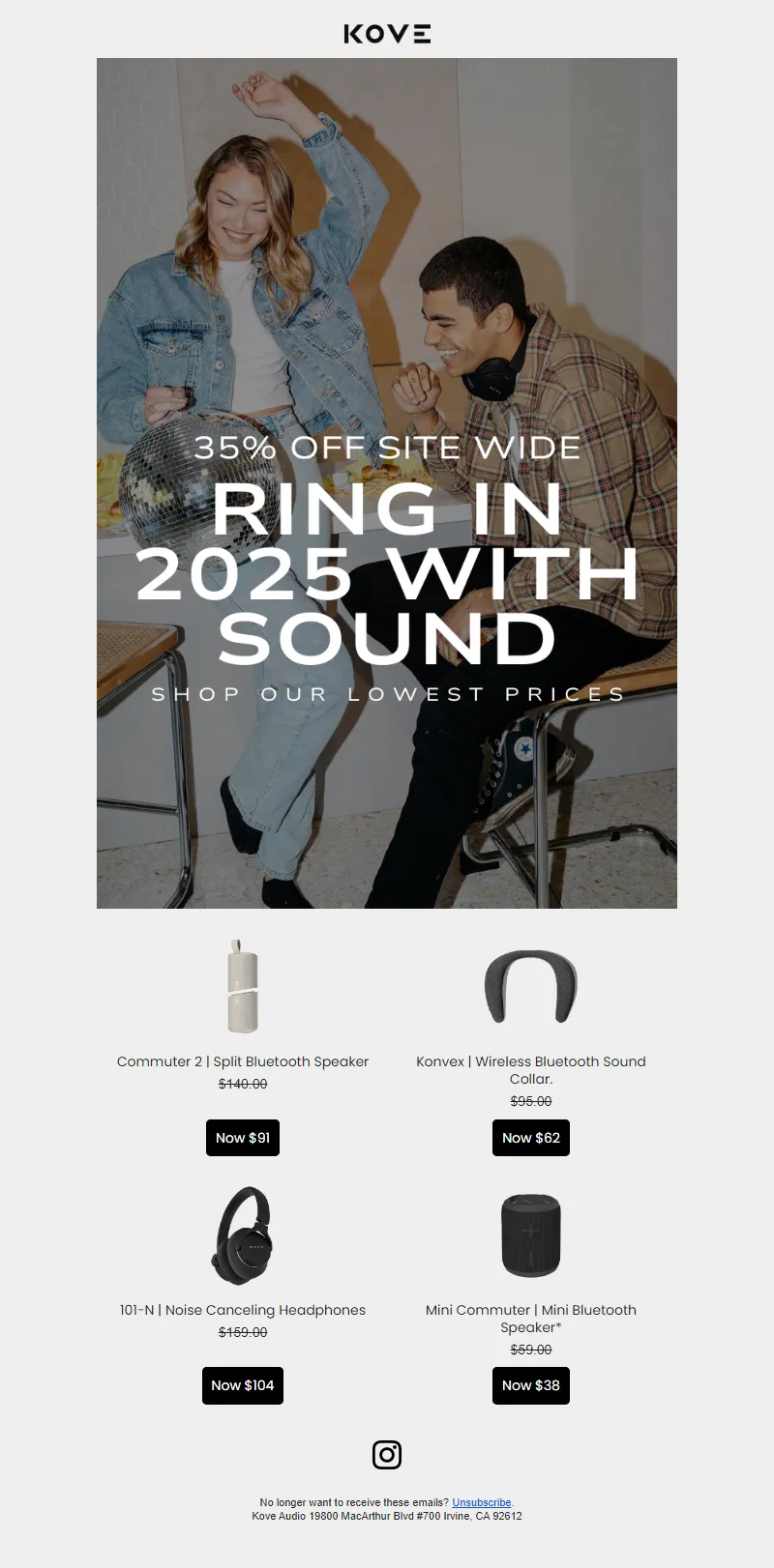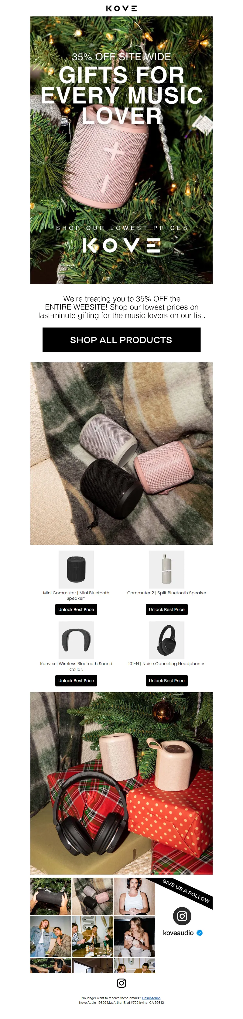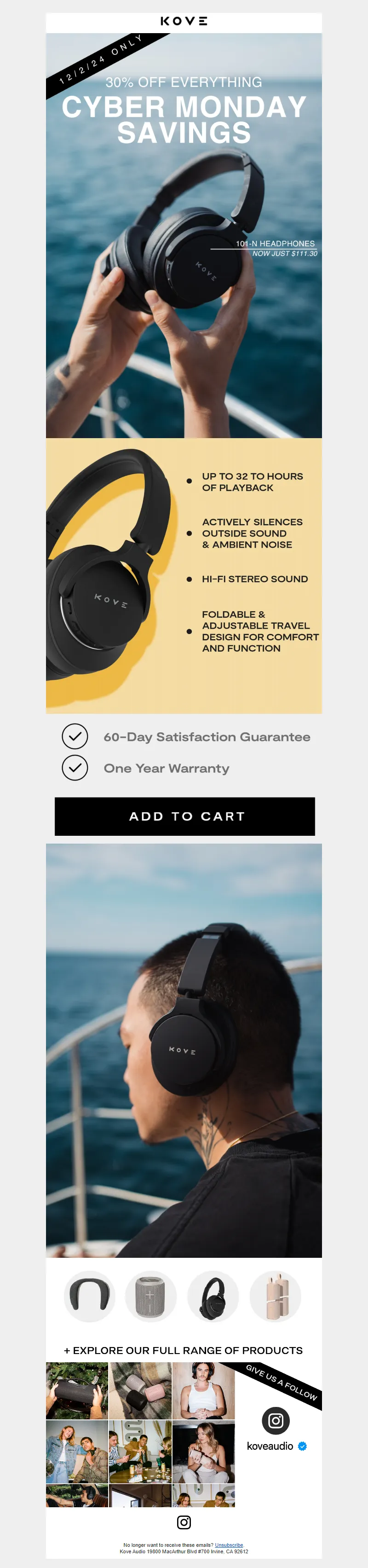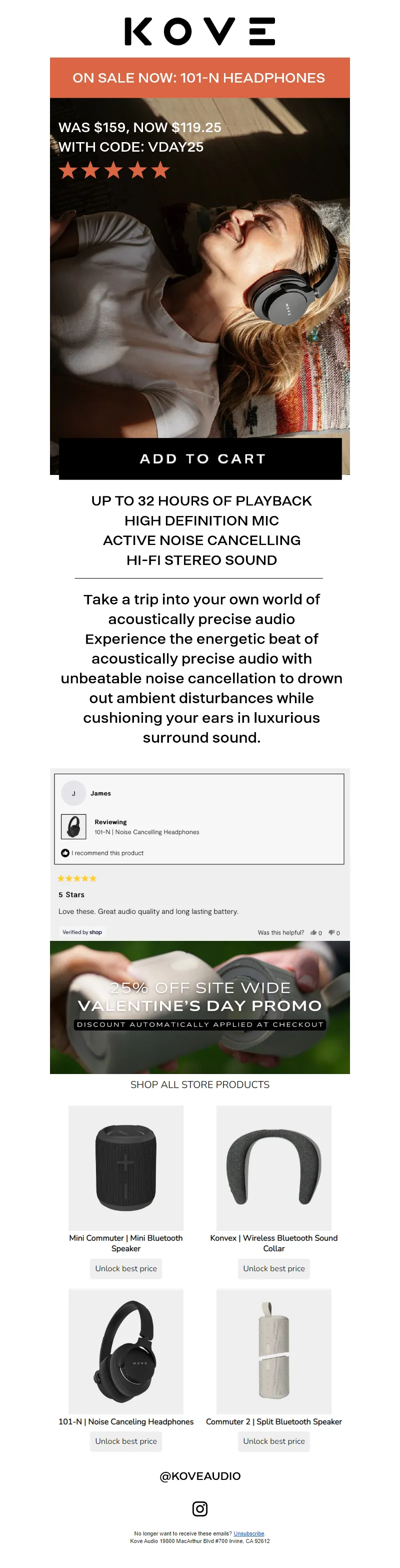 Explore campaign email examples from KOVE Audio, including promotions, newsletters, and product announcements. Built as a reference library for studying real ecommerce email execution.